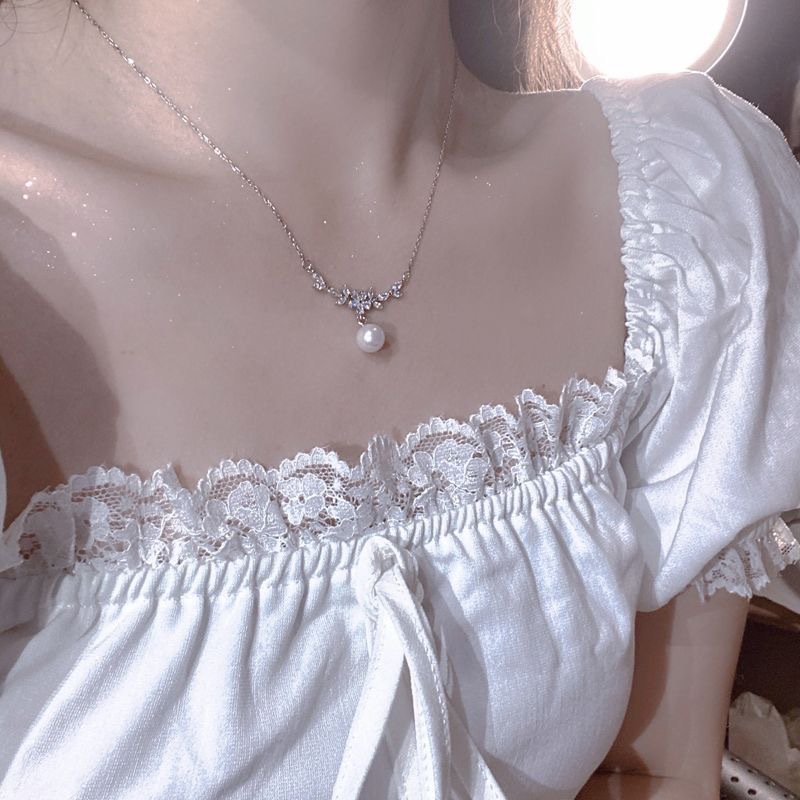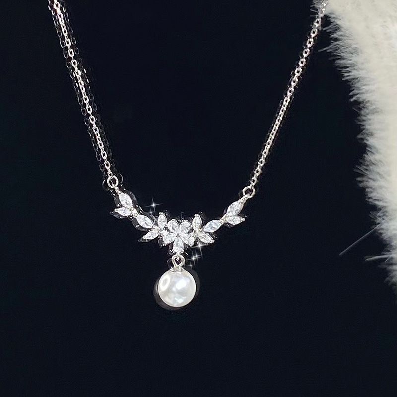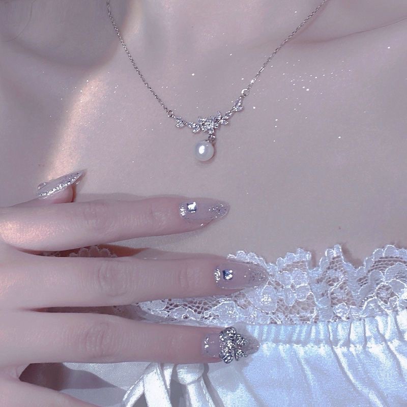 Super Flash zircon cherry blossom pearl necklace for girls light luxury niche design clavicle chain elegant all-match high-grade necklace
