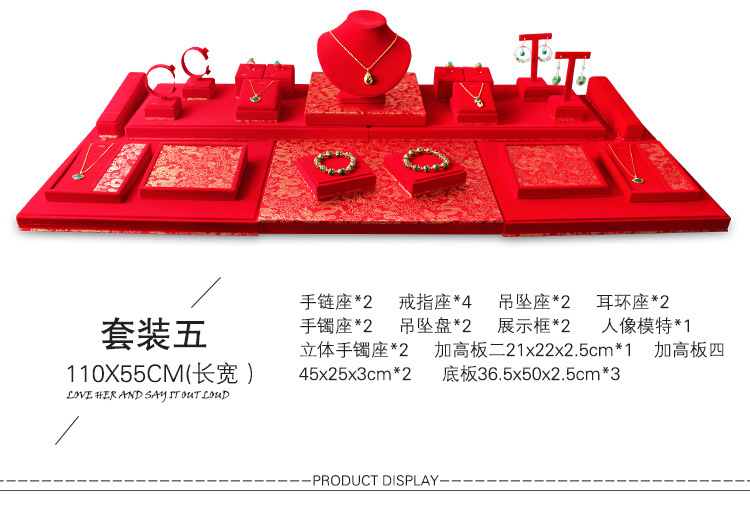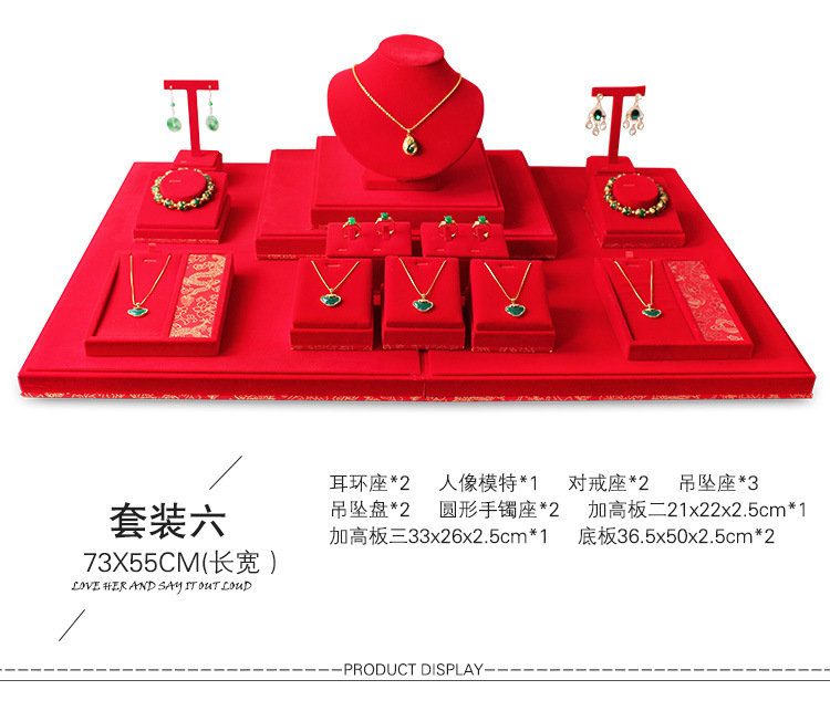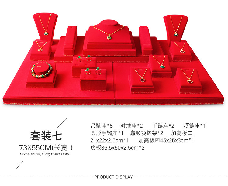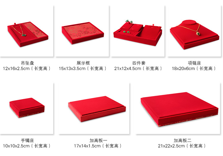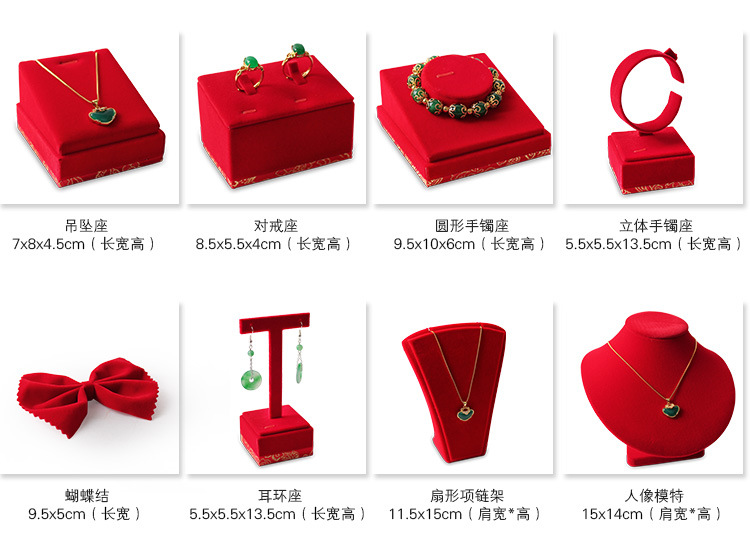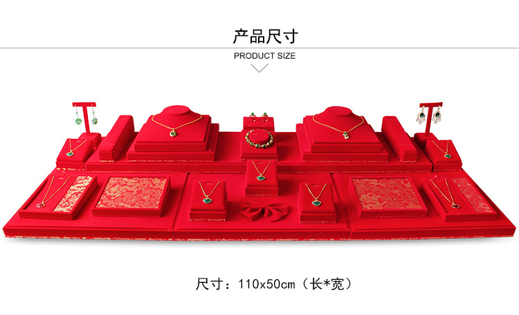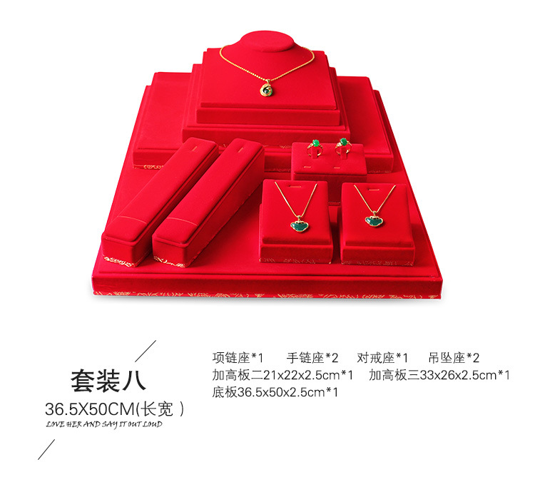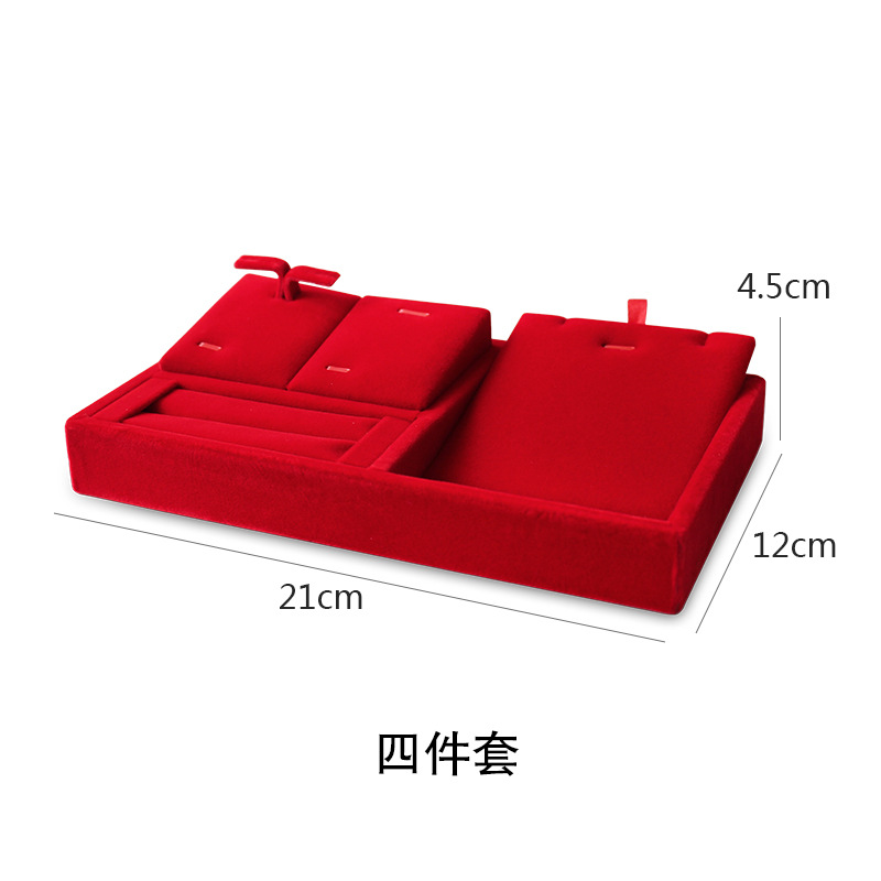 Color: 29-red velvet five-position necklace display plate 28x21x10cm
