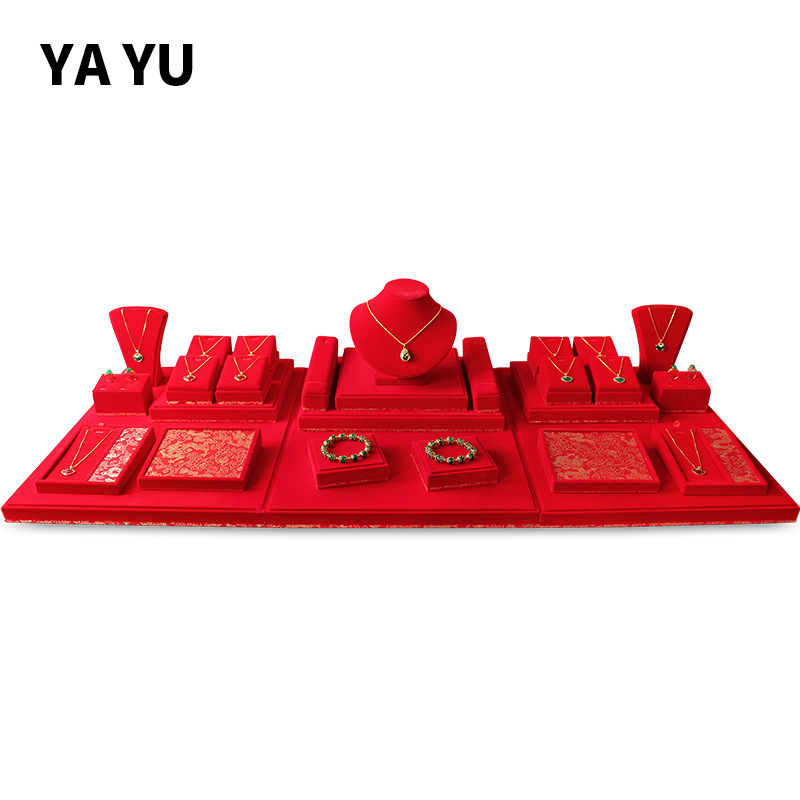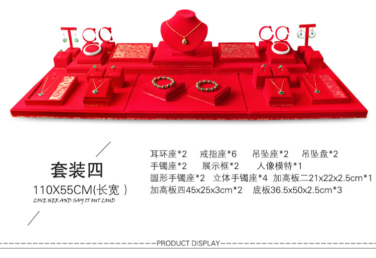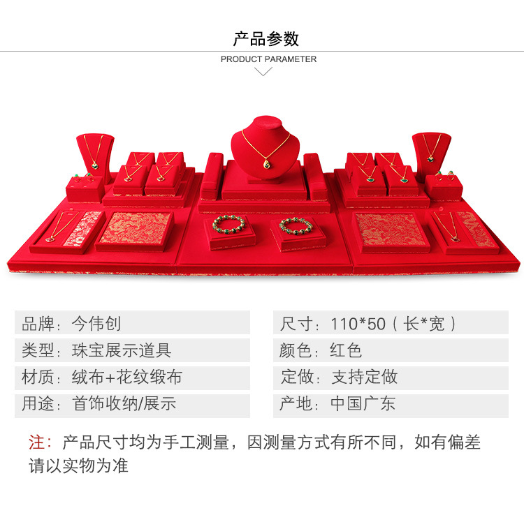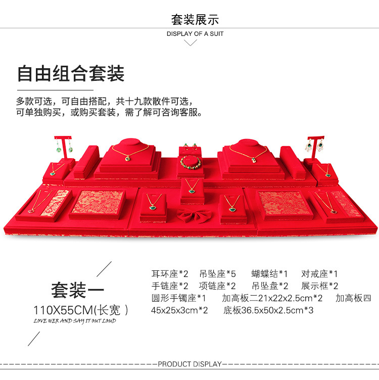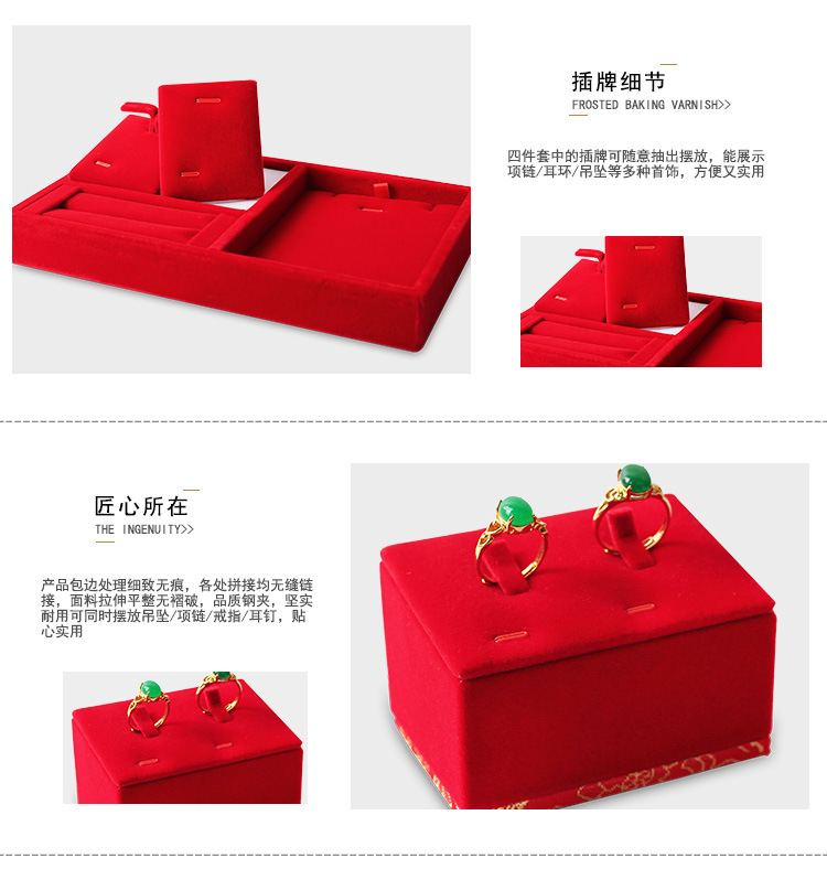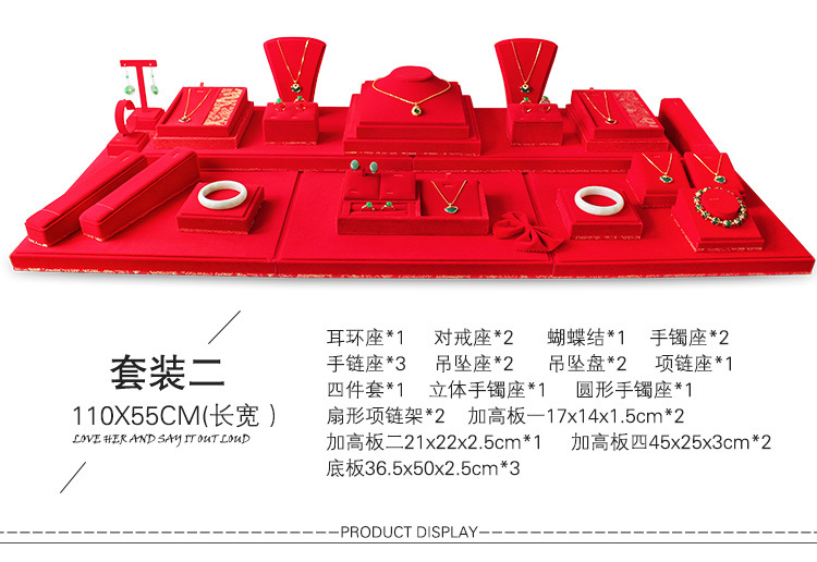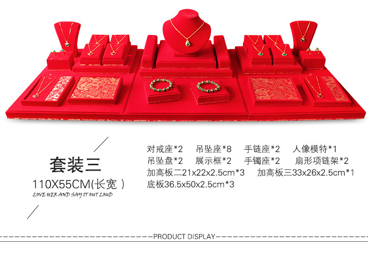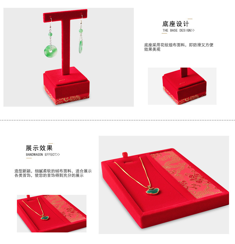 Color: 29-red velvet five-position necklace display plate 28x21x10cm