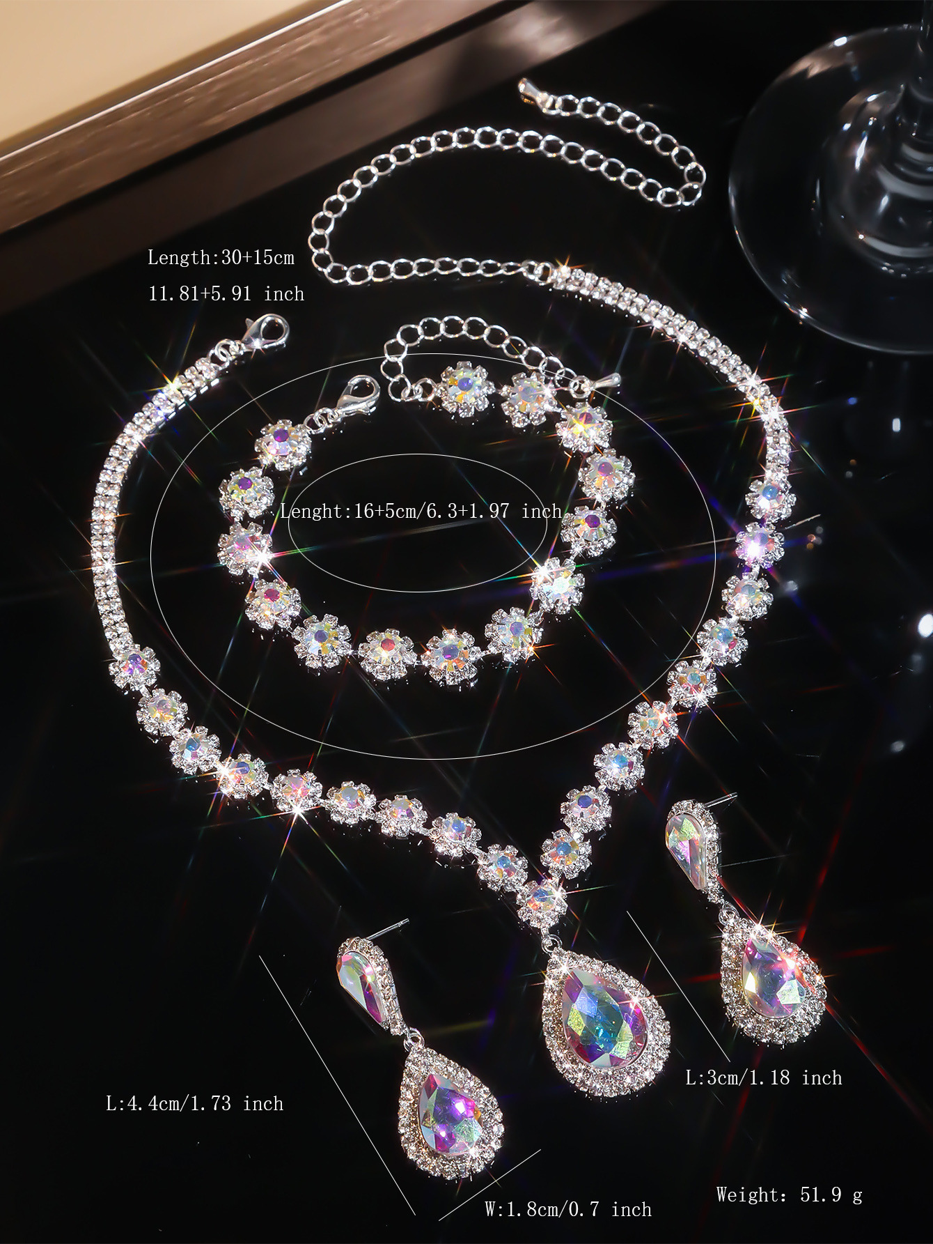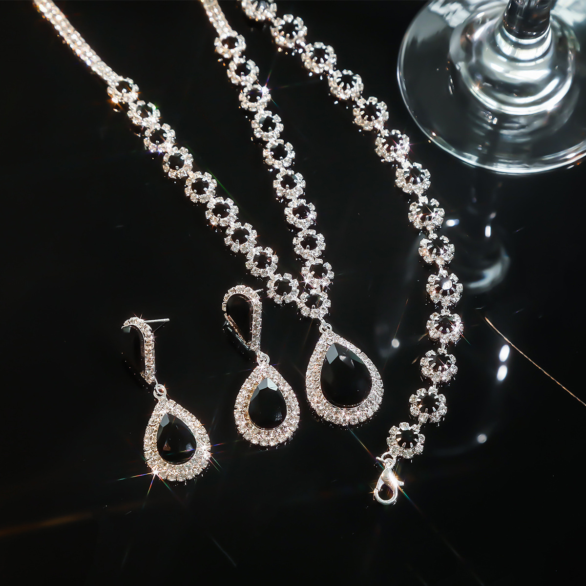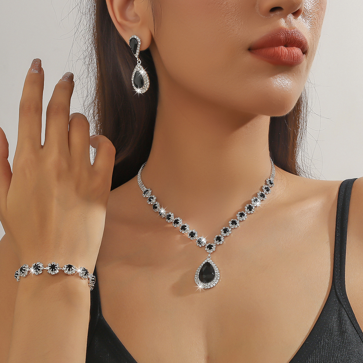 【品名】:欧美版流行绿水晶蓝色水晶红水晶水钻项链手链耳环三件套