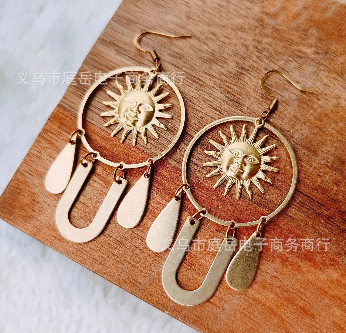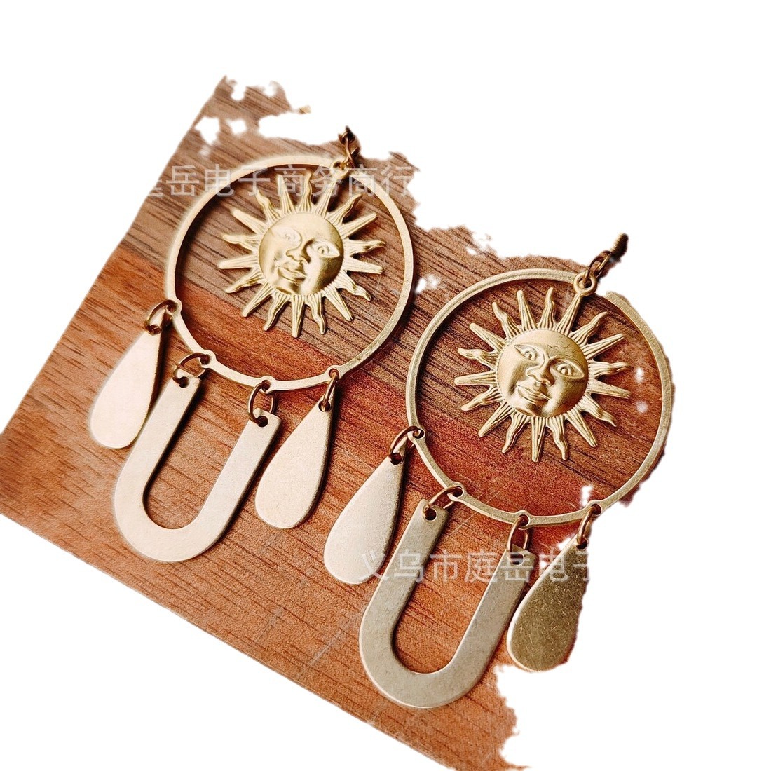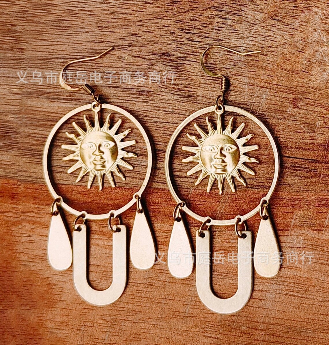 Cross-border hot selling Amazon bohemian style gothic sun U-shaped pendant earrings factory direct sales