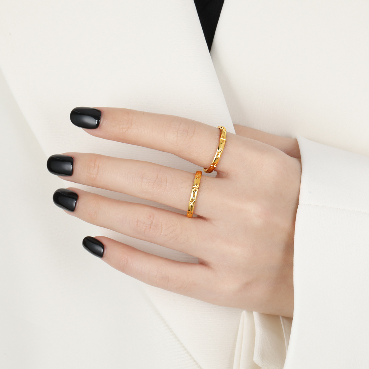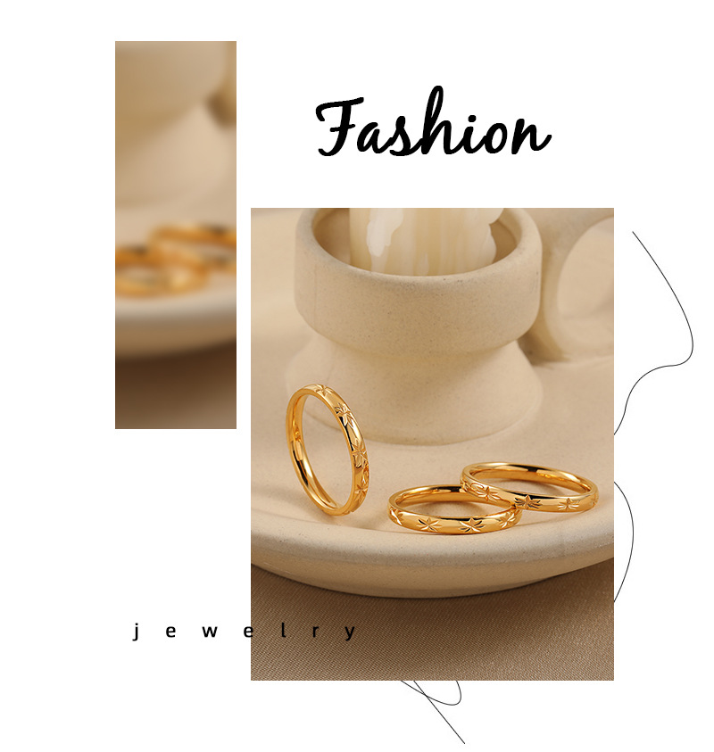 European and American New Ins Niche Simple Eight-Pointed Star Flower Ring Women's Fashion Stylish Gold-Plated Titanium Steel Index Finger Ring
