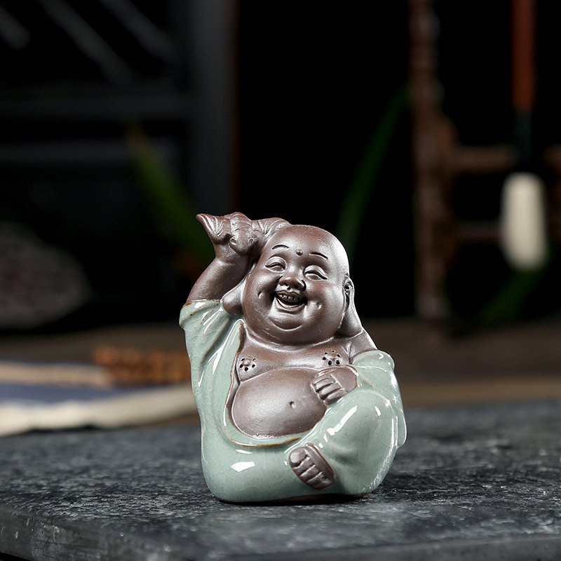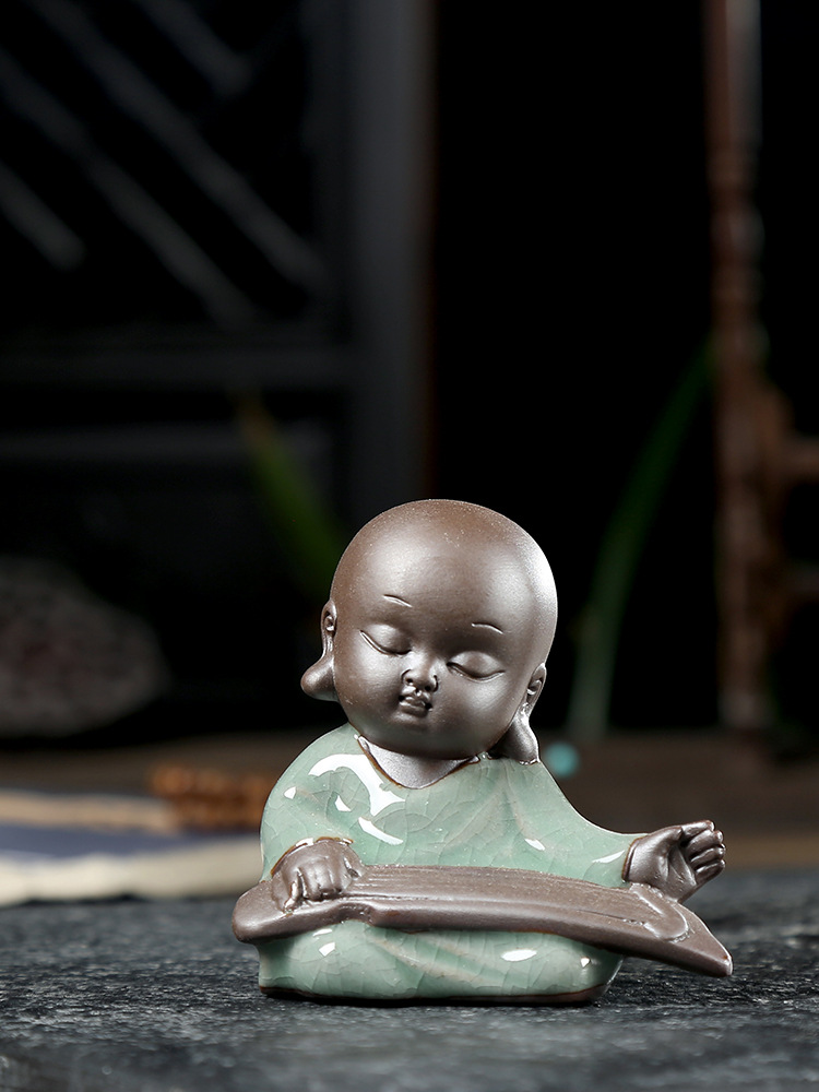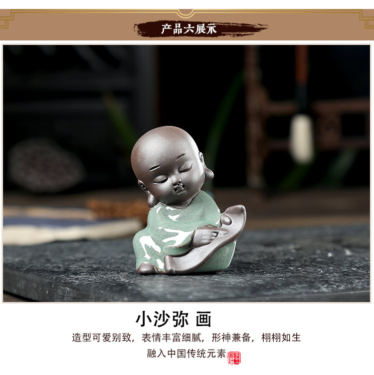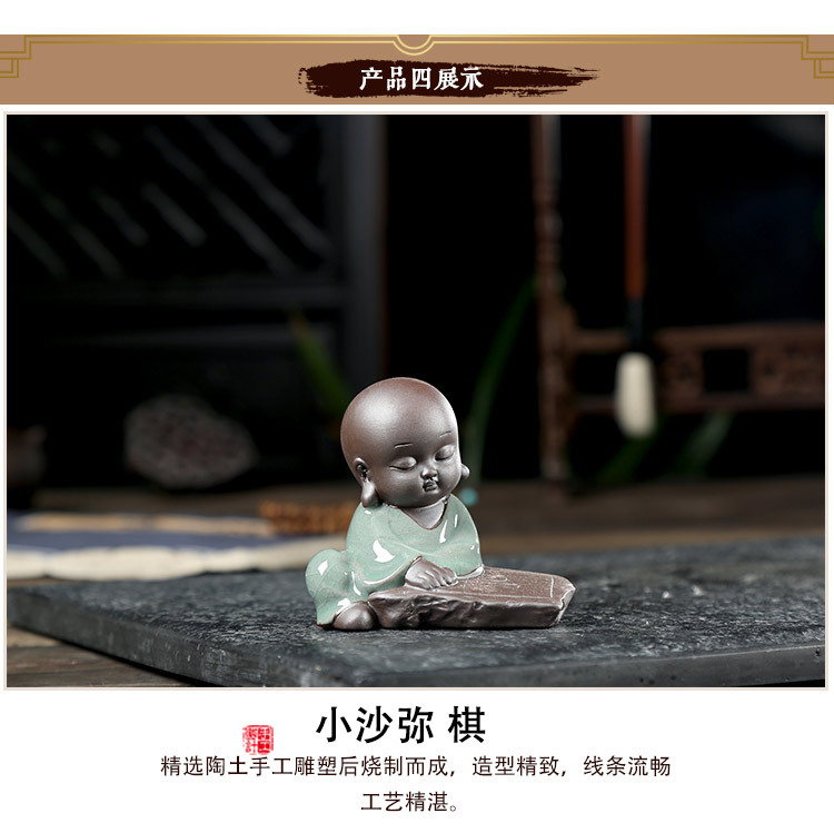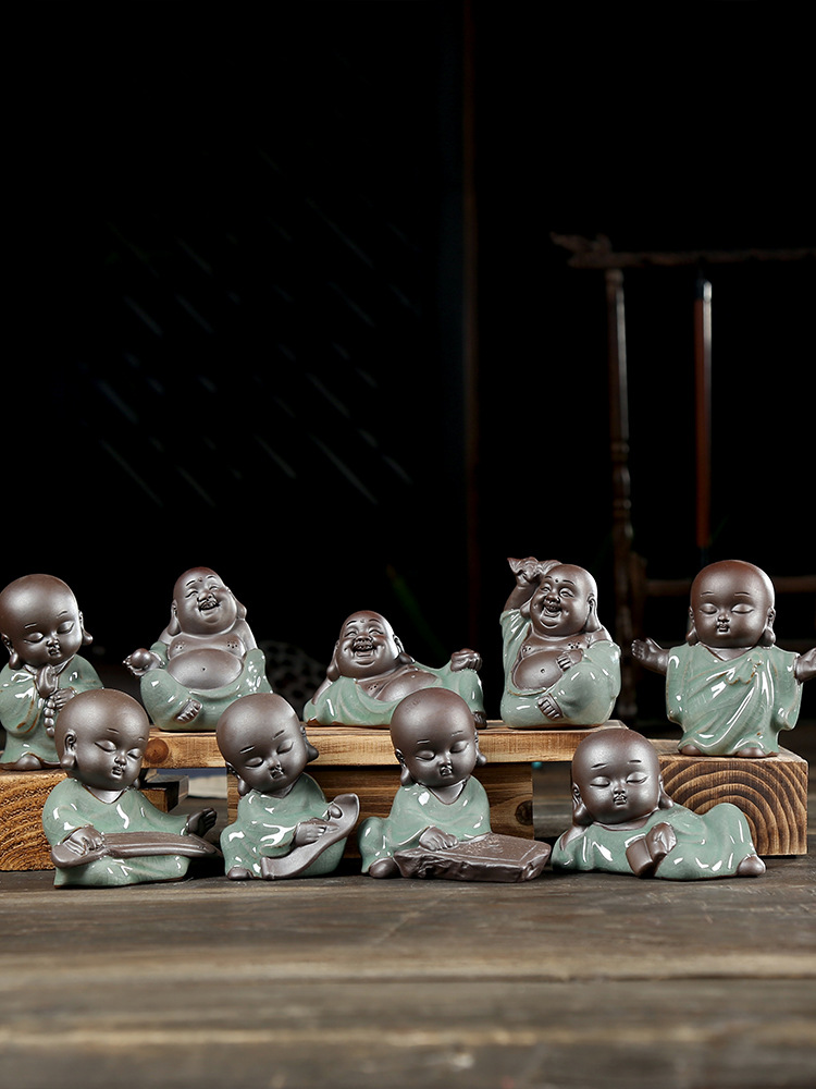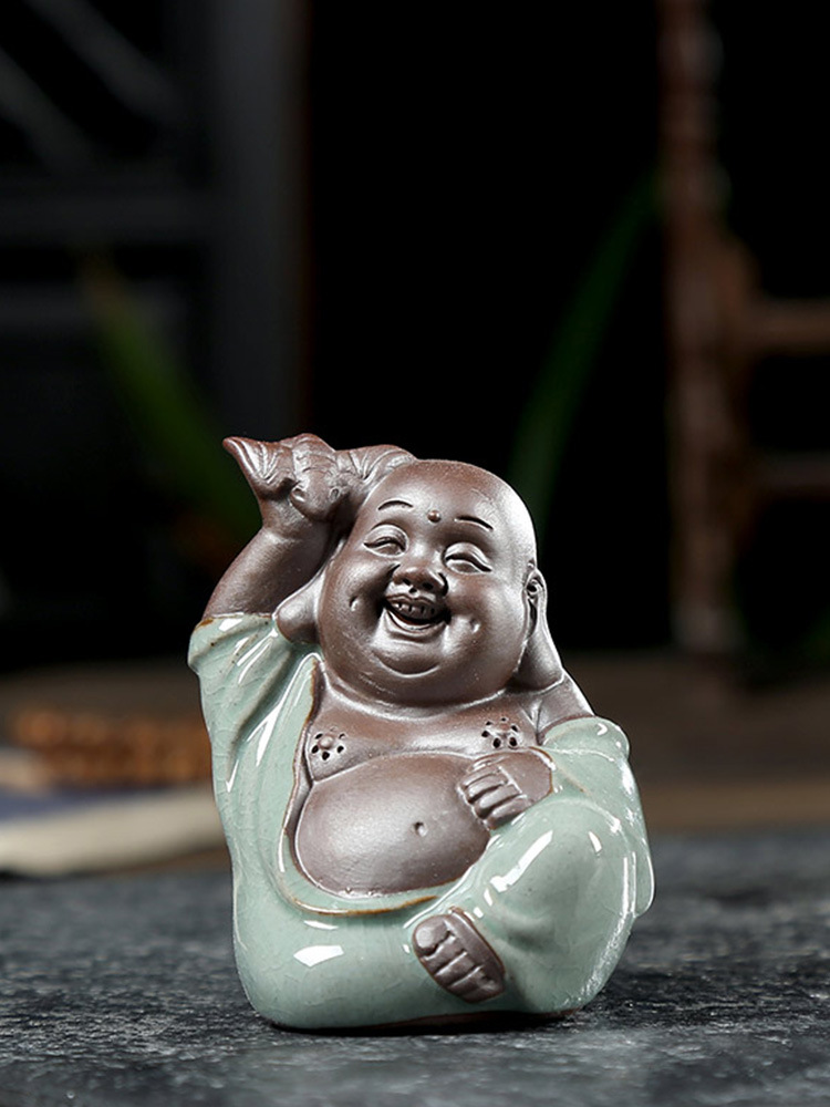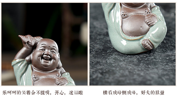 Cute tea pet Maitreya Buddha tea table decoration purple sand Zen piano chess calligraphy and painting little monk tea set can raise tea play