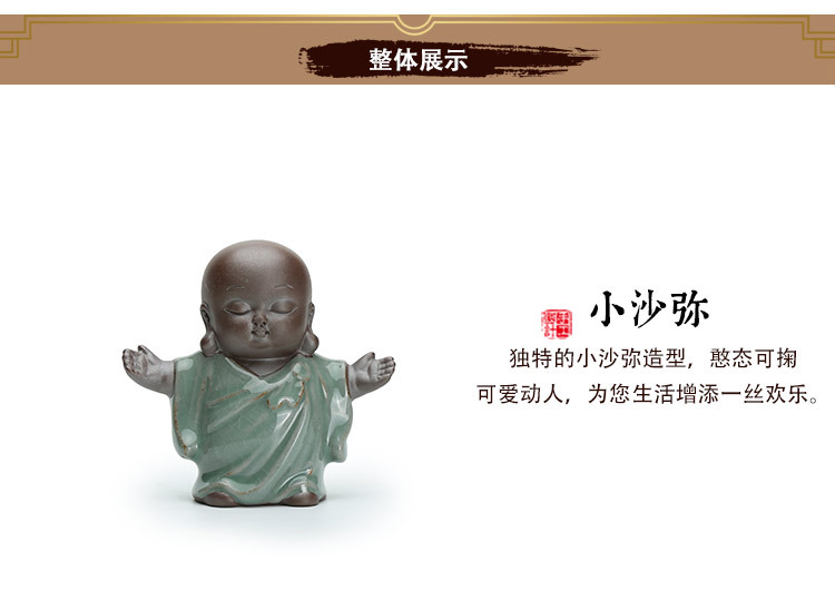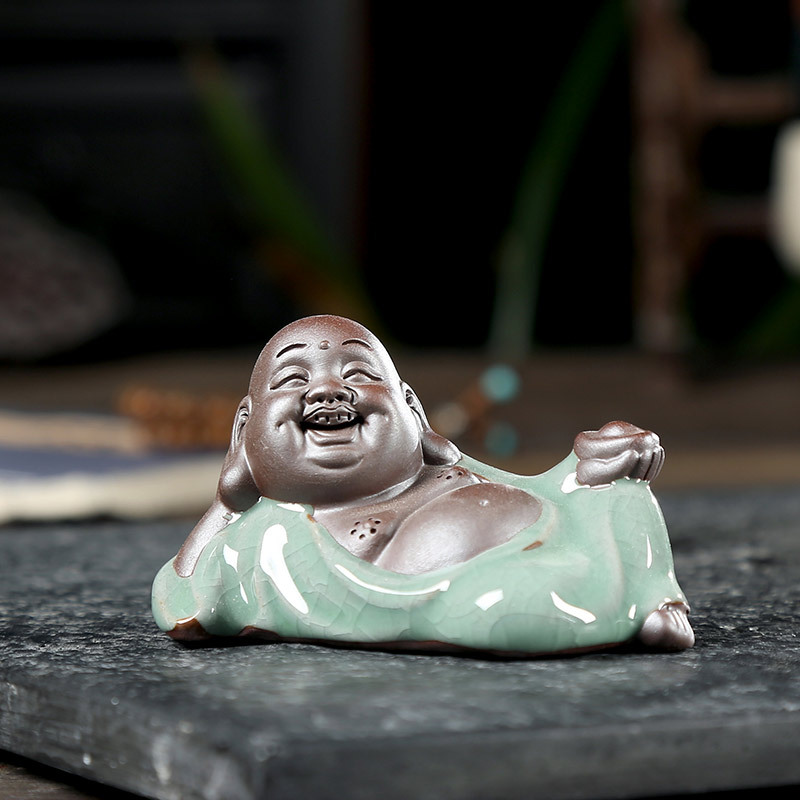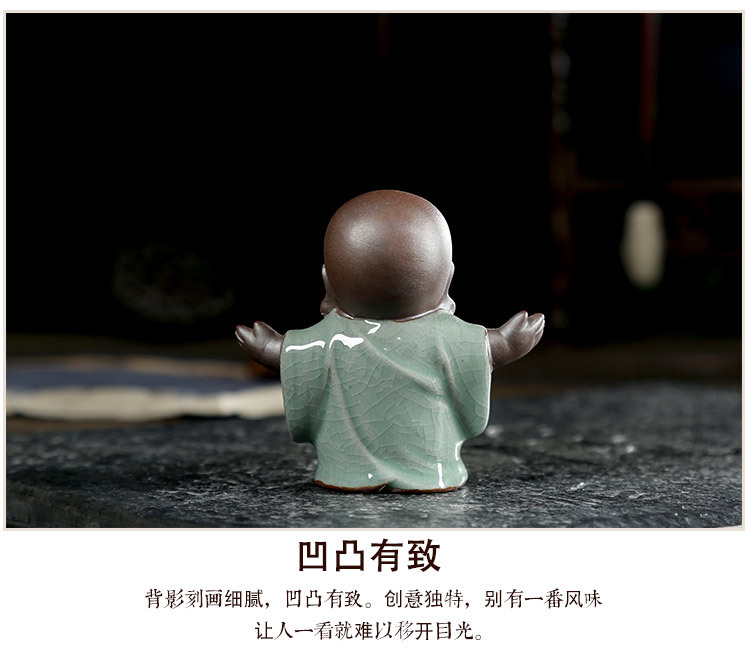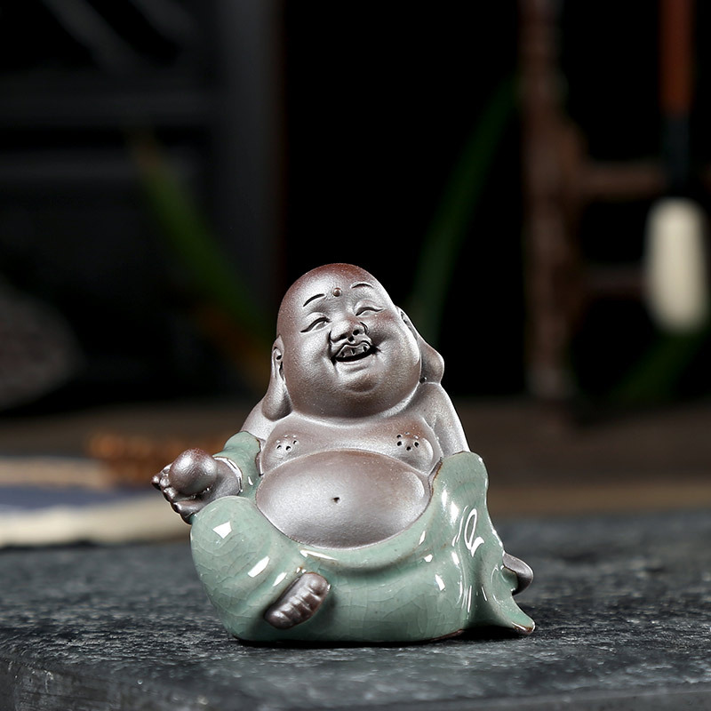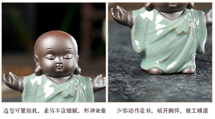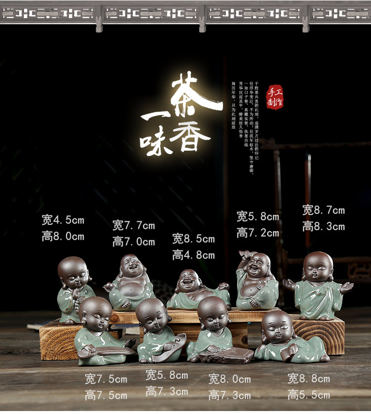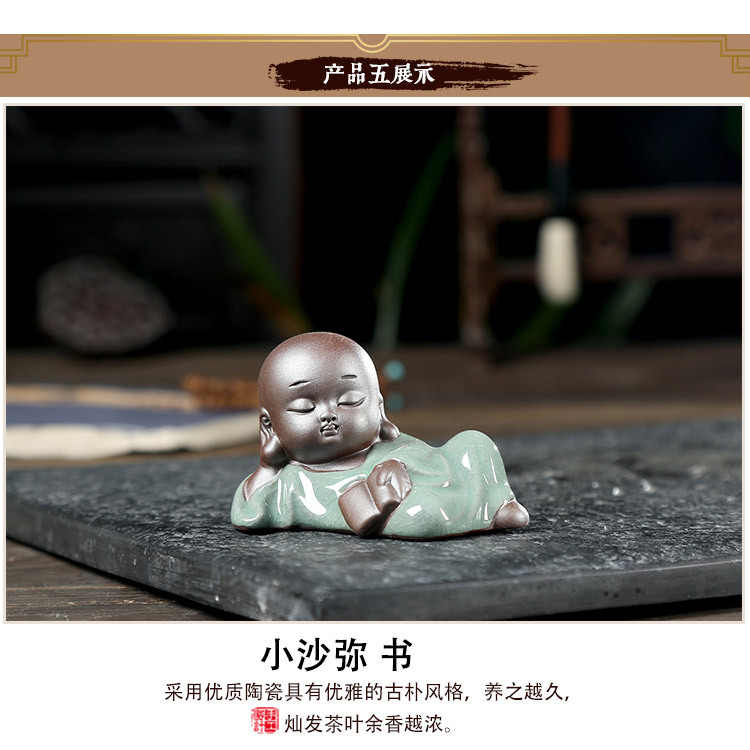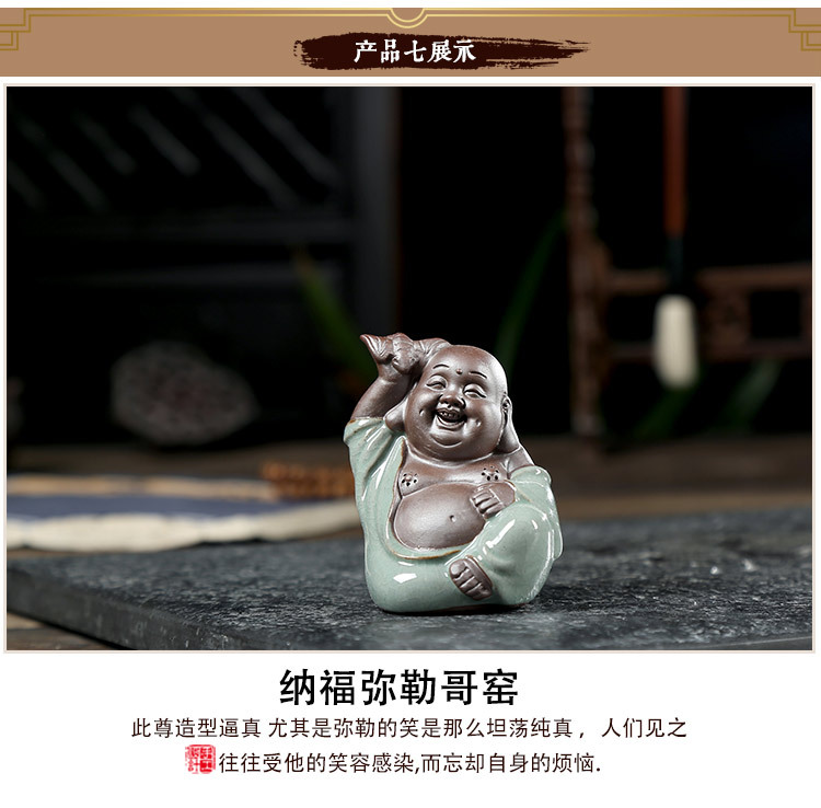 Cute tea pet Maitreya Buddha tea table decoration purple sand Zen piano chess calligraphy and painting little monk tea set can raise tea play