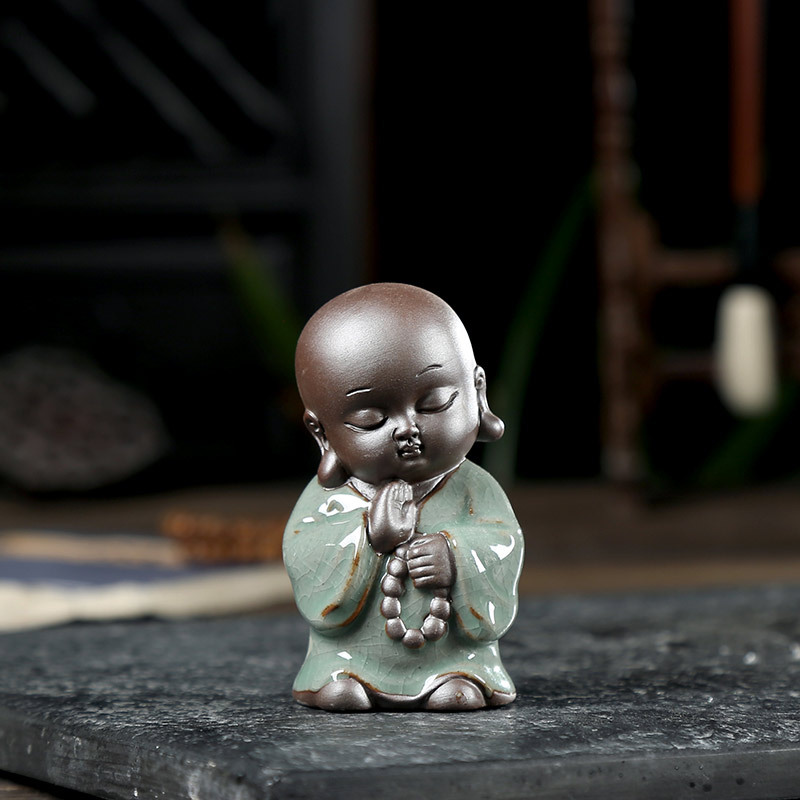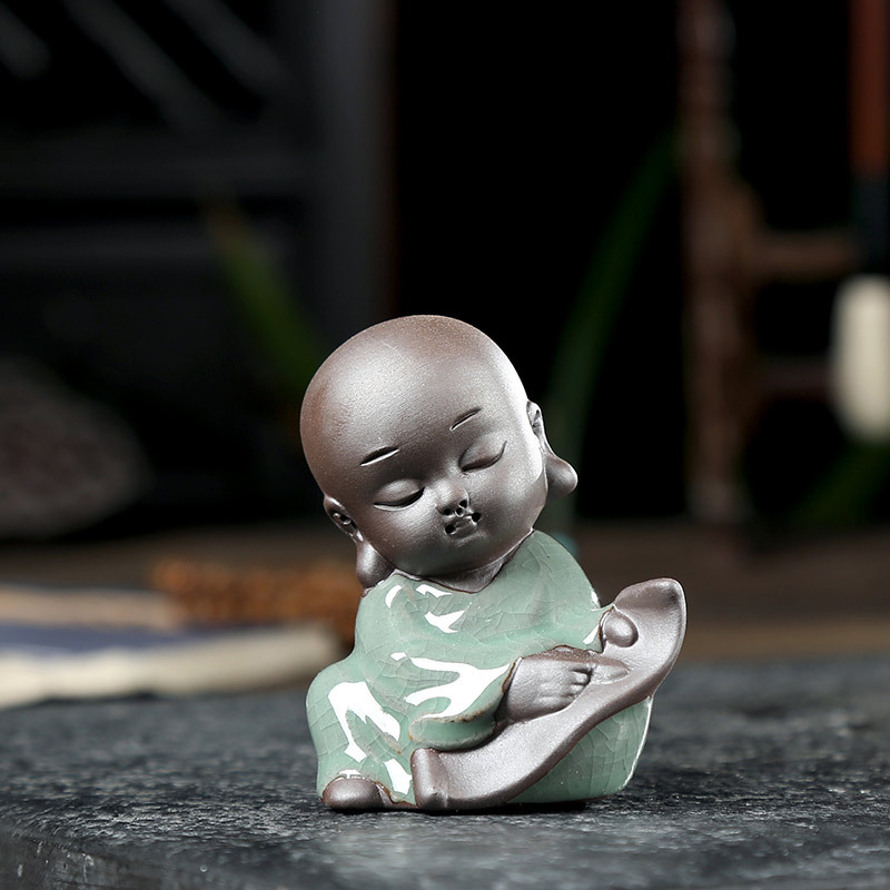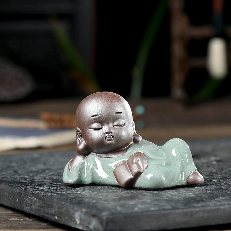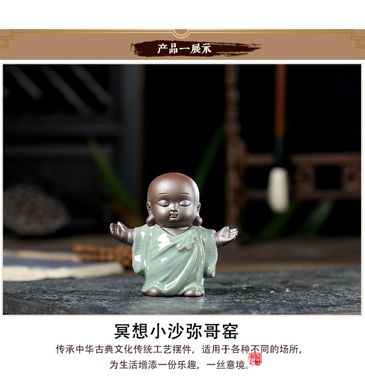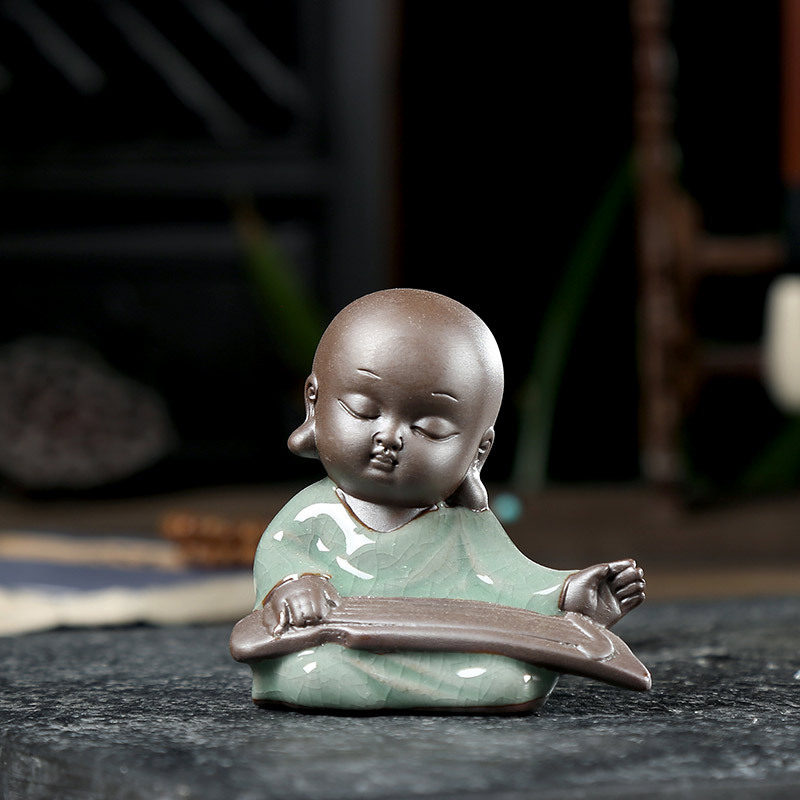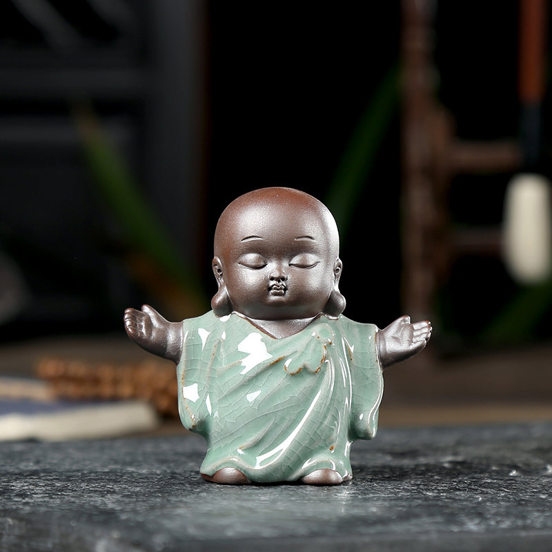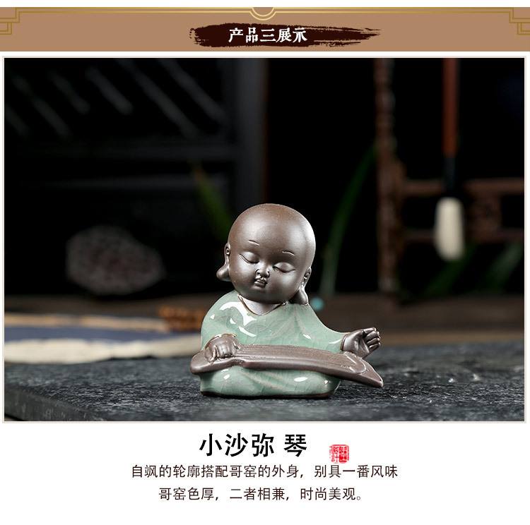 Cute tea pet Maitreya Buddha tea table decoration purple sand Zen piano chess calligraphy and painting little monk tea set can raise tea play