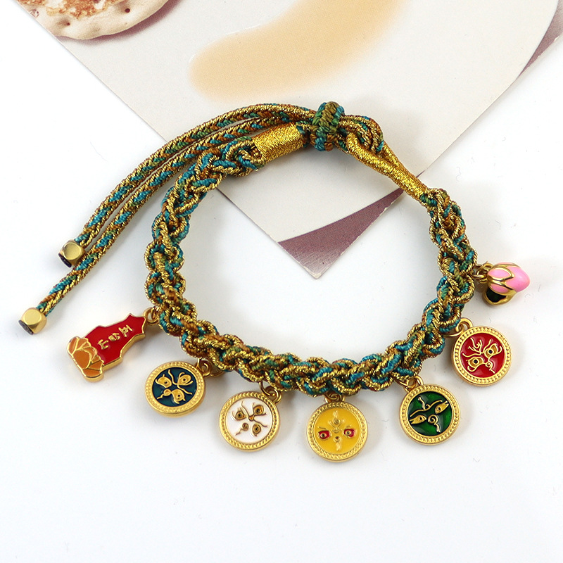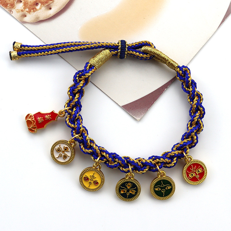 Features: Hidden wind tangka five-way god of wealth eye bracelet hand-woven men's and women's adjustable colorful wenwan eight-strand bracelet