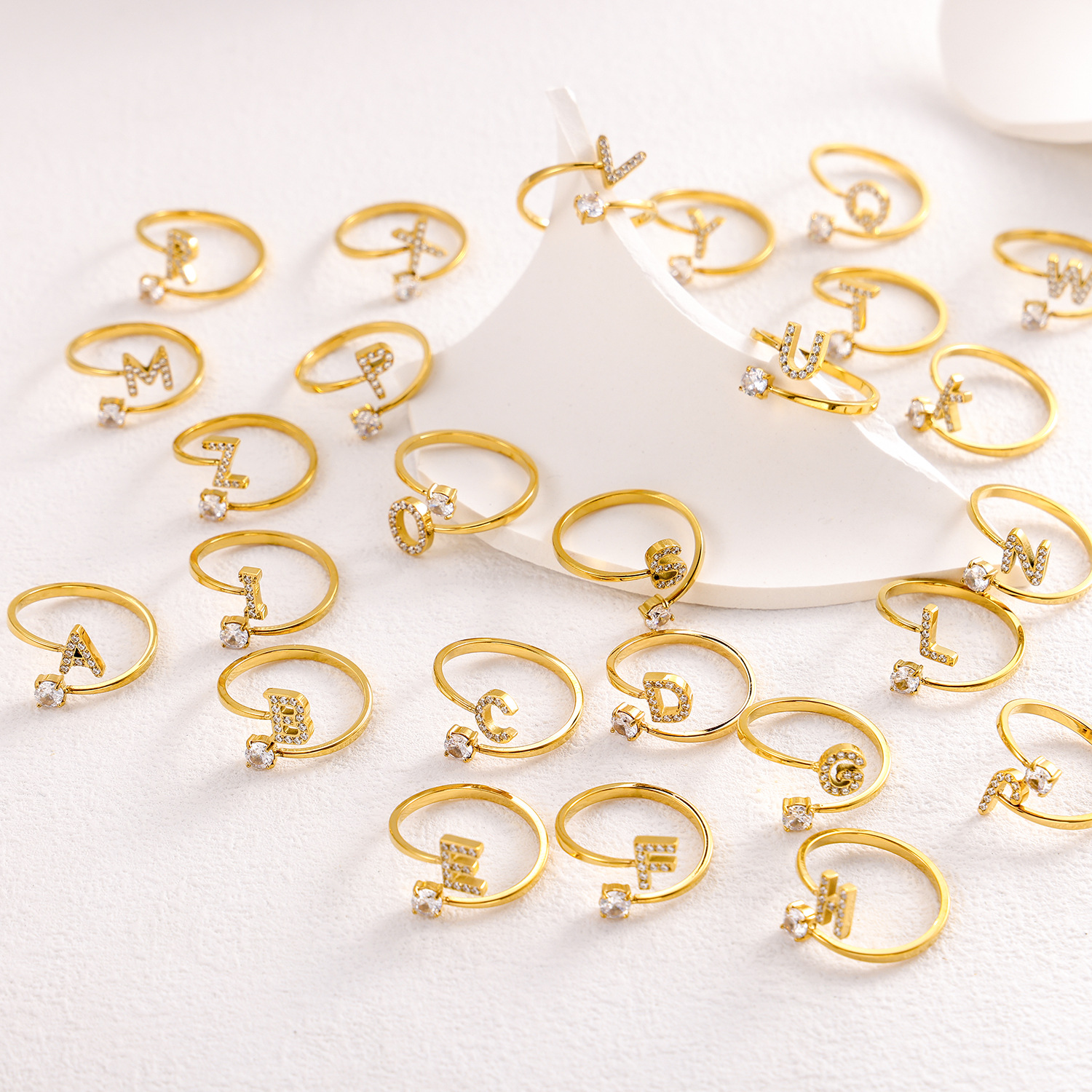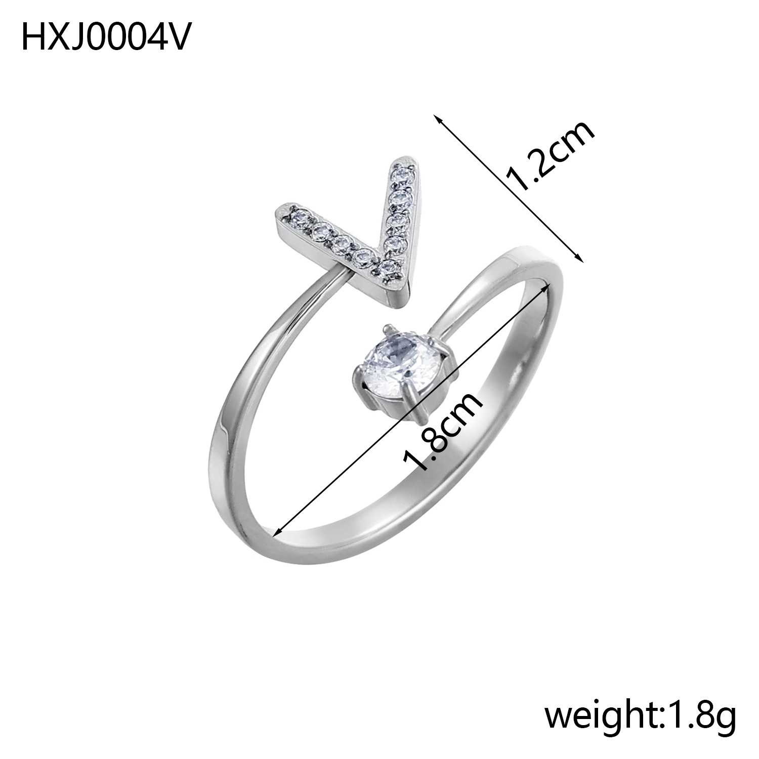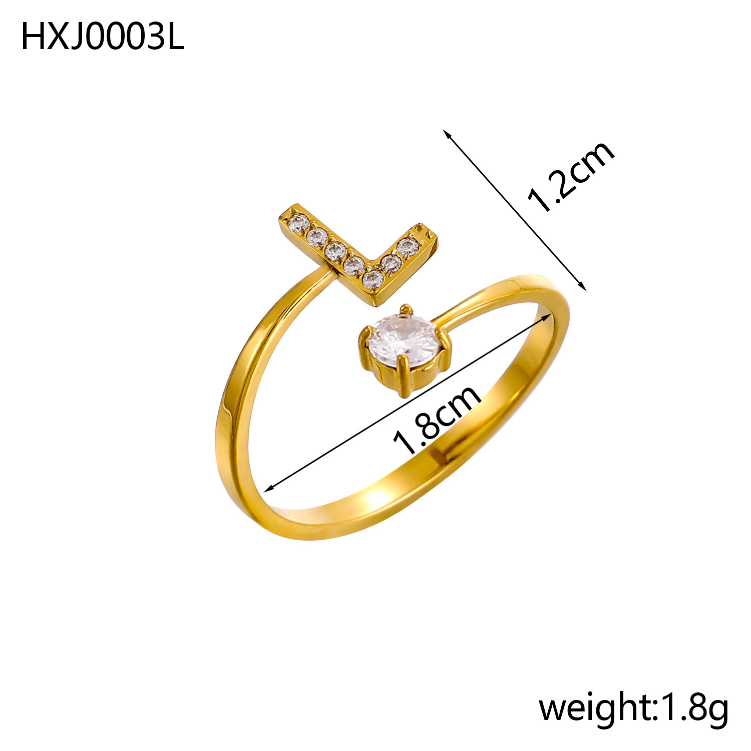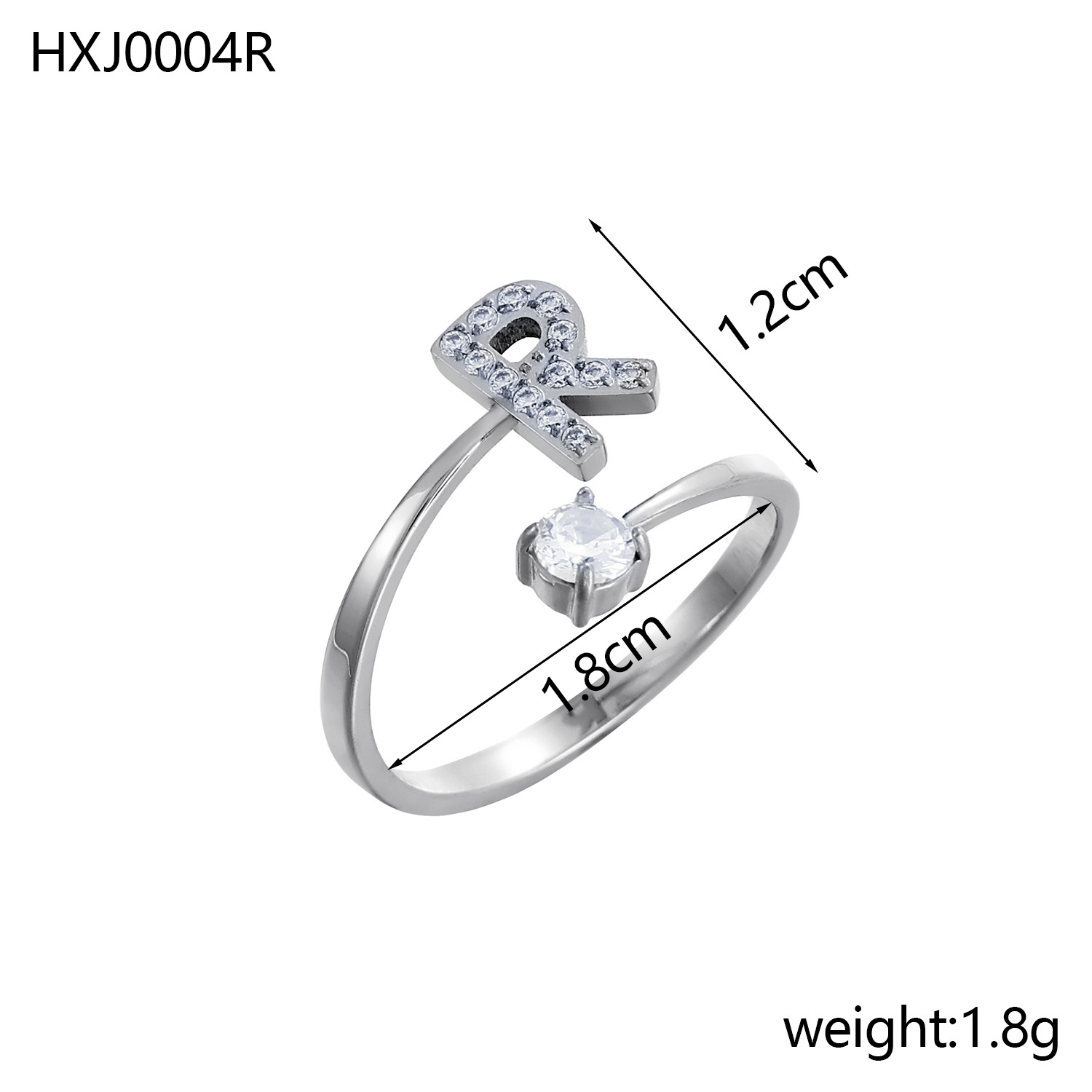 Europe and the United States 26 full diamond English letter opening ring zircon CNC diamond titanium steel vacuum plating does not fade