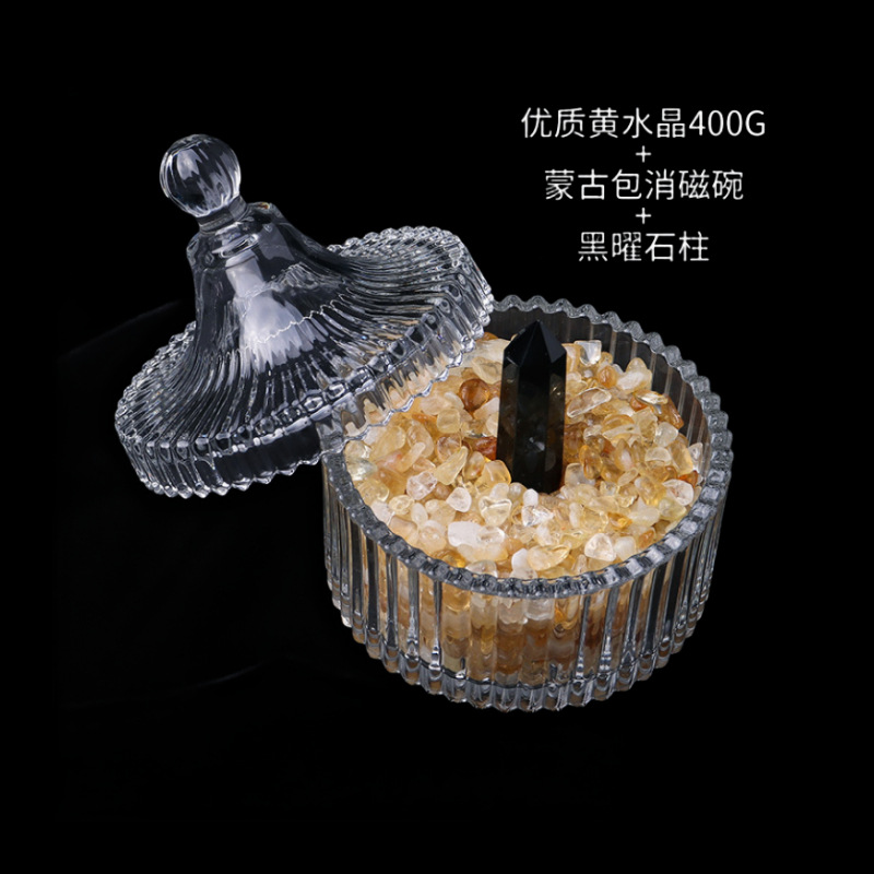 Citrine 400g + Mongolian bag degaussing bowl + obsidian column