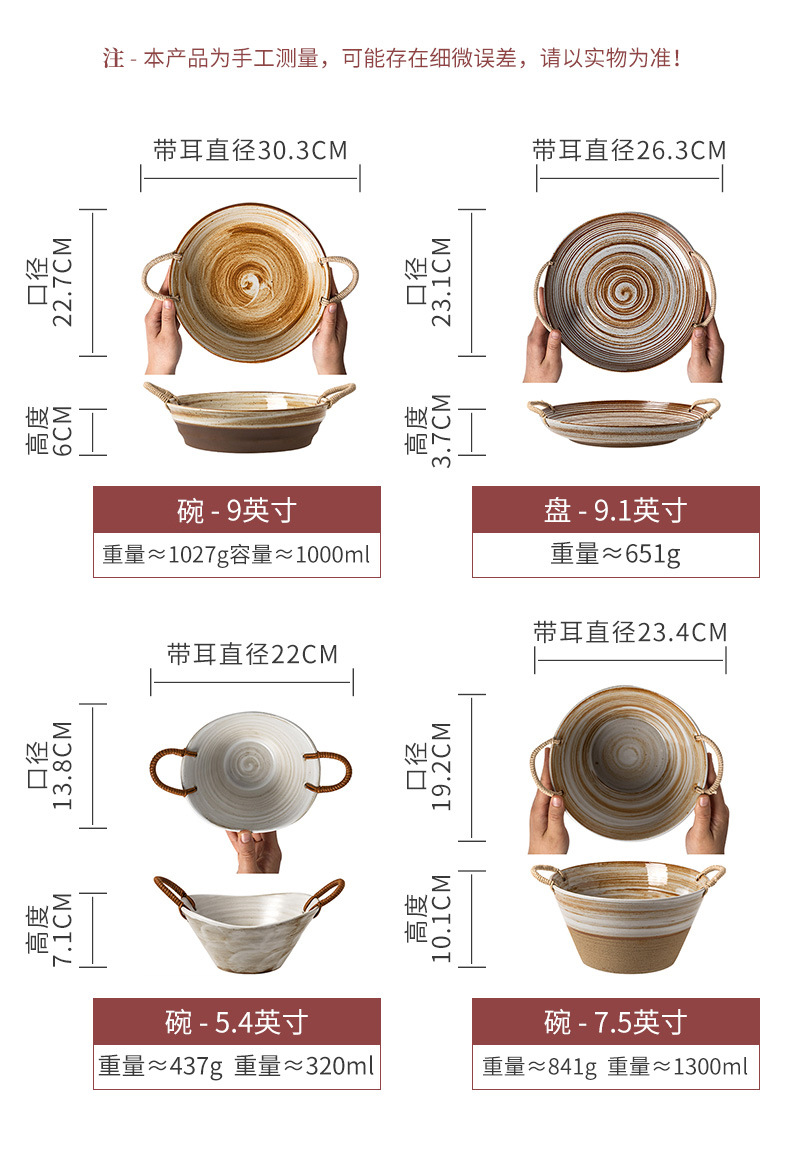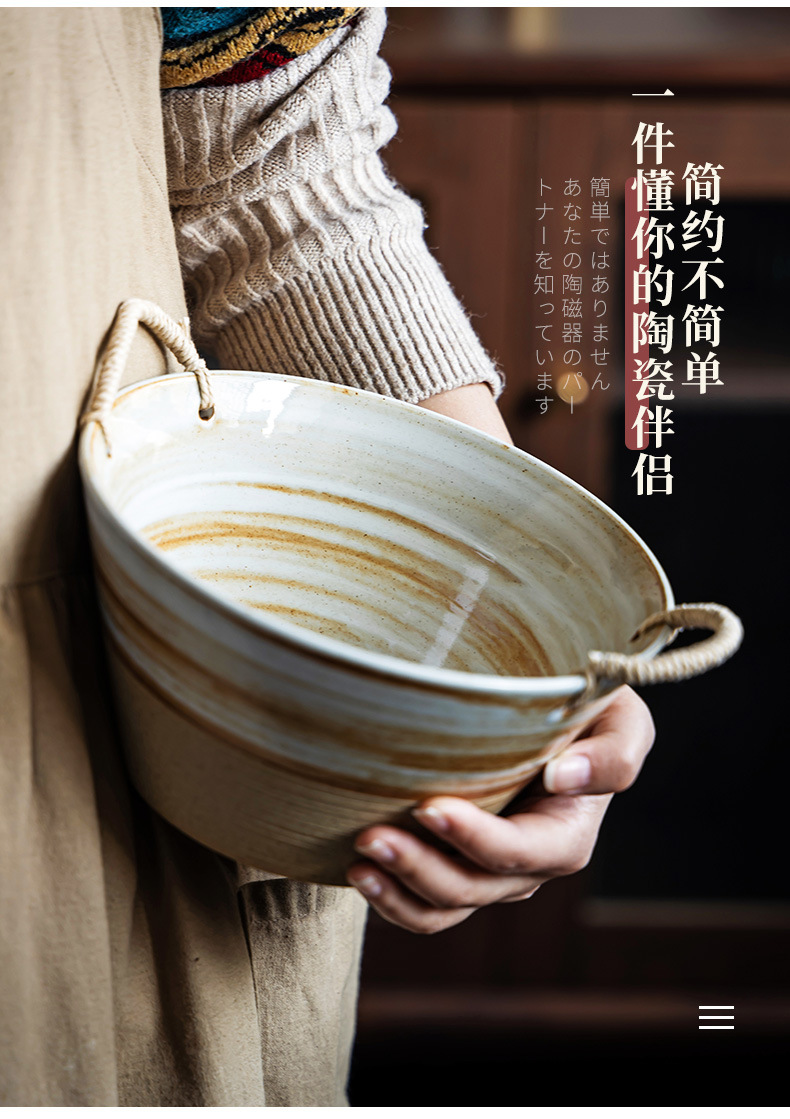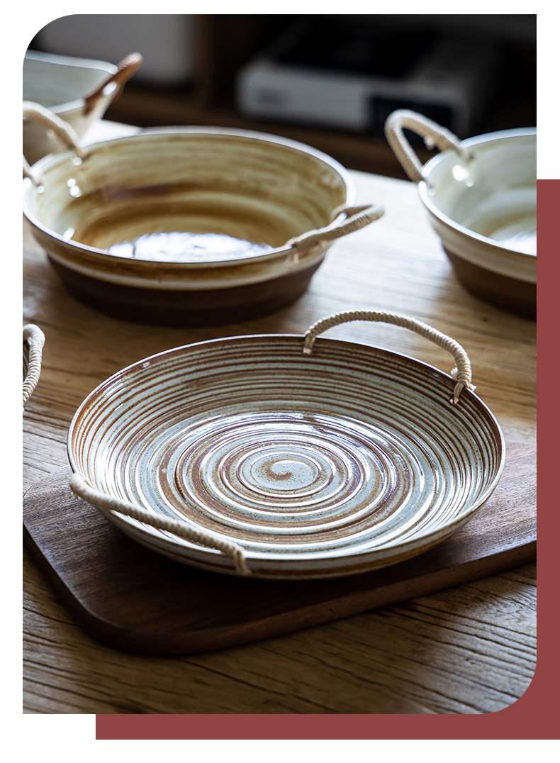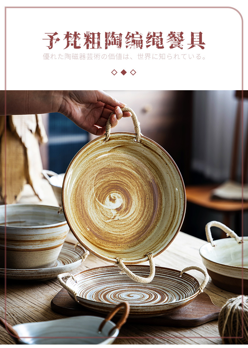 Japanese style dish vintage soup plate stoneware braided rope double-ear plate creative deep plate household salad fruit plate wholesale slightly flaw