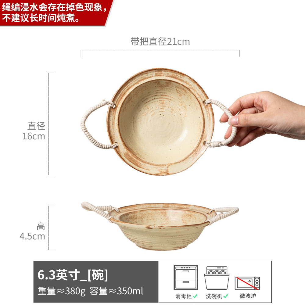 Color: Cha xi-rope braided double-eared bowl beige 6.3inch
