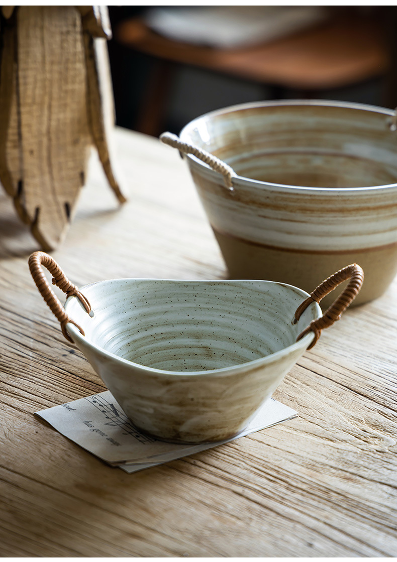 Color: Cha xi-rope braided double-eared bowl beige 7.5inch