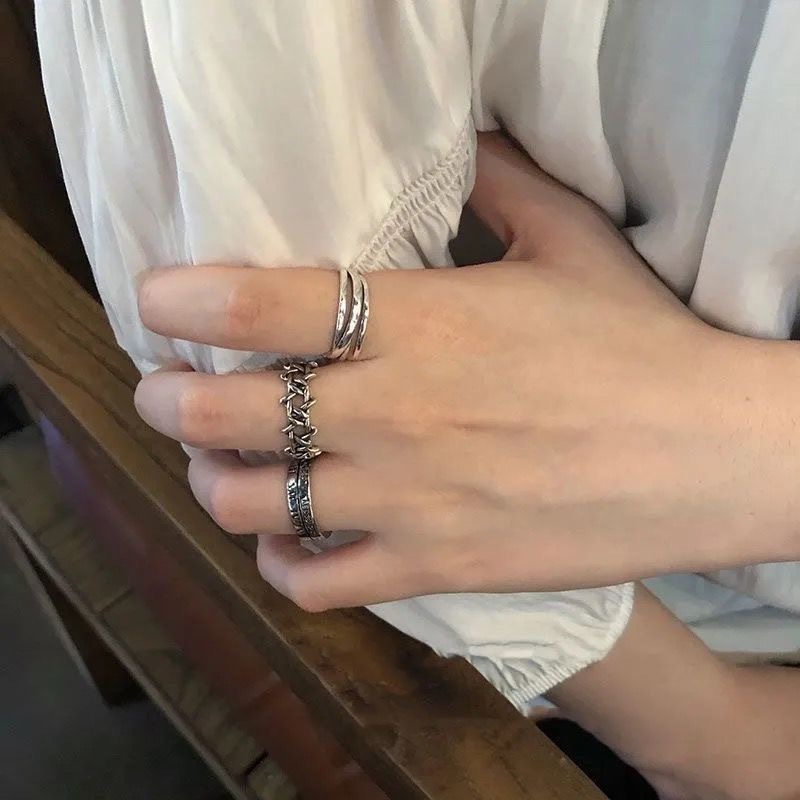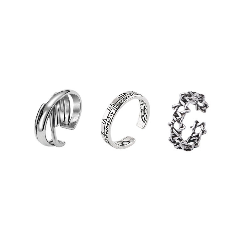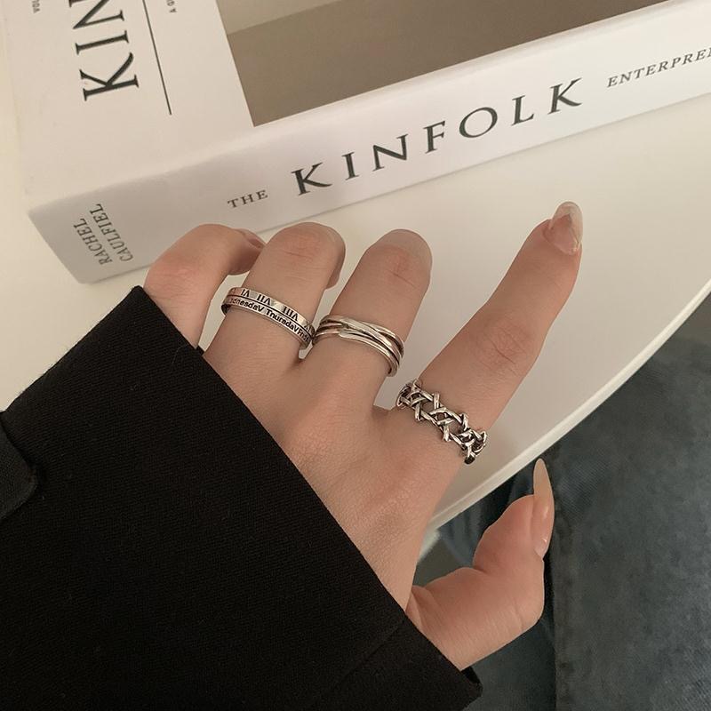 Retro retro retro ins Roman Digital three-piece ring female trendy niche design cold style student open ring male
