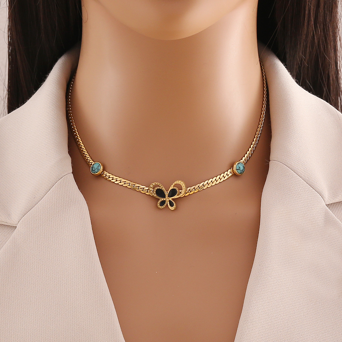 [Bingmeng] fashion butterfly necklace stainless steel jewelry suit European and American cross-border new jewelry N1348