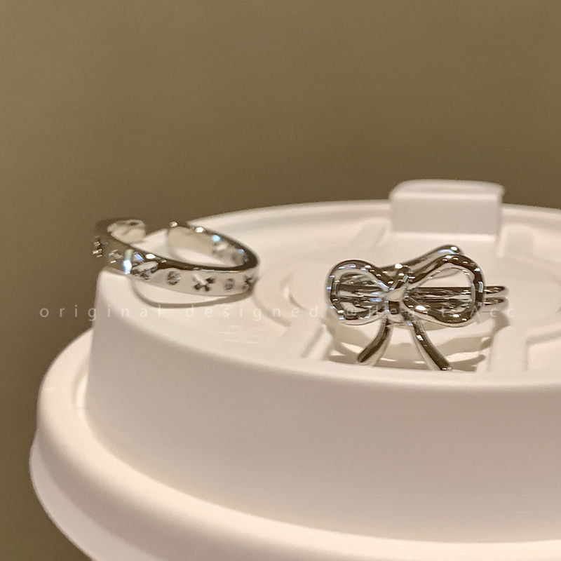 Irregular bow ring for women autumn and winter light luxury cold style open index finger ring fashion personality simple ring fashion