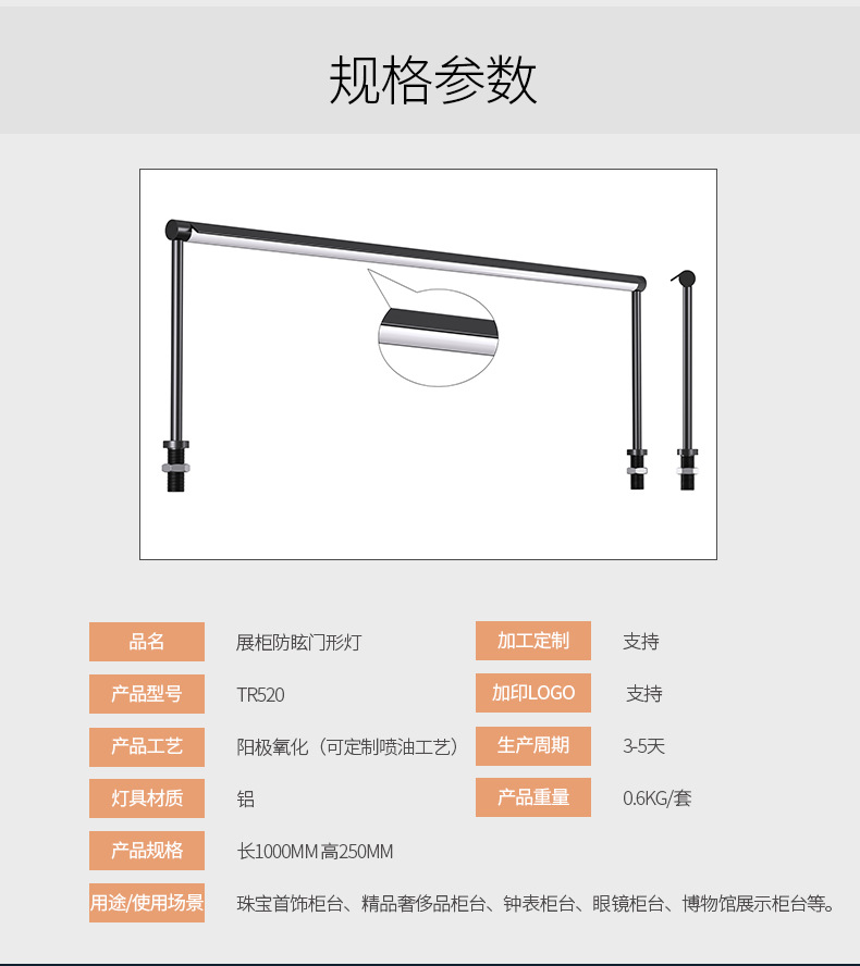 Led Museum Showcase Anti-Glare Lamp Support Rod Door-Shaped Lamp Art Museum Lighting Display Lamps Wholesale