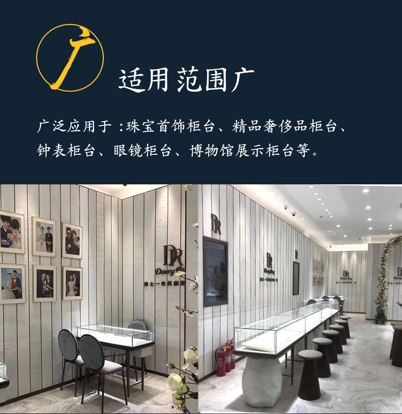 Scope of use: Jewelry counter, boutique luxury counter, clock counter, glasses counter, museum display counter, etc.