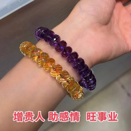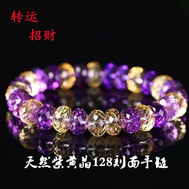 2024 New Full Body Brazilian Violent Citrine Amethyst Facet Shining Bracelet Men's and Women's Bracelet