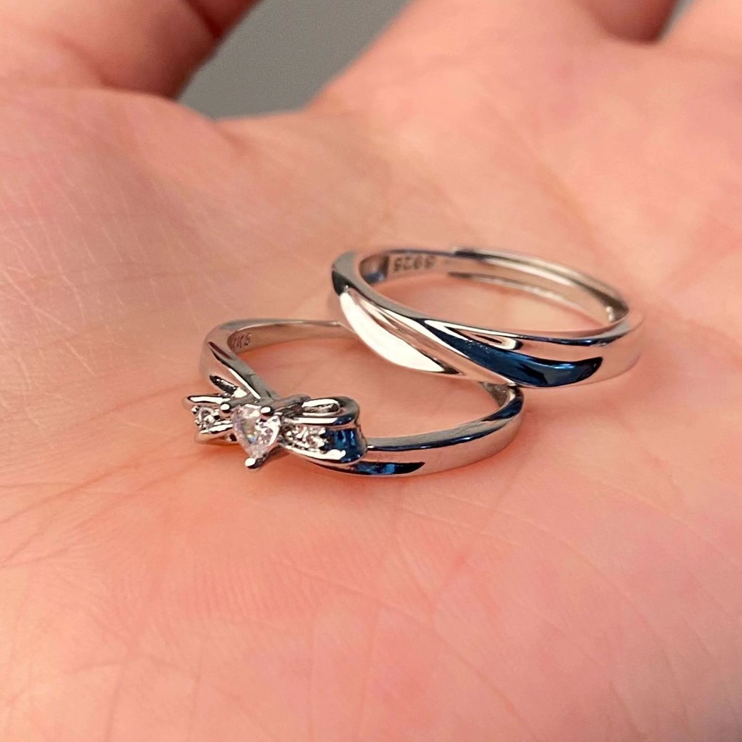 Streamer couple ring male and female open ring light luxury simple all-match High sense bow adjustable ring