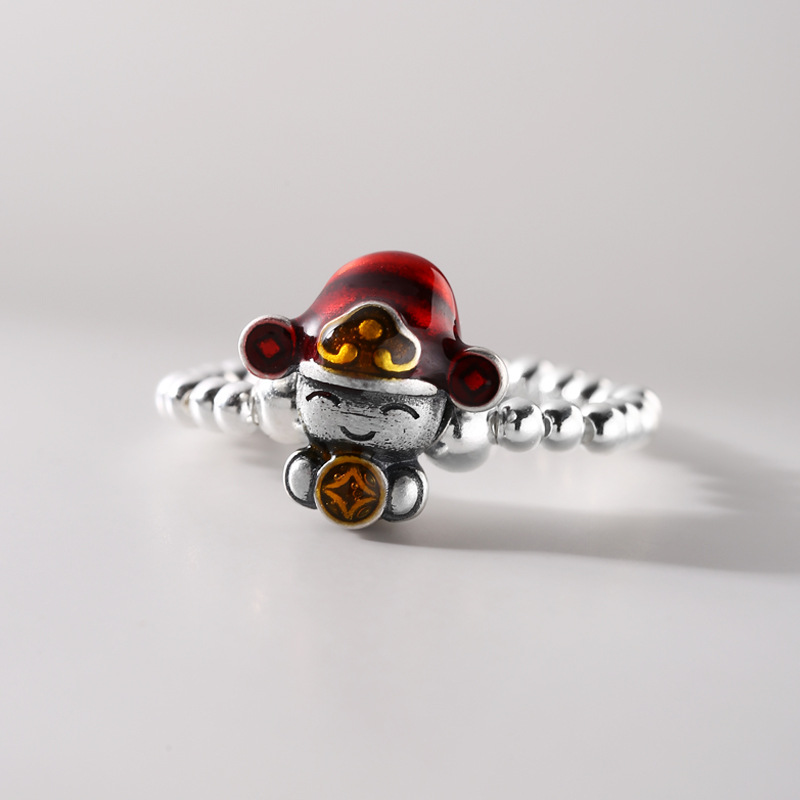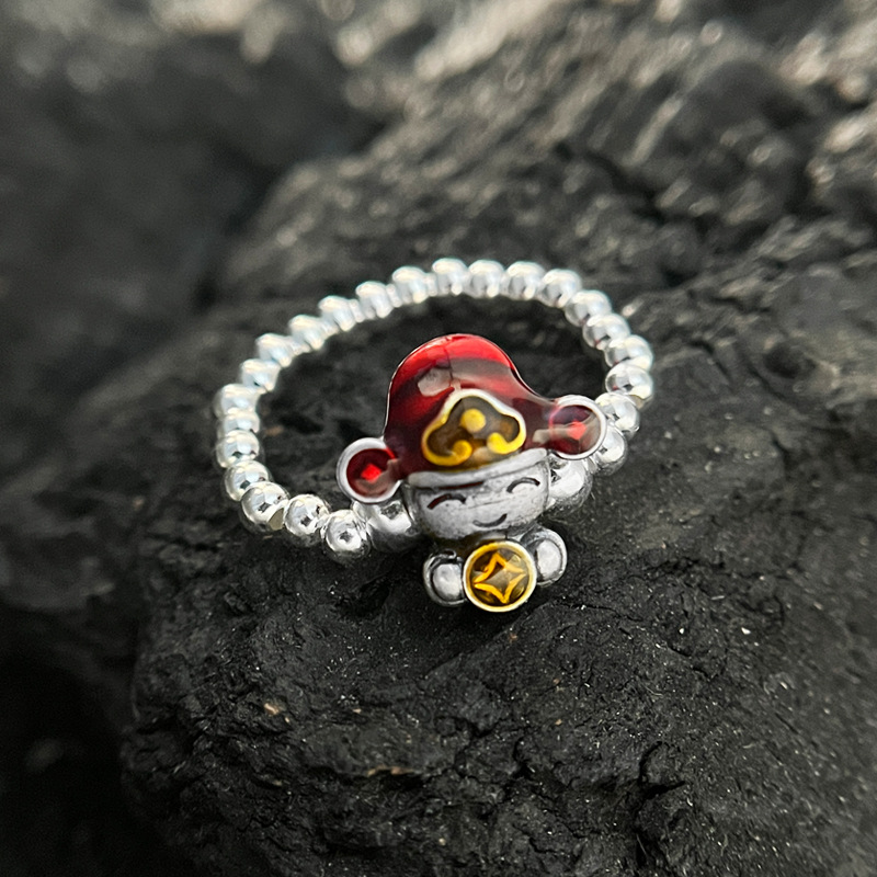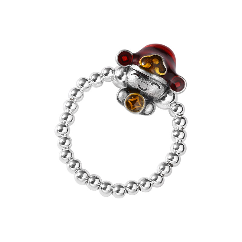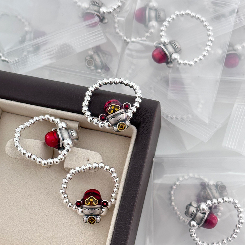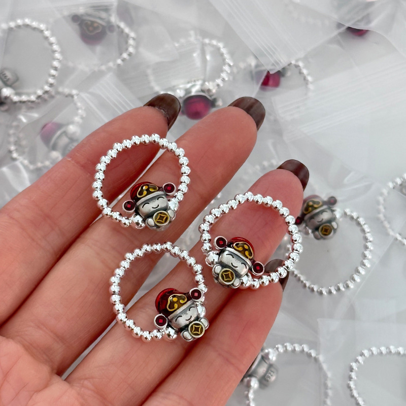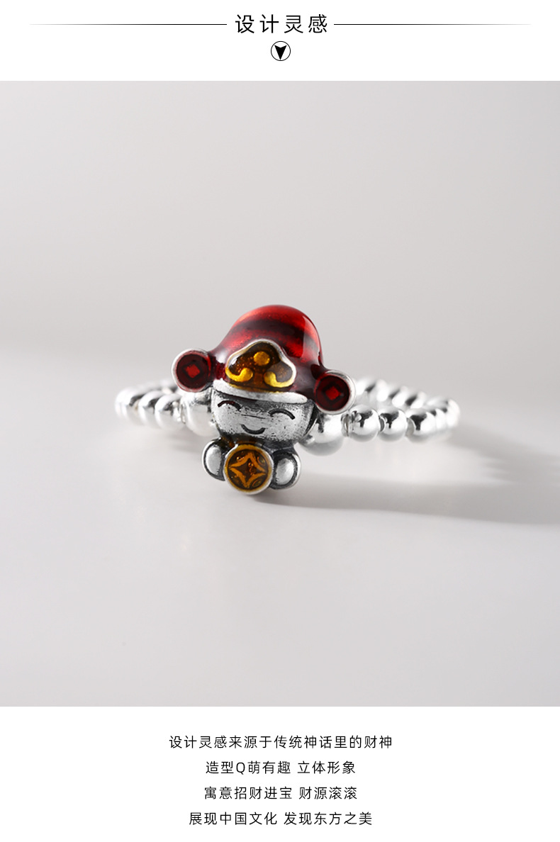 925 sterling silver drop oil God of Wealth coin ring Women's simple retro distressed handmade elastic rope design ring J5970