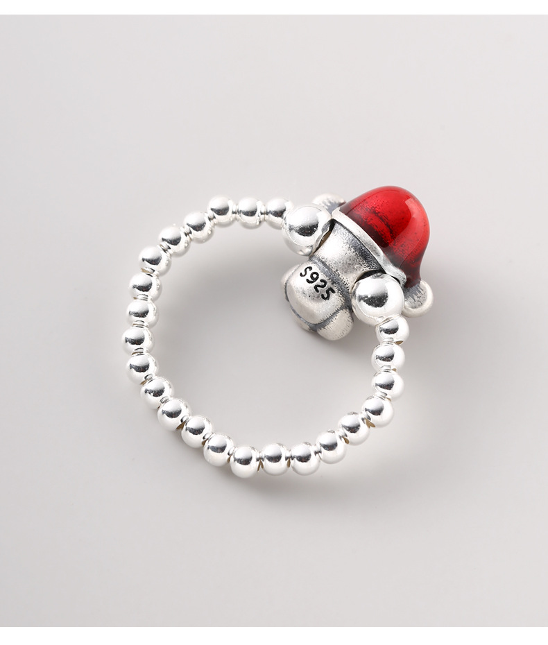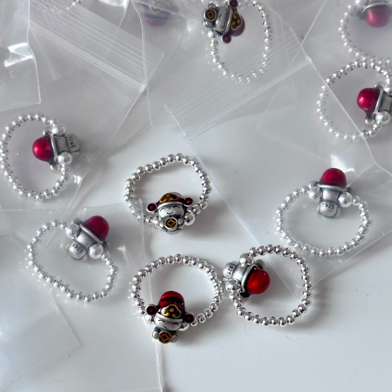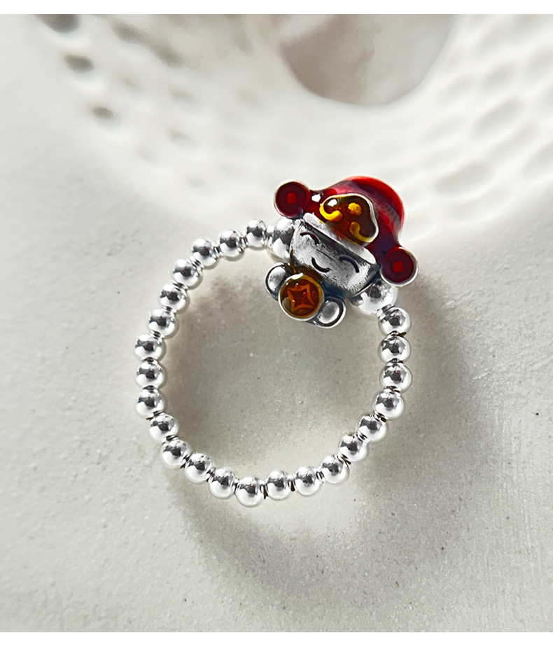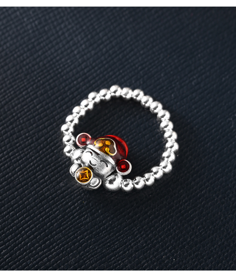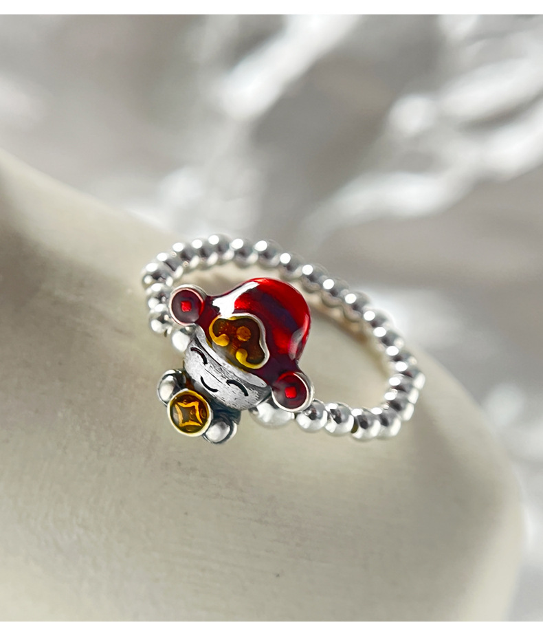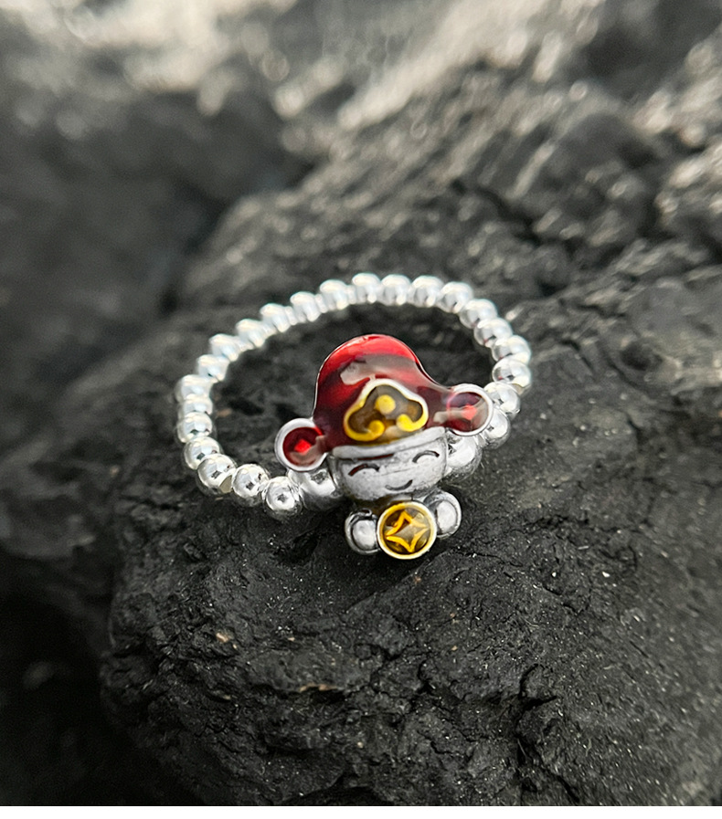 925 sterling silver drop oil God of Wealth coin ring Women's simple retro distressed handmade elastic rope design ring J5970