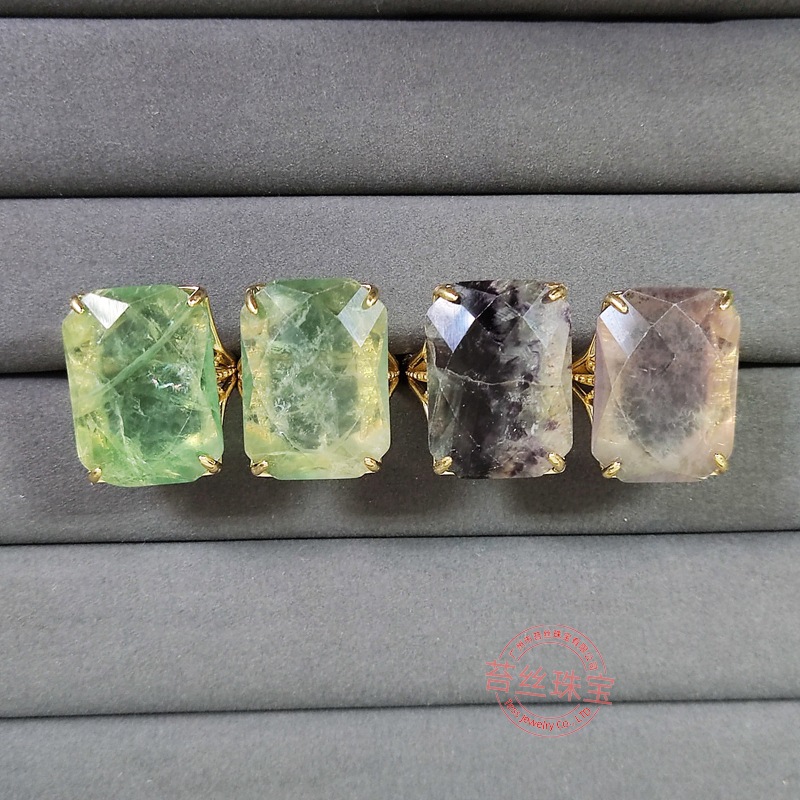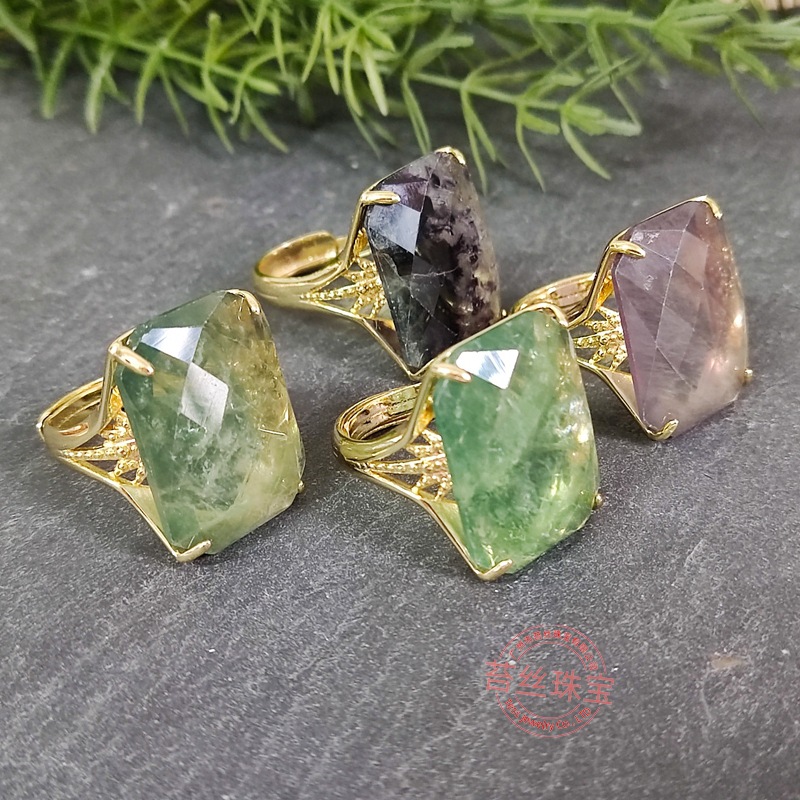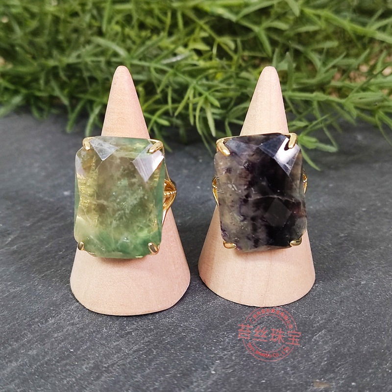 Natural crystal green crystal ring Europe and the United States exaggerated jewelry Bohemian food finger ring wholesale rectangular fluorite Europe and the United States