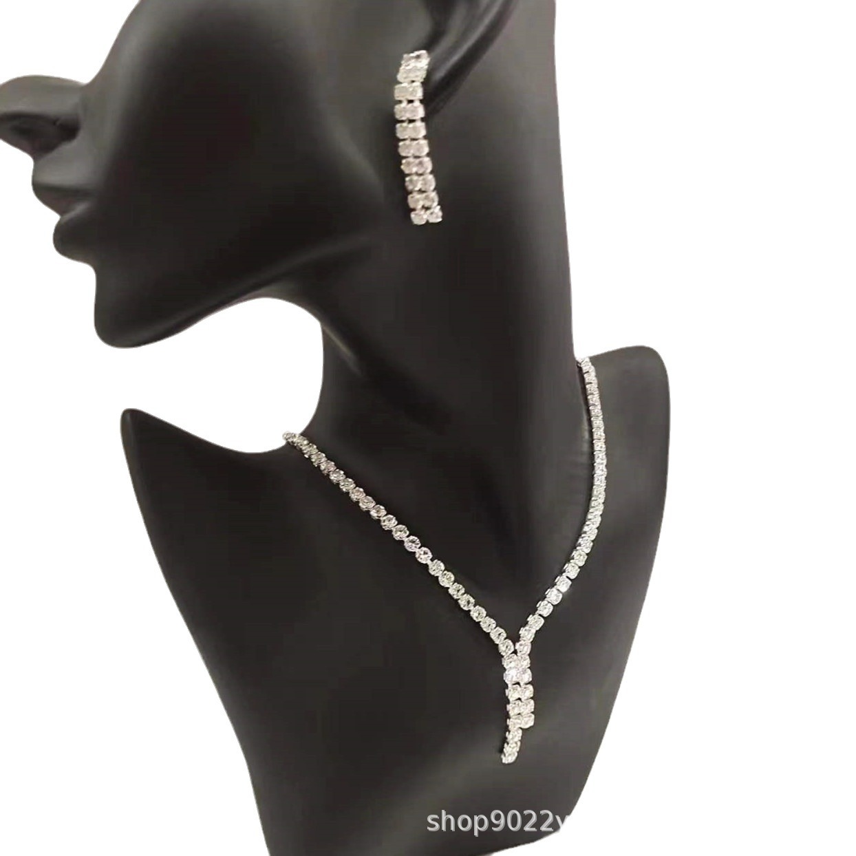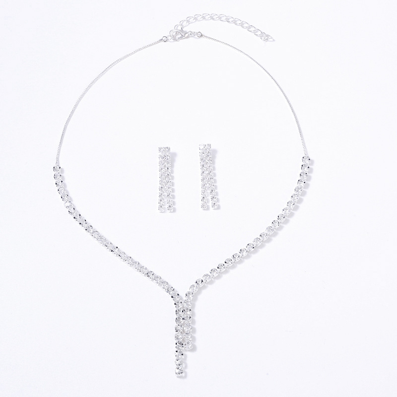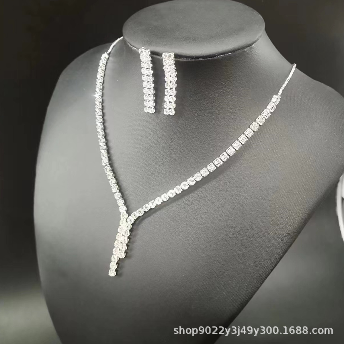 Bridal jewelry simple all-match long tassel zircon necklace earrings suit dinner dress accessories factory wholesale