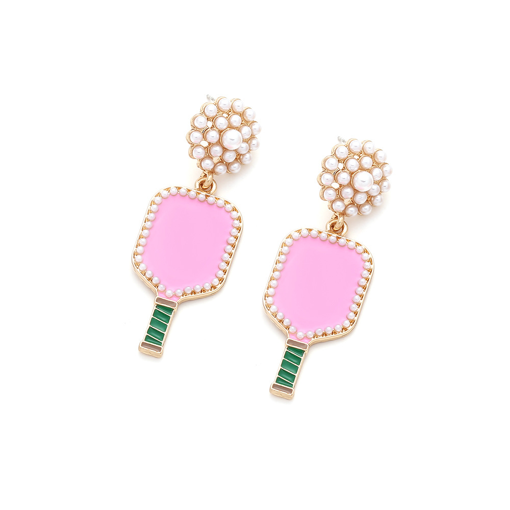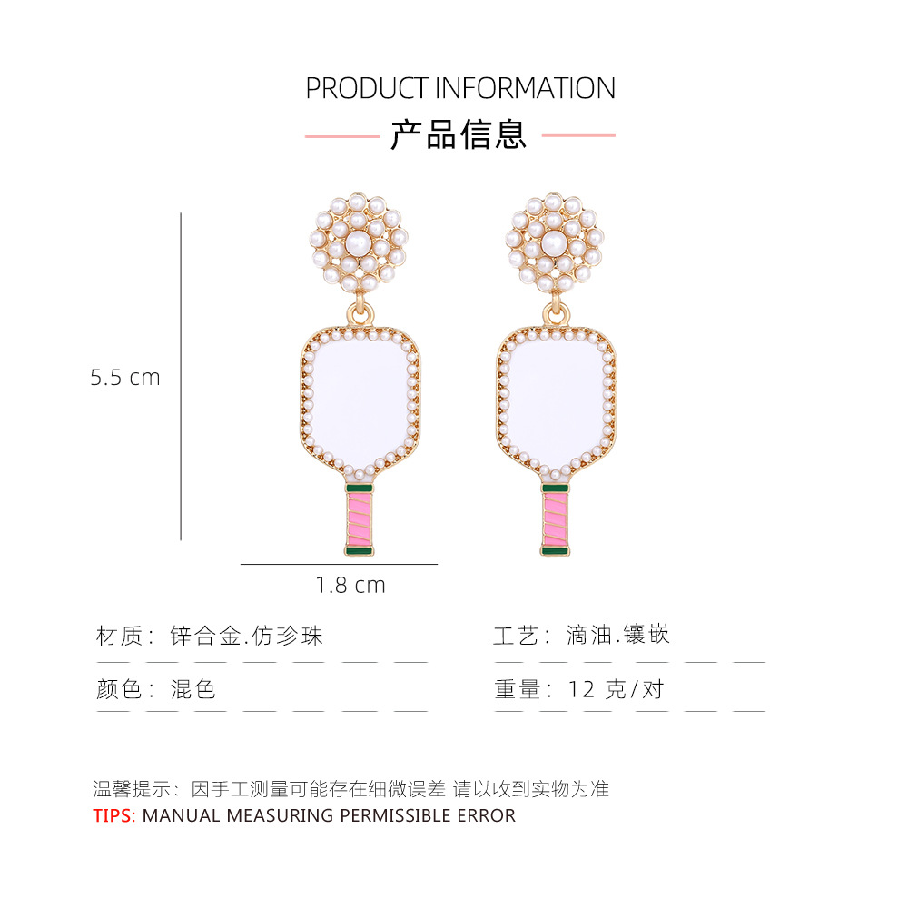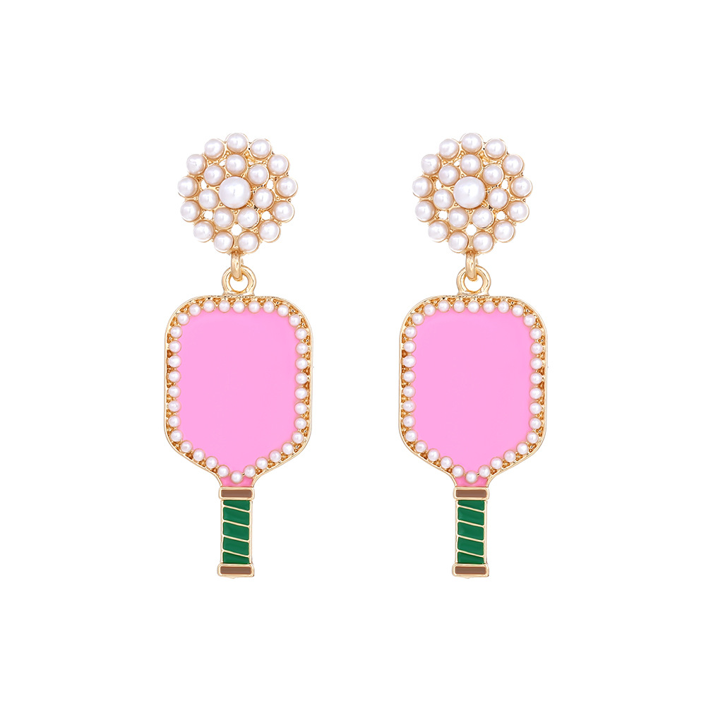 European and American cute pink dripping racket earrings interesting alloy inlaid artificial pearl earrings new cross-border earrings for women