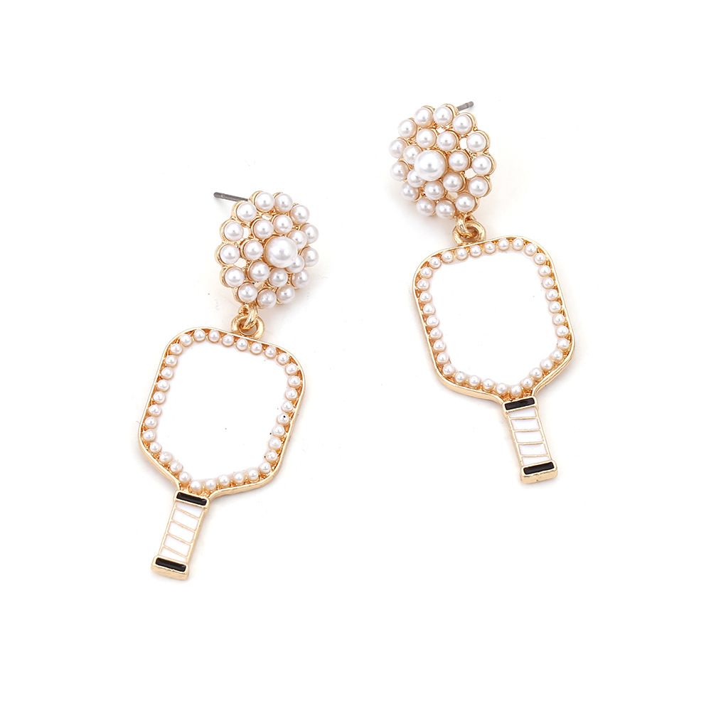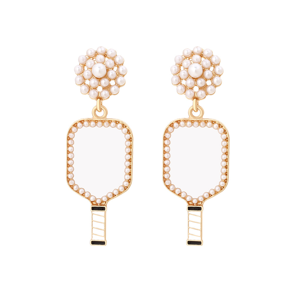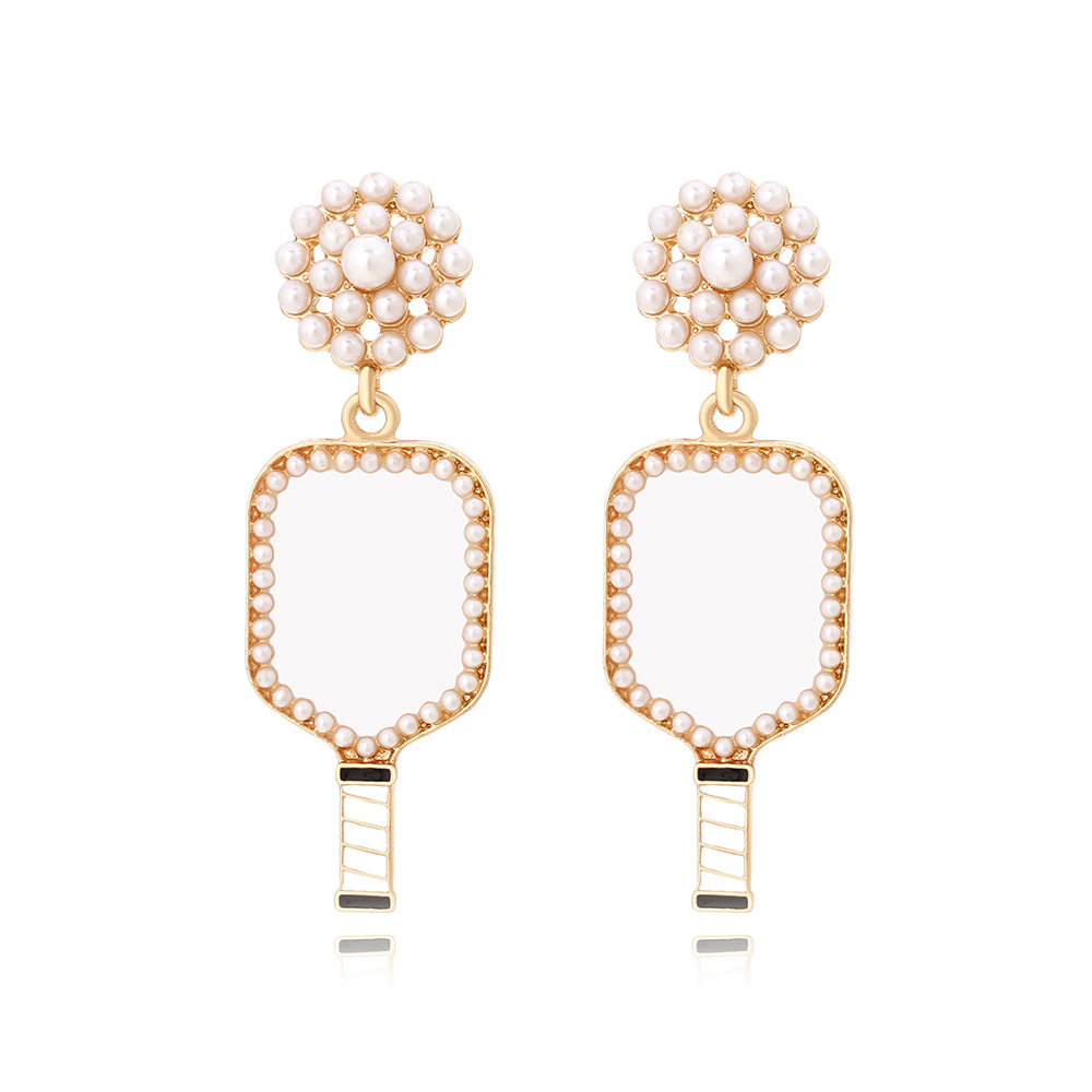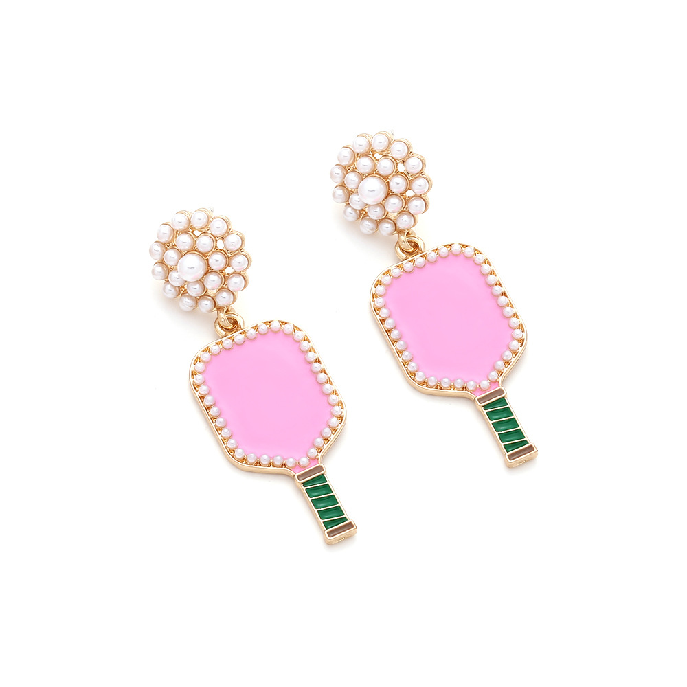 European and American cute pink dripping racket earrings interesting alloy inlaid artificial pearl earrings new cross-border earrings for women
