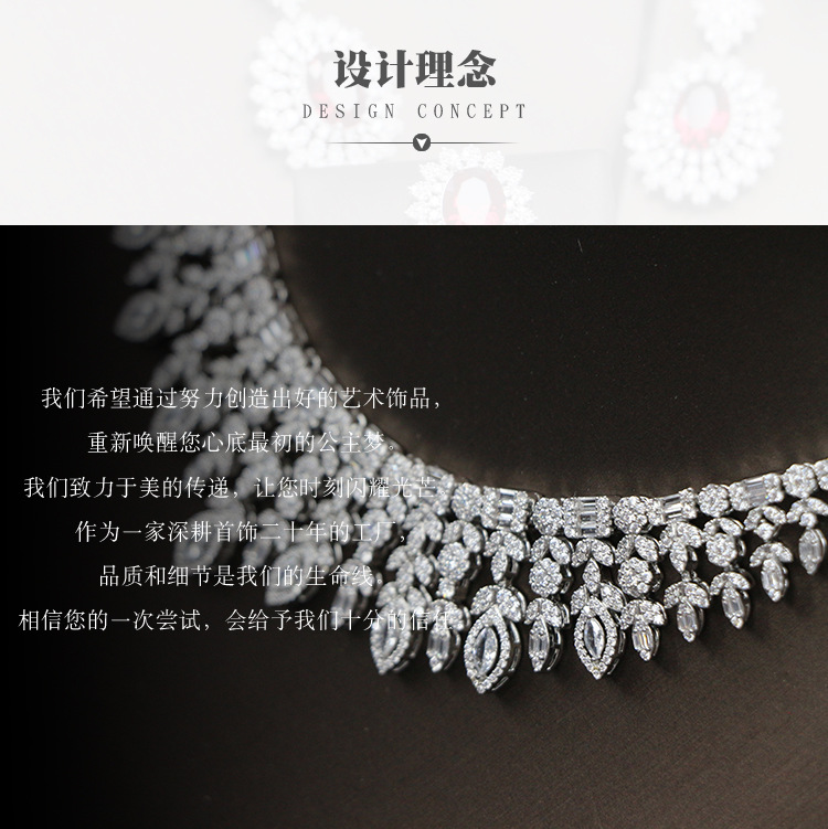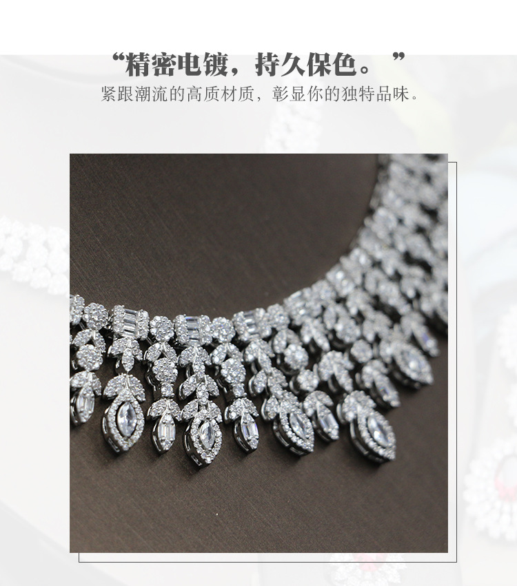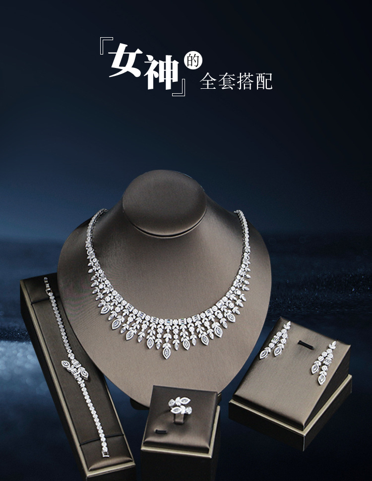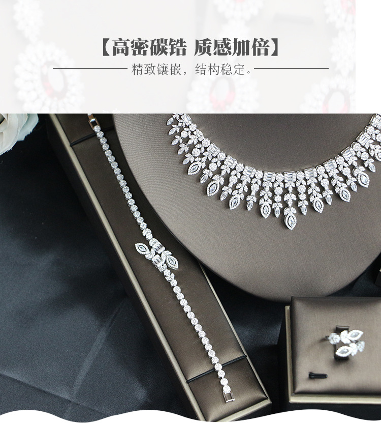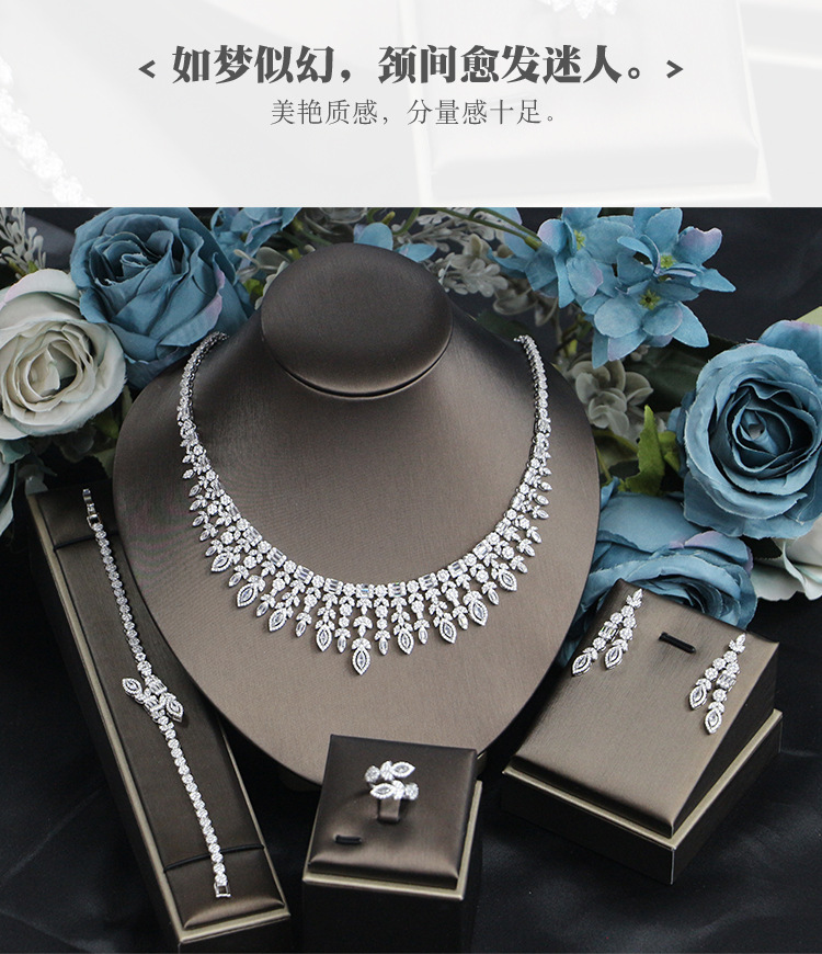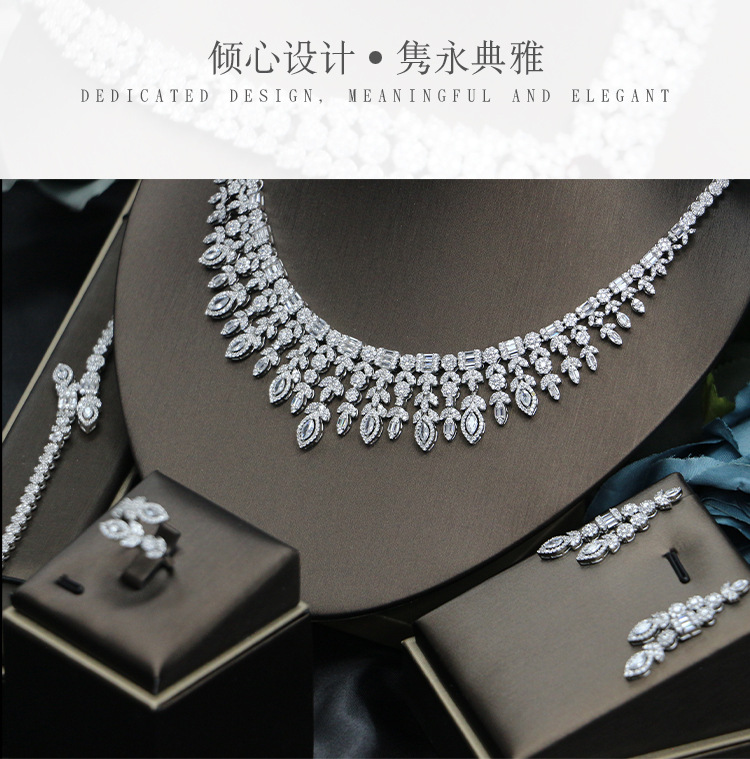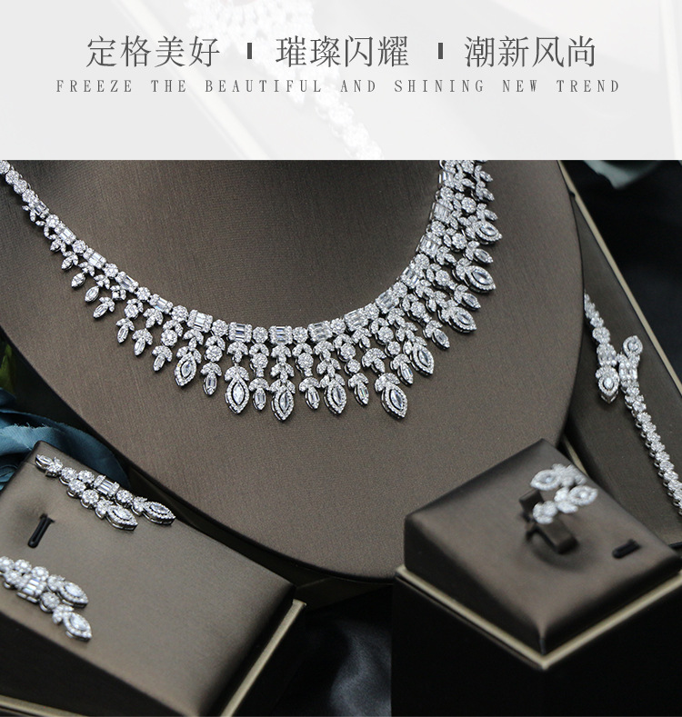 Middle East Dubai Wedding Wedding Accessories Necklace Bracelet Earrings Ring Chain Foreign Trade Shining Zircon Hot Selling Chain