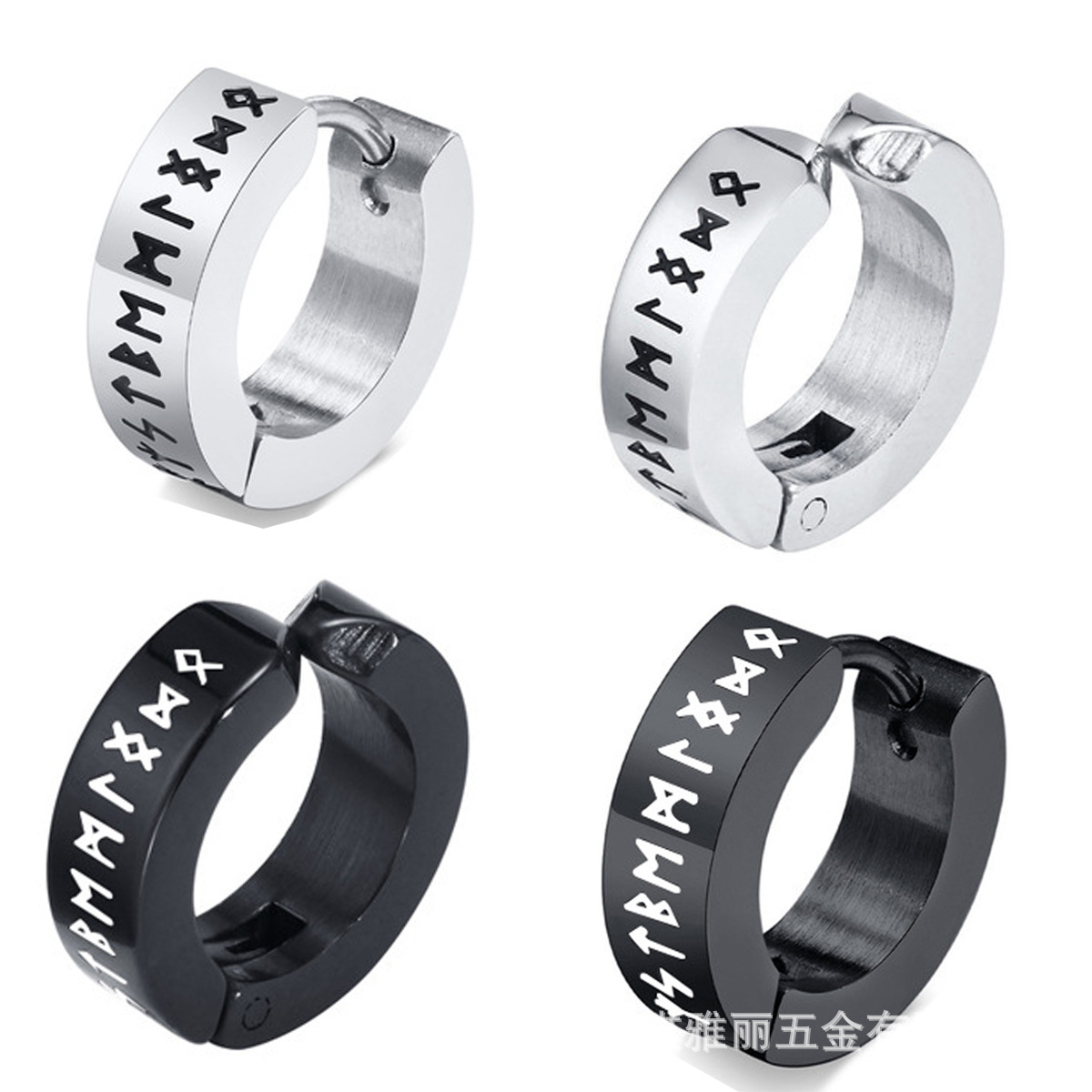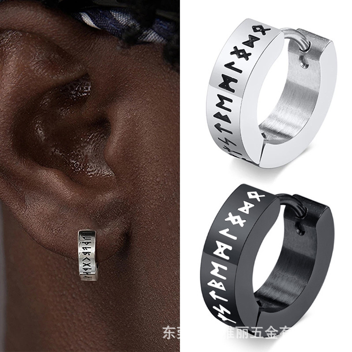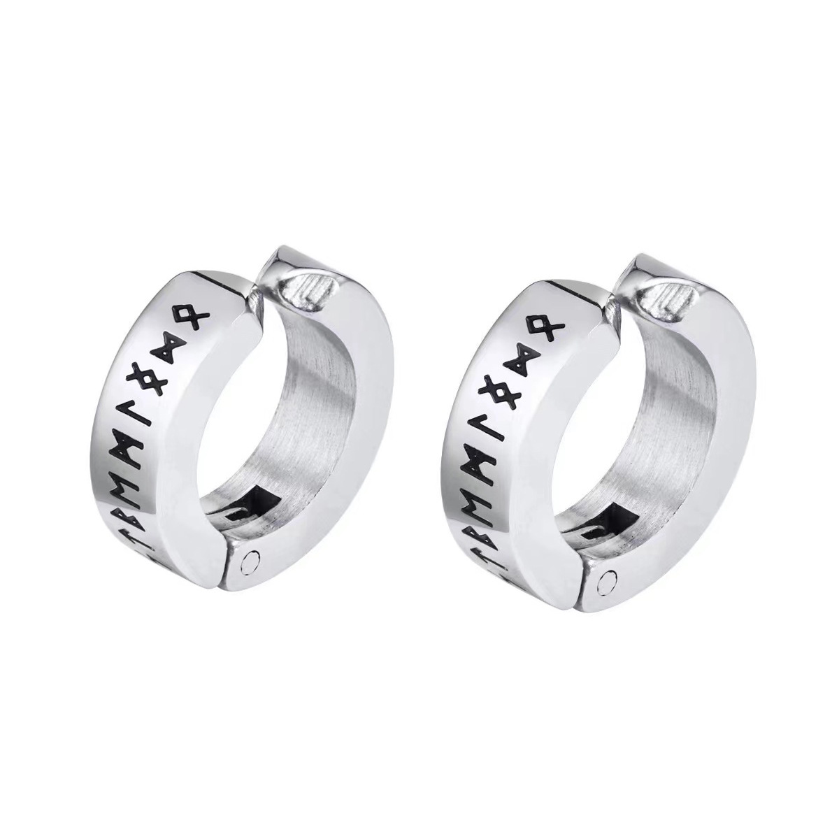 Cross-border European and American fashion personality corrosion Viking pattern titanium steel female ear ring ear buckle simple male punk earrings