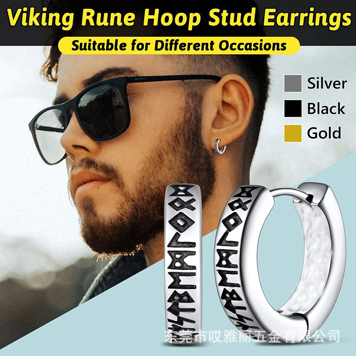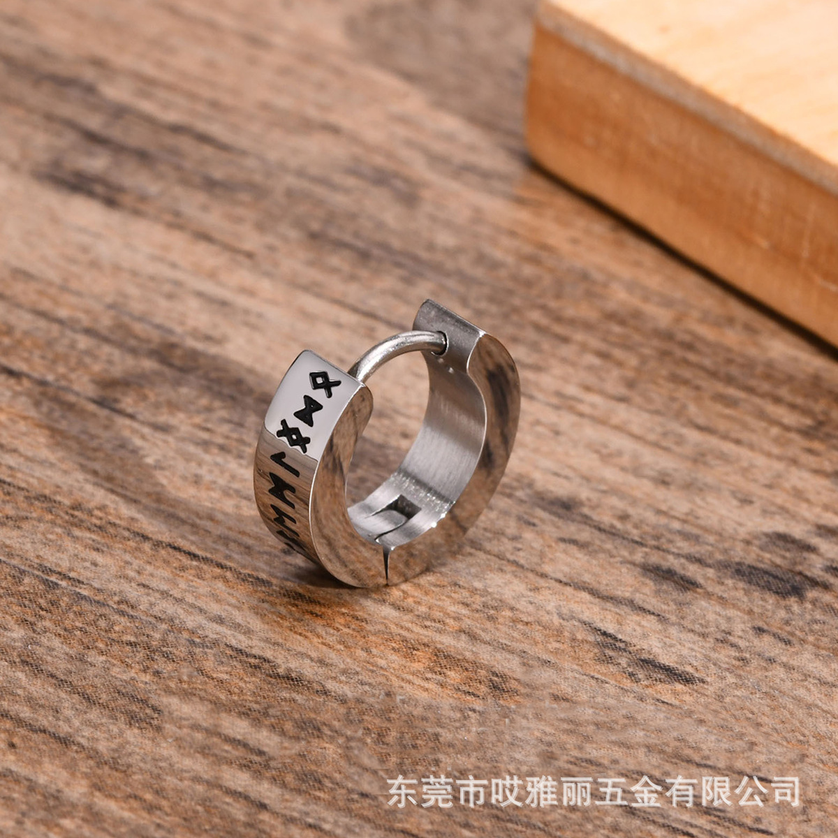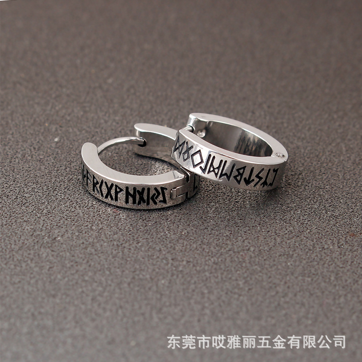 Cross-border European and American fashion personality corrosion Viking pattern titanium steel female ear ring ear buckle simple male punk earrings