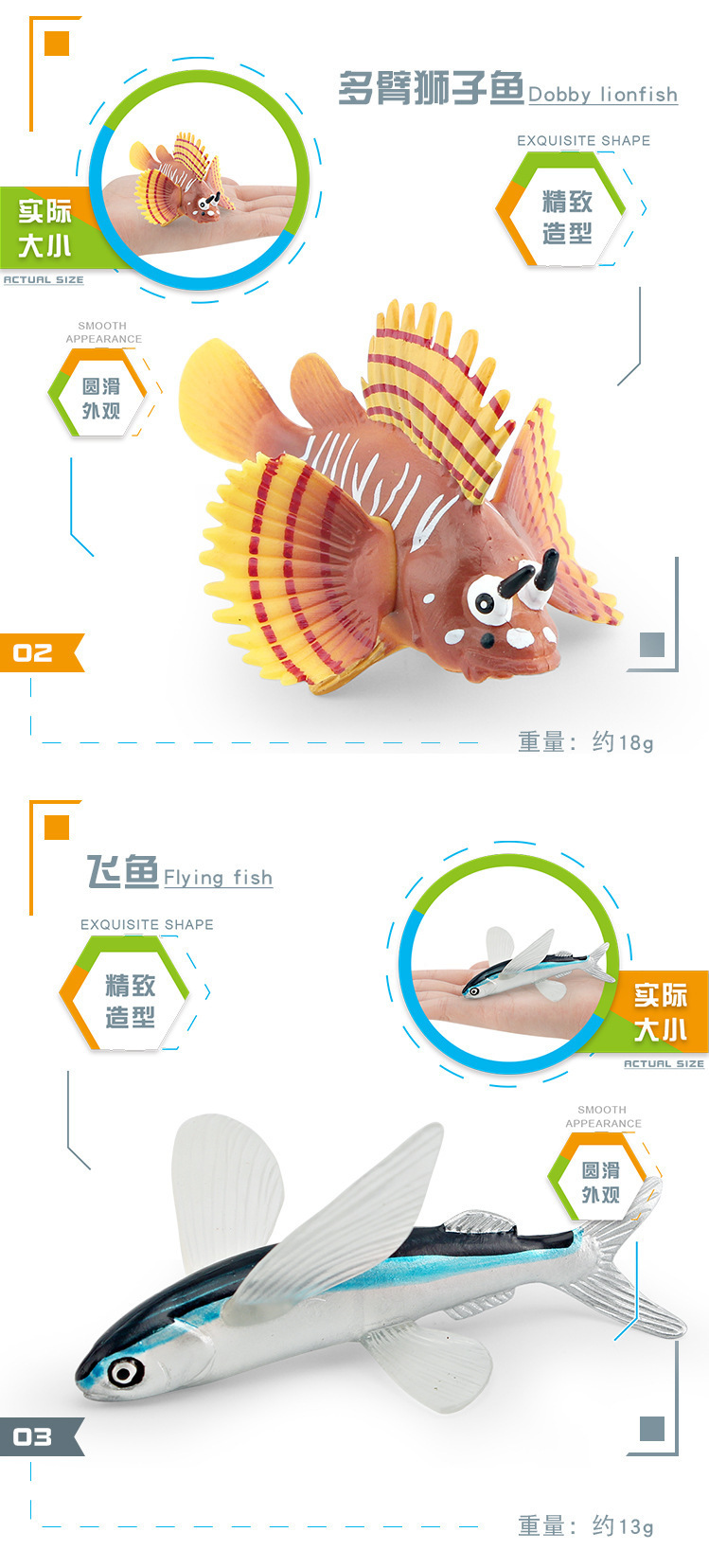 Simulation butterfly fish multi-arm lion fish narwhal yellow fin tuna saury marine animal model ornaments