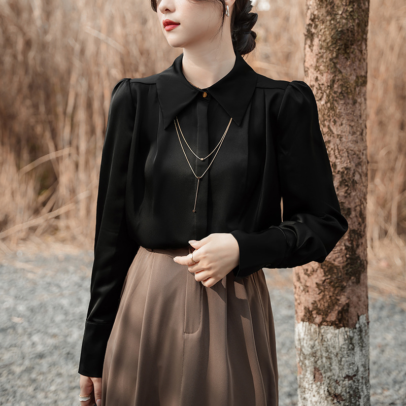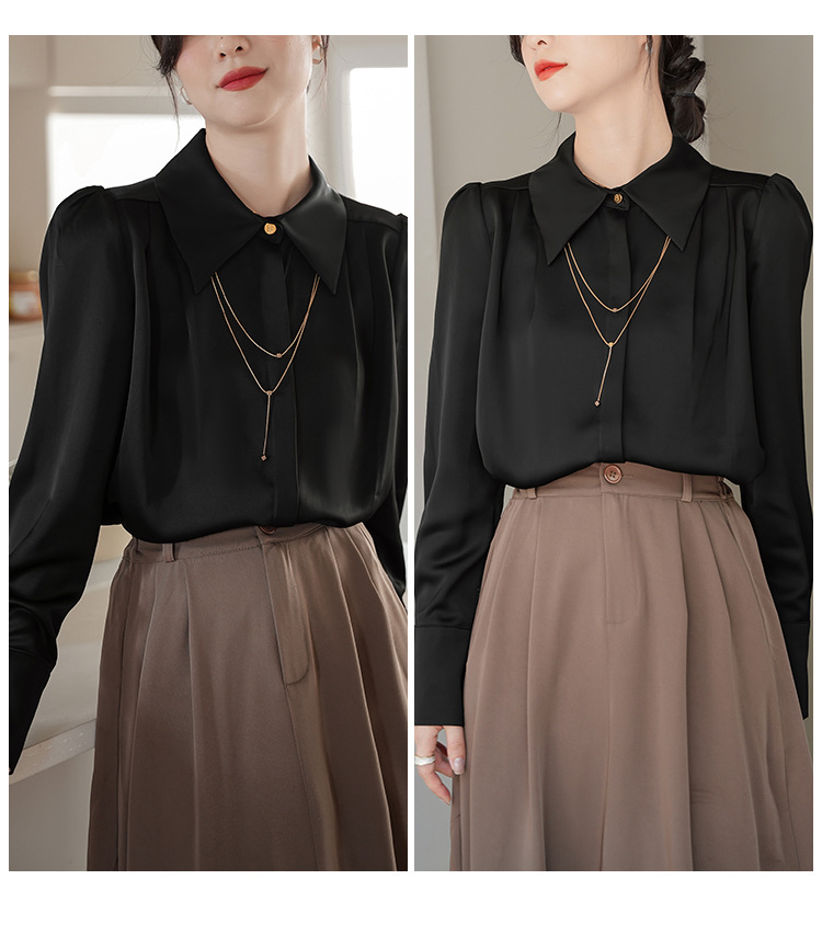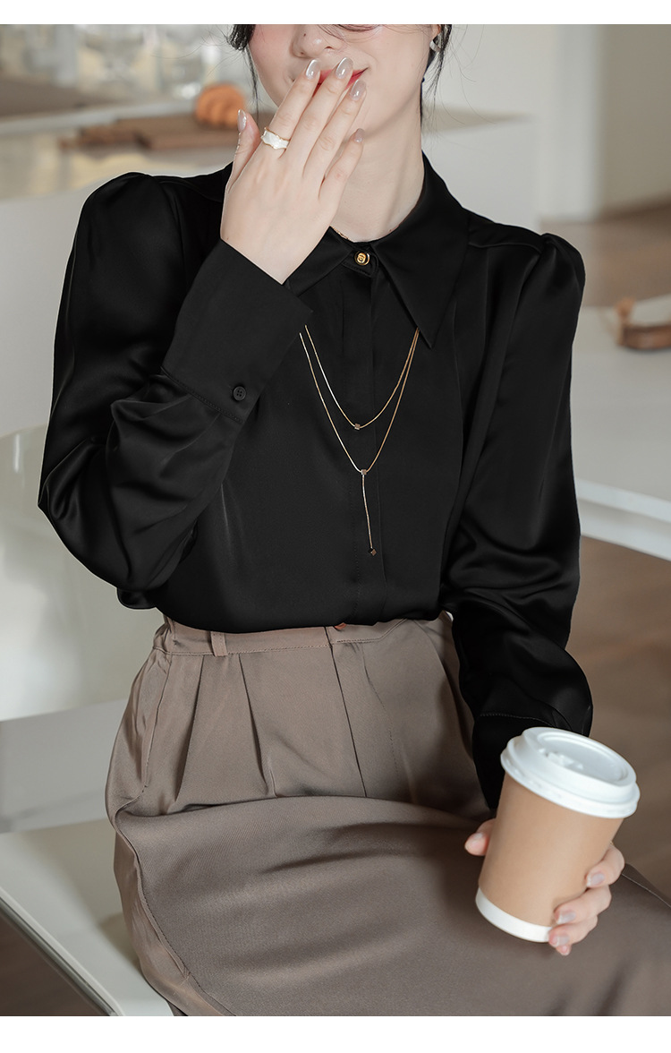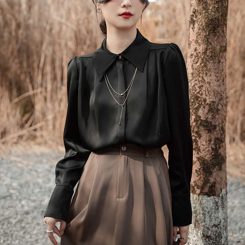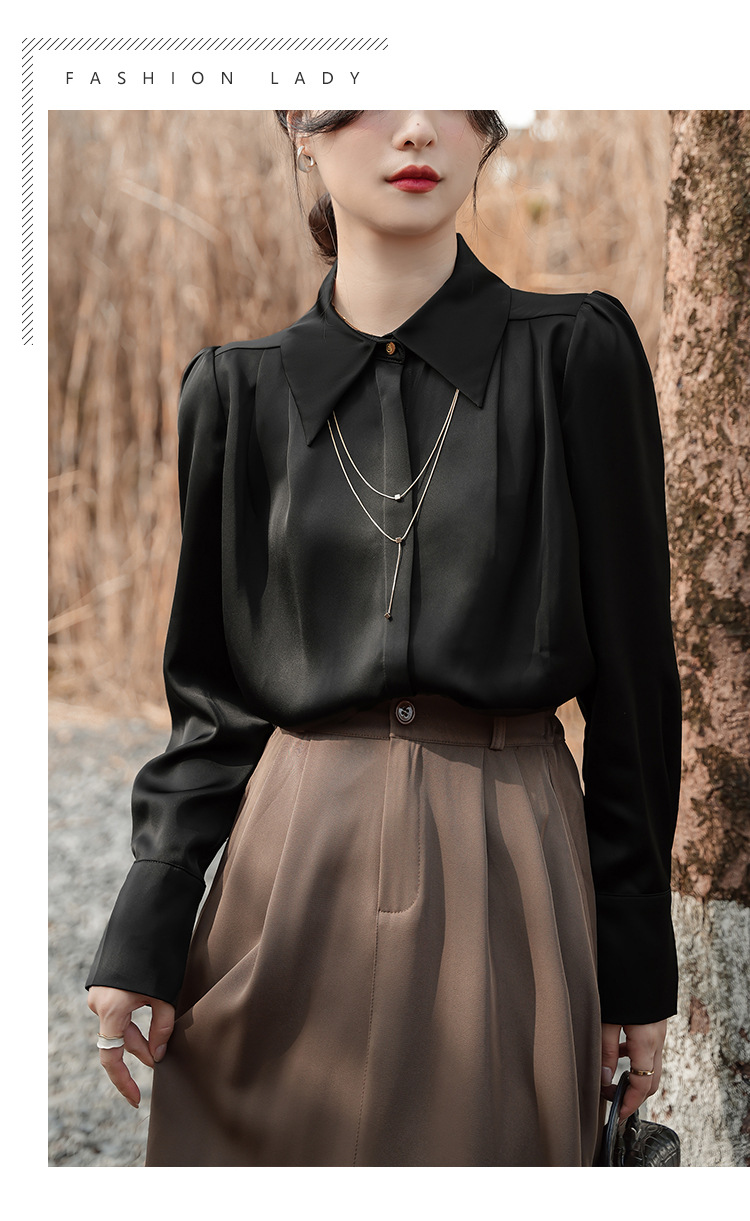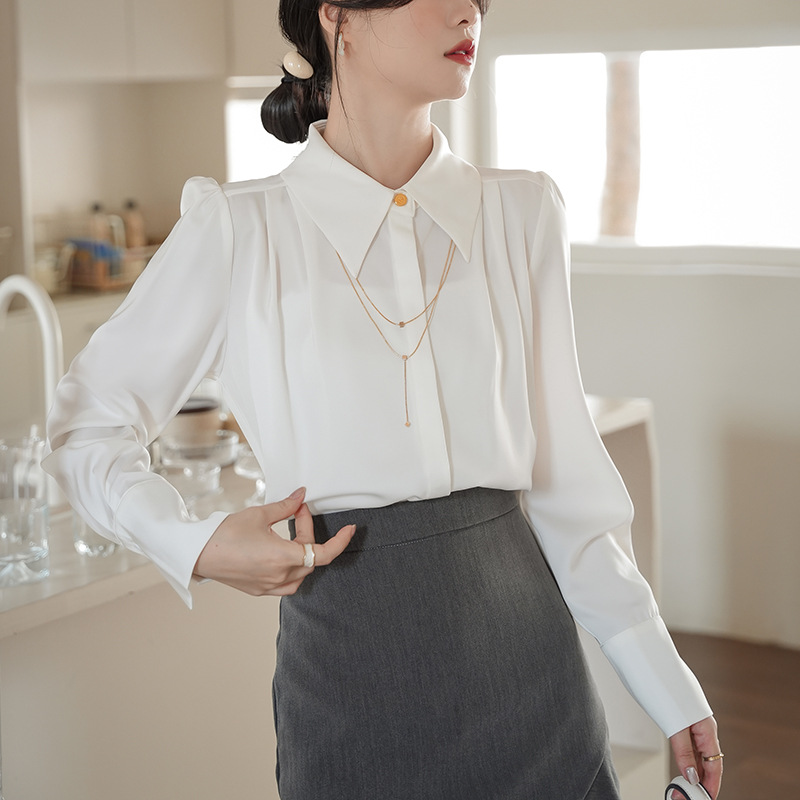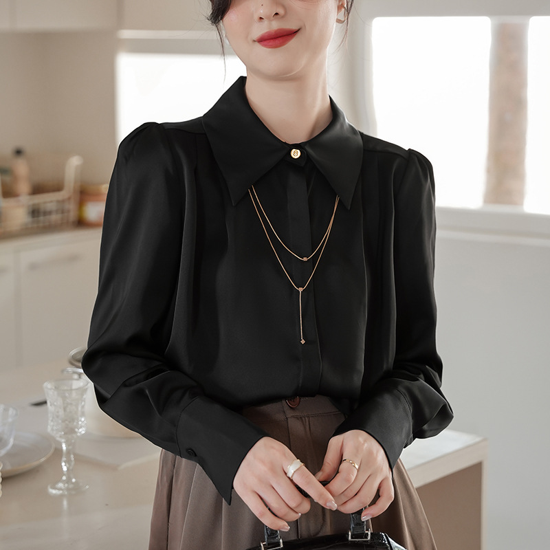 Carefully Selected High-Bottom Acetate Long-Sleeved Shirts with Necklaces 2025 French Simple Draped Professional Tops and Bottoming Shirts