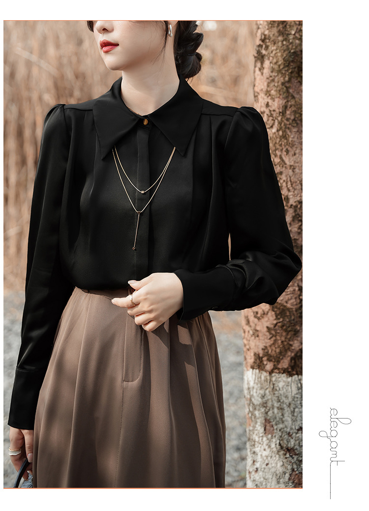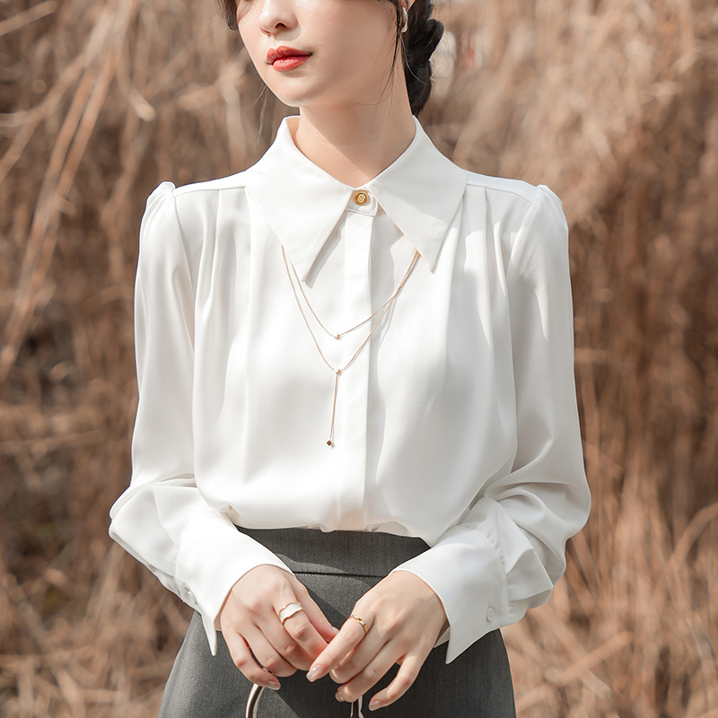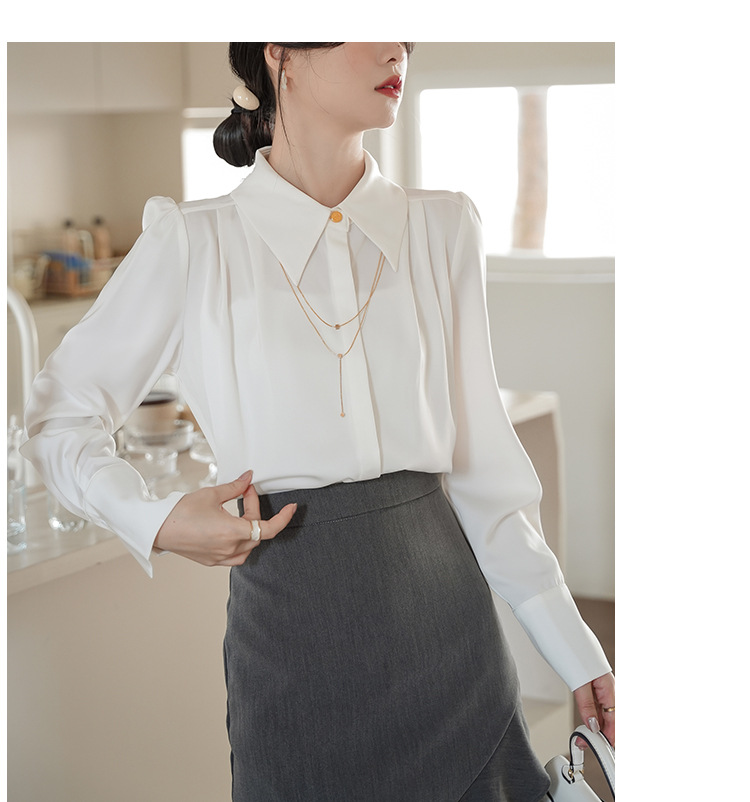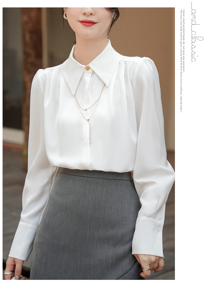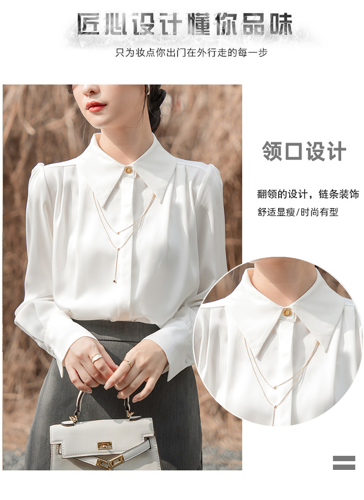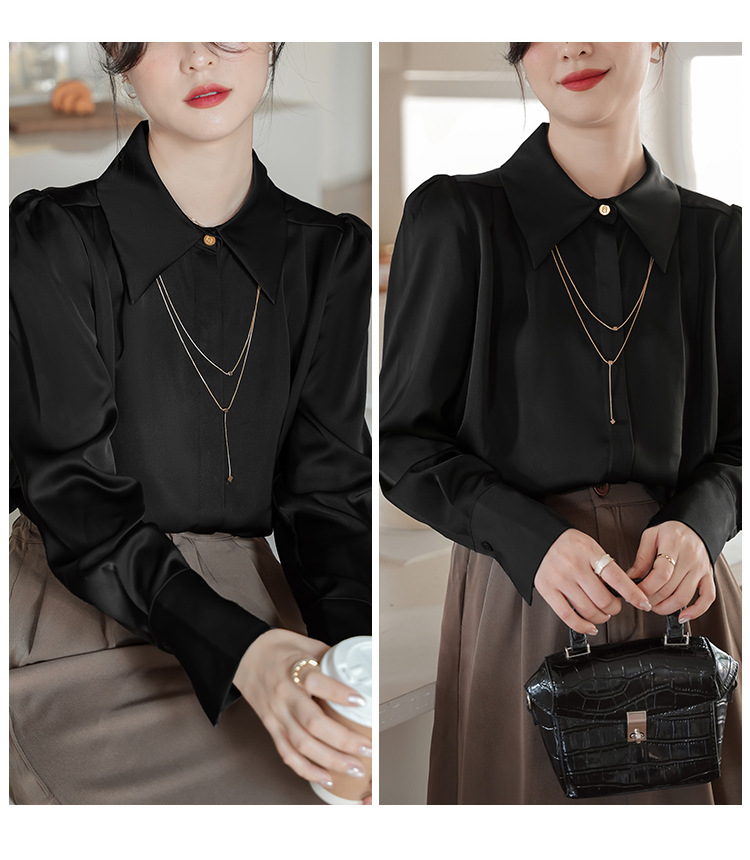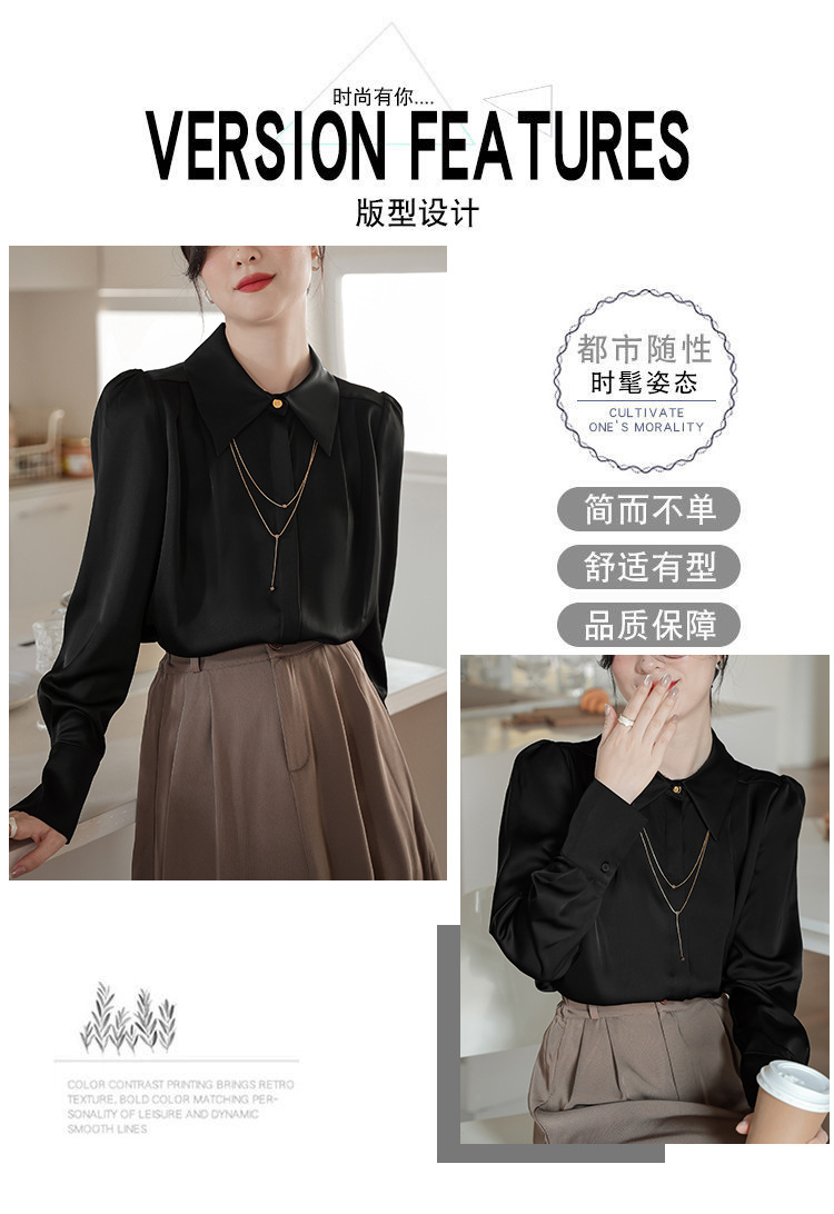 Carefully Selected High-Bottom Acetate Long-Sleeved Shirts with Necklaces 2025 French Simple Draped Professional Tops and Bottoming Shirts