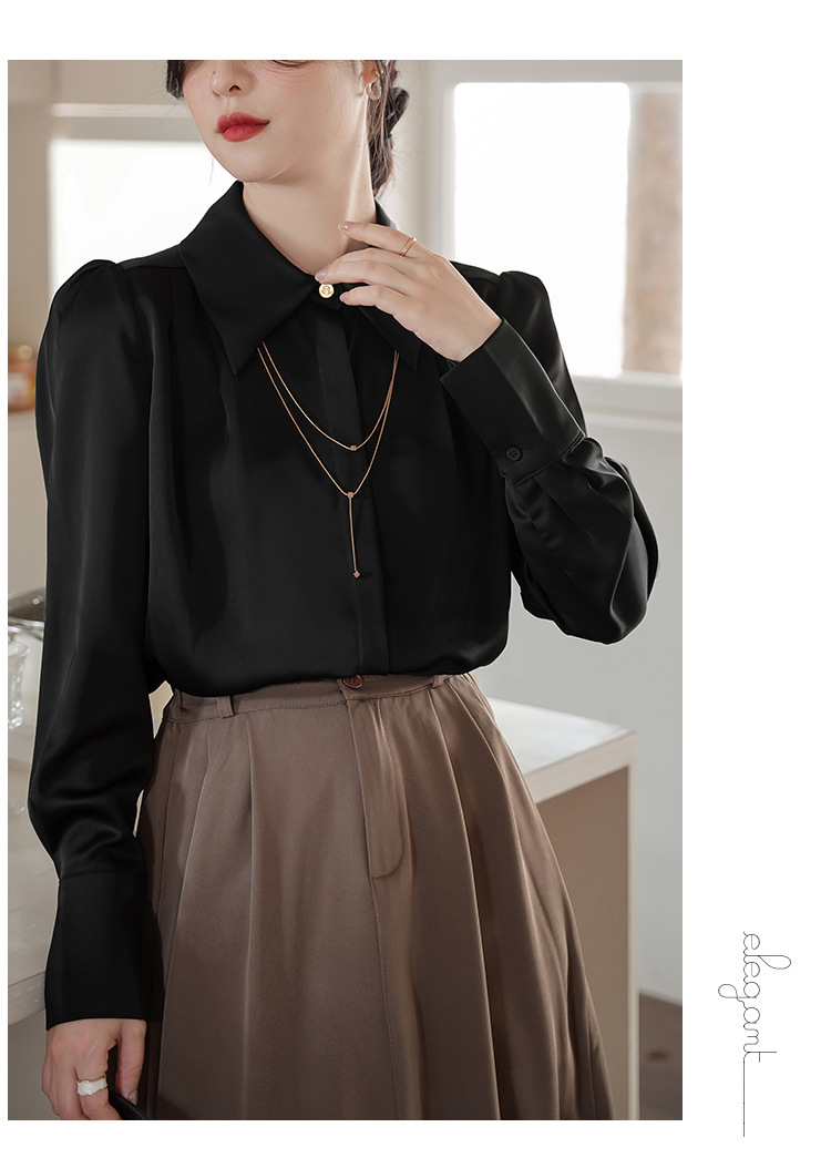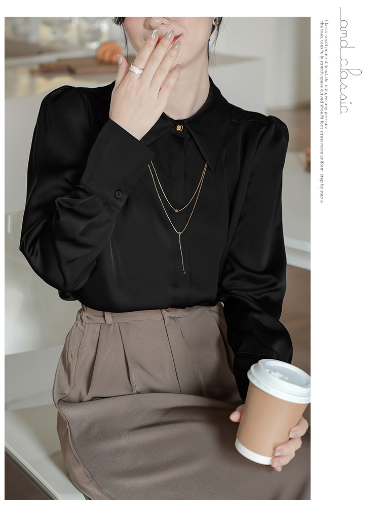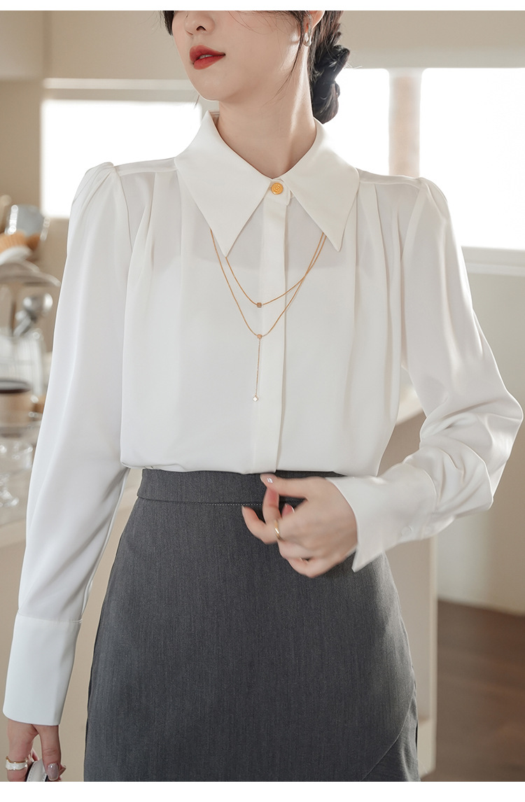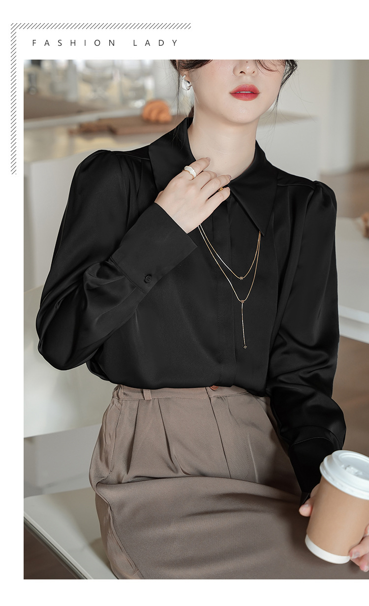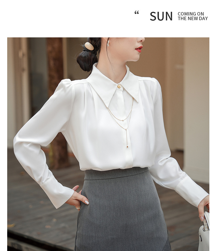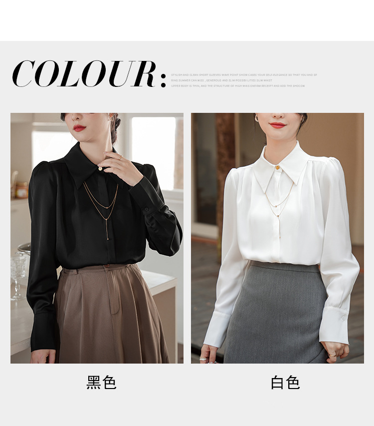 Carefully Selected High-Bottom Acetate Long-Sleeved Shirts with Necklaces 2025 French Simple Draped Professional Tops and Bottoming Shirts