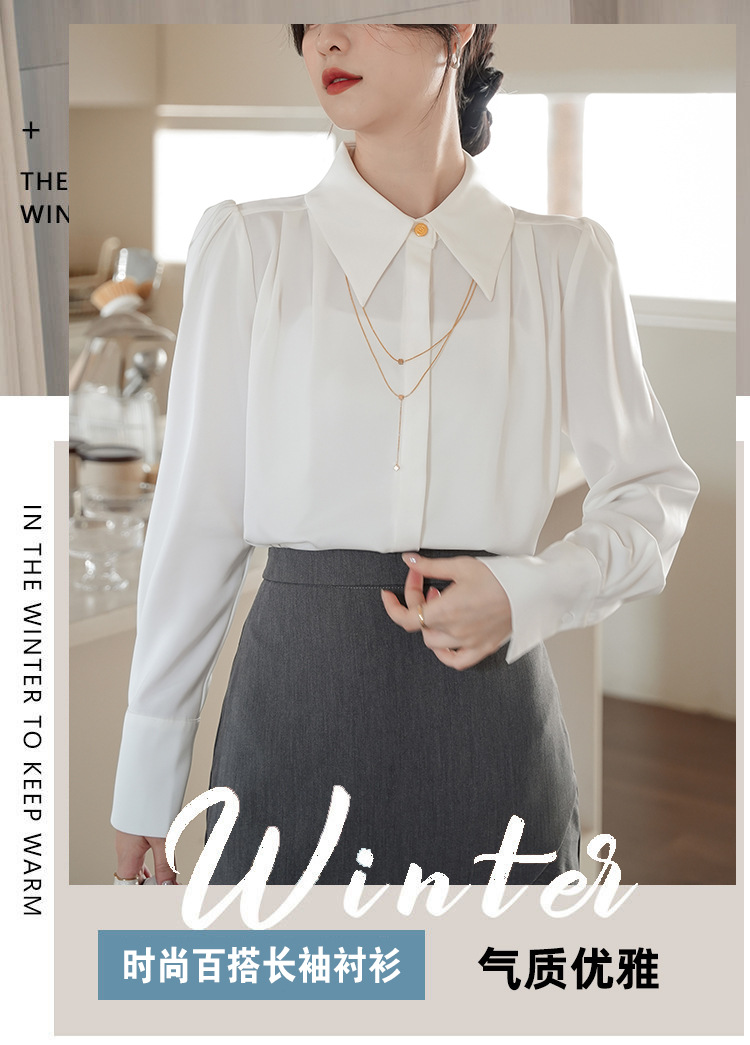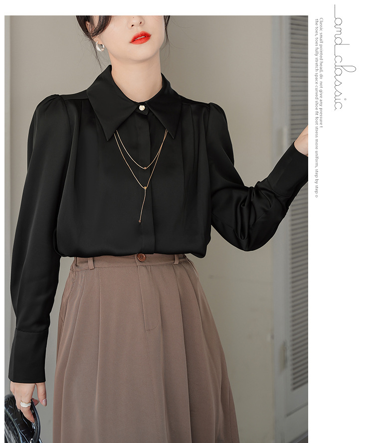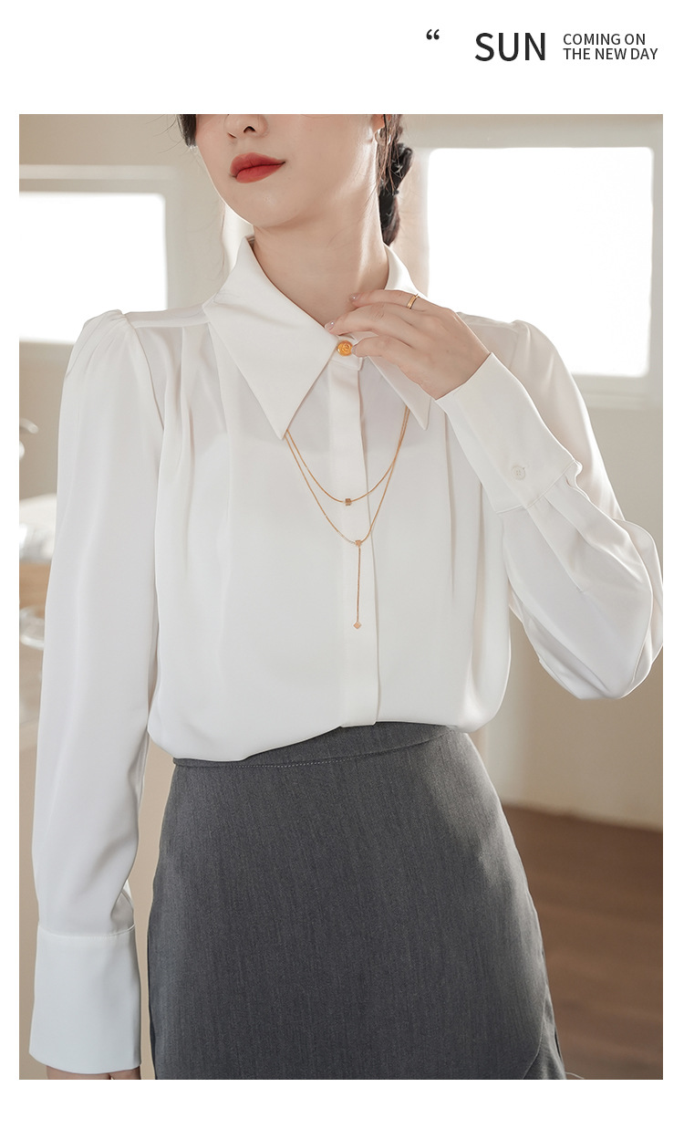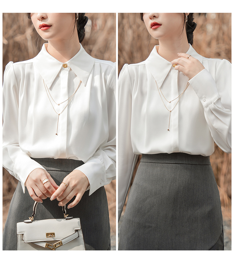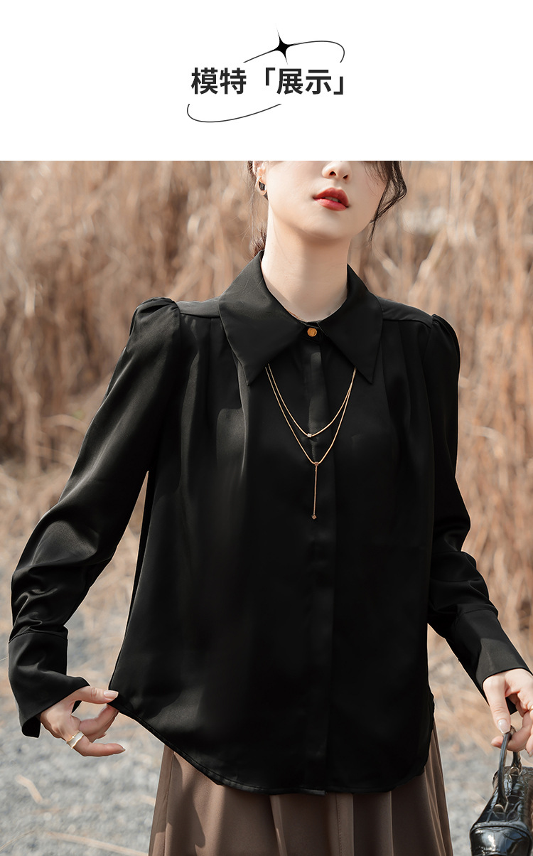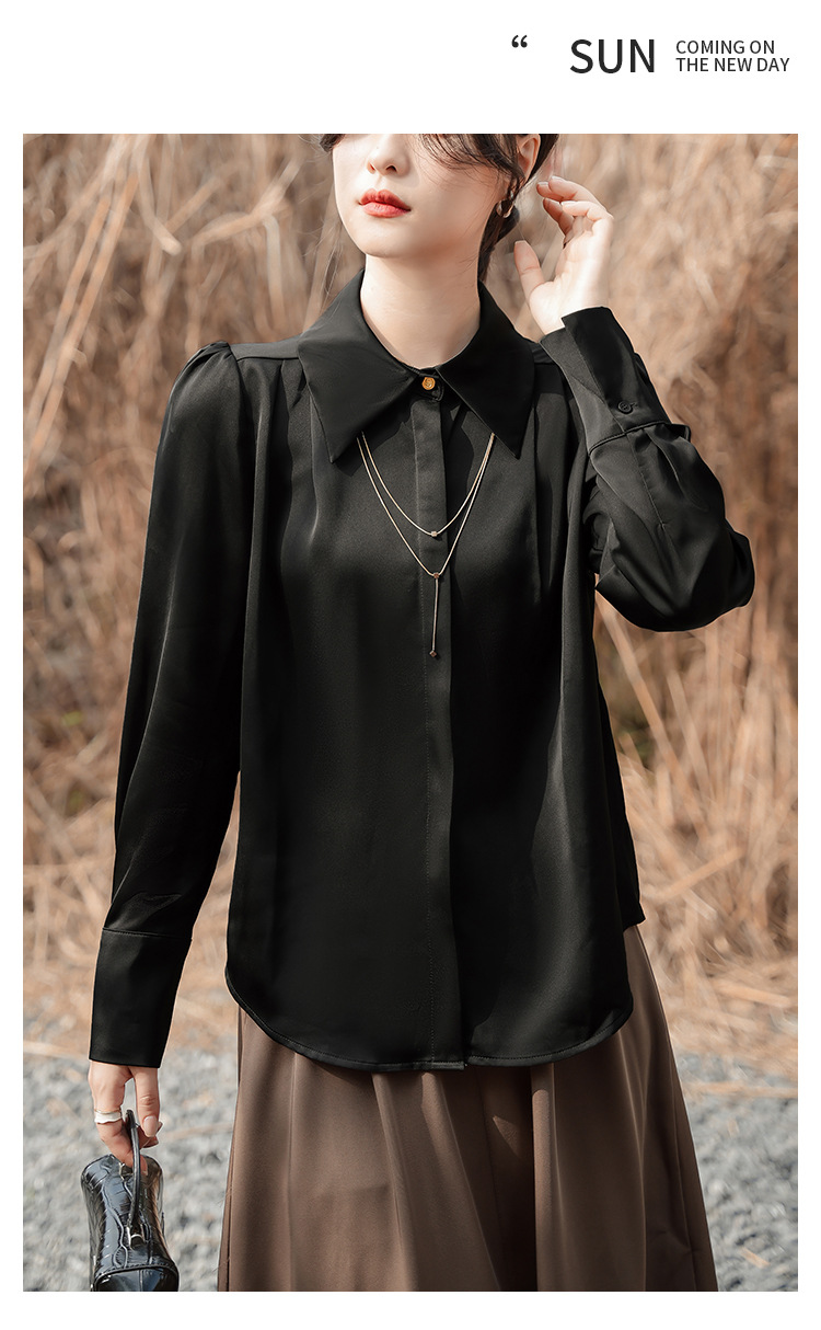 Carefully Selected High-Bottom Acetate Long-Sleeved Shirts with Necklaces 2025 French Simple Draped Professional Tops and Bottoming Shirts