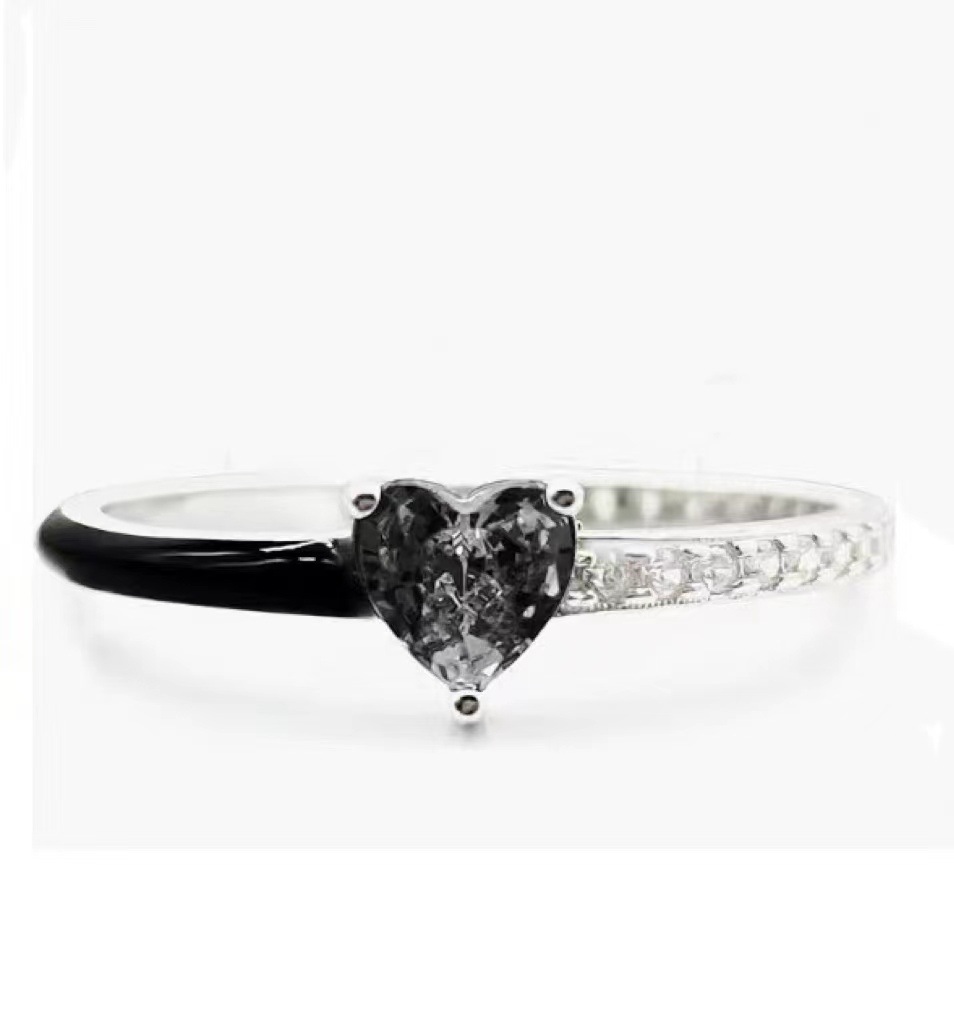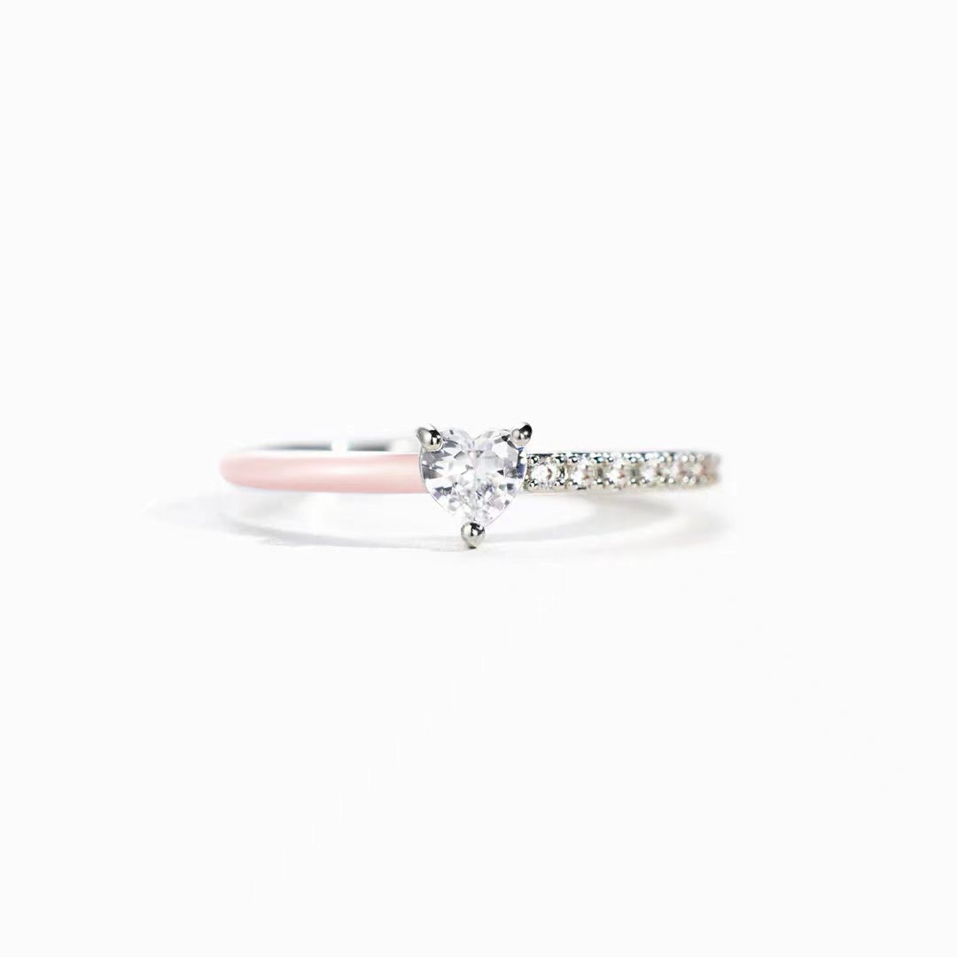 Cross-border Amazon hot selling zircon Heart-shaped ring zircon cut enamel ring female open European and American style bracelet