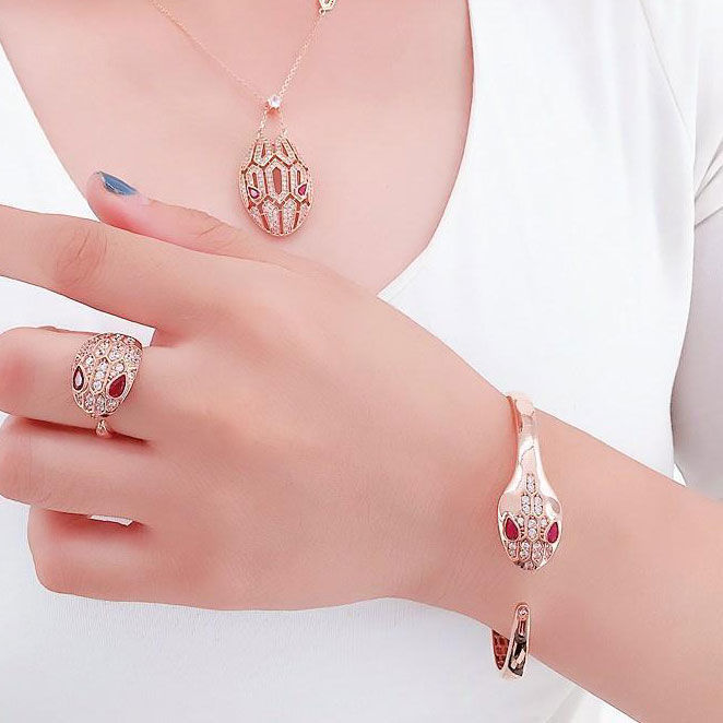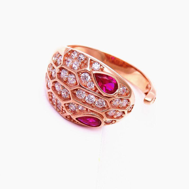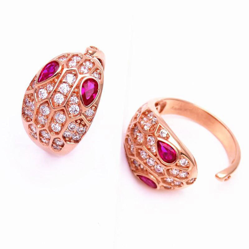 Xingfu Ao Russian Purple Gold Snake Red Stone Ring Luxury Temperament Luxury Color Gold Rose Gold Plated Live Mouth Ring