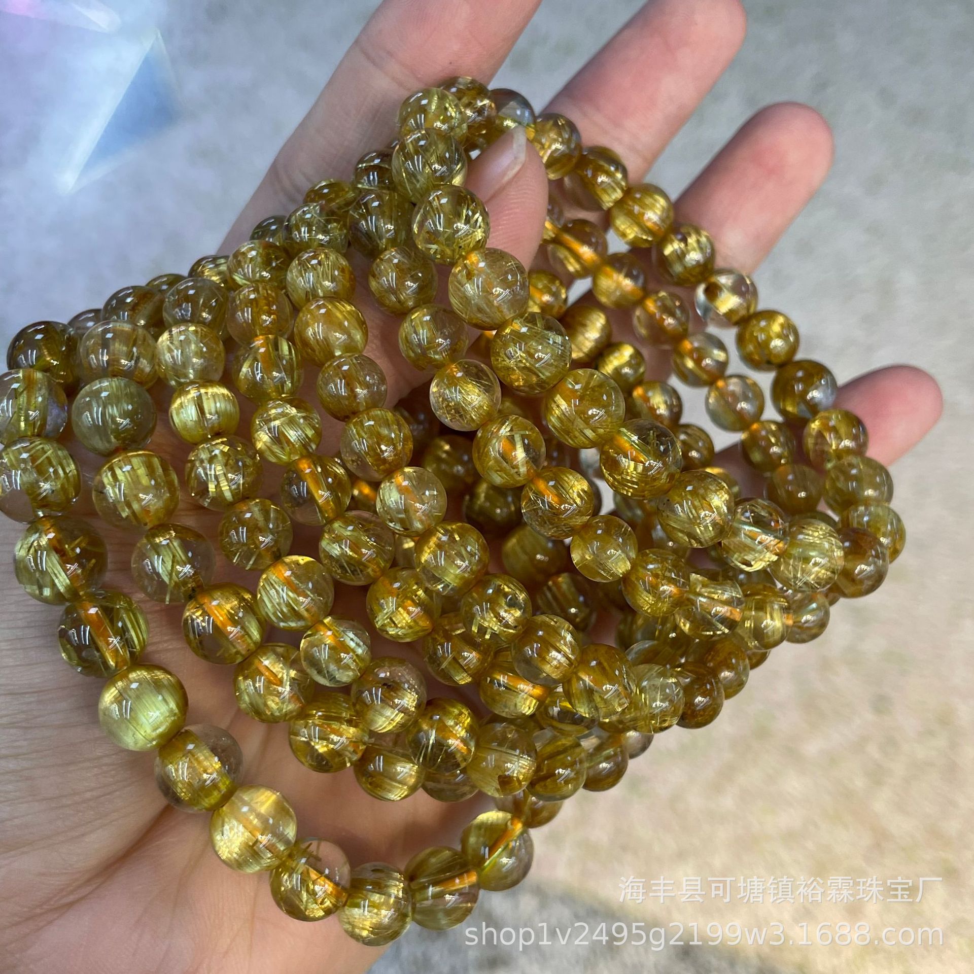 Natural Gold Titanium Crystal Bracelet, Plate Titanium, Clear and Obvious Hair, Gold Sparkling Titanium Crystal Factory Direct Wholesale