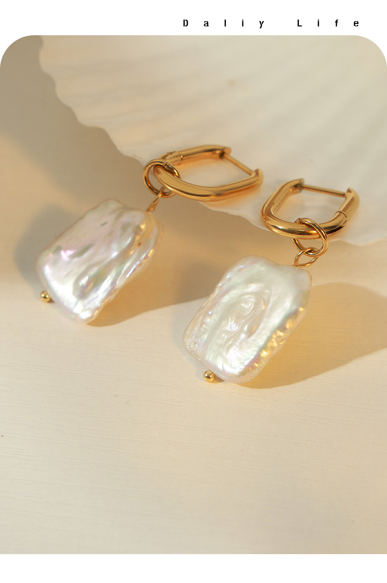 Europe and the United States cross-border new retro light luxury personality titanium steel gold-plated irregular freshwater pearl earrings women's jewelry wholesale