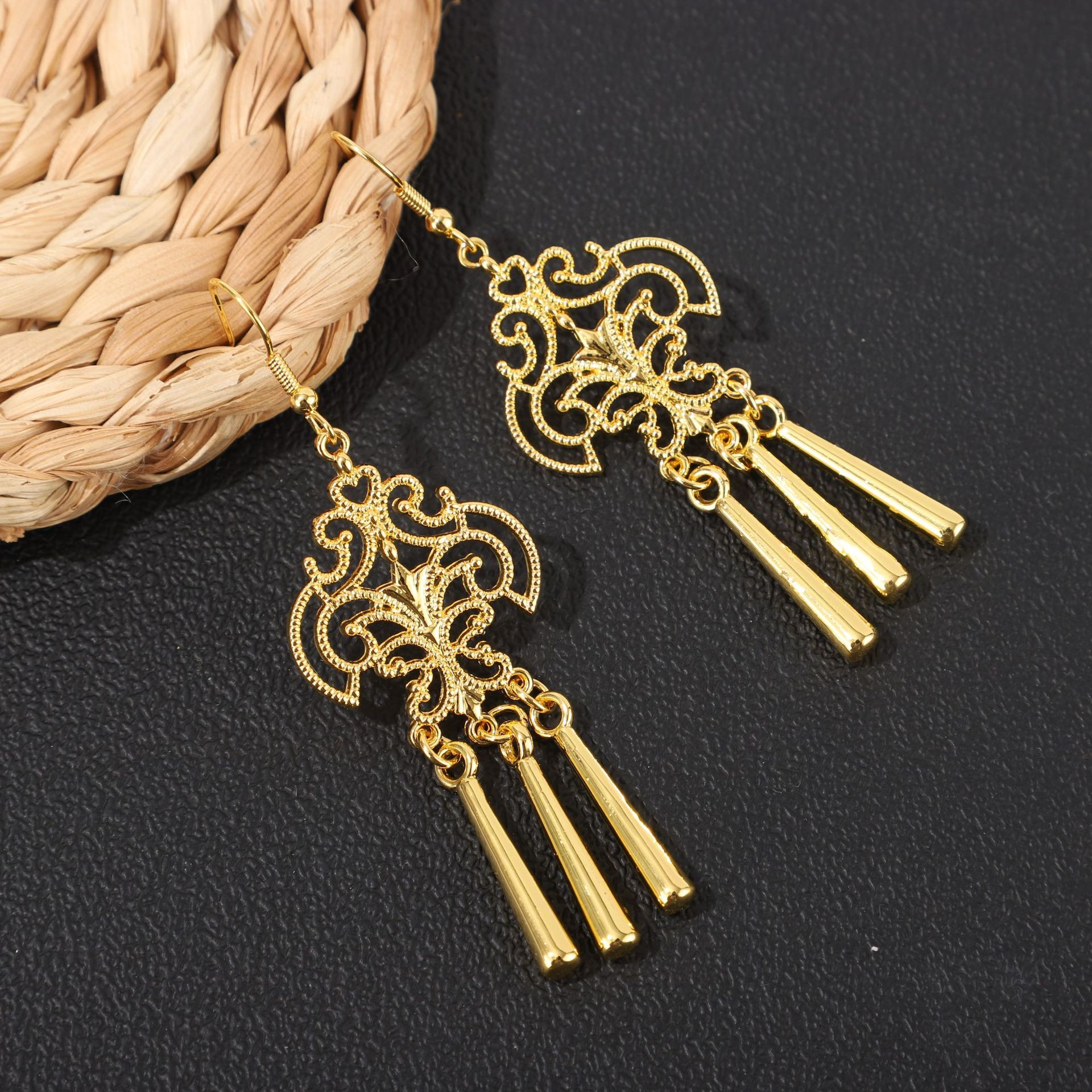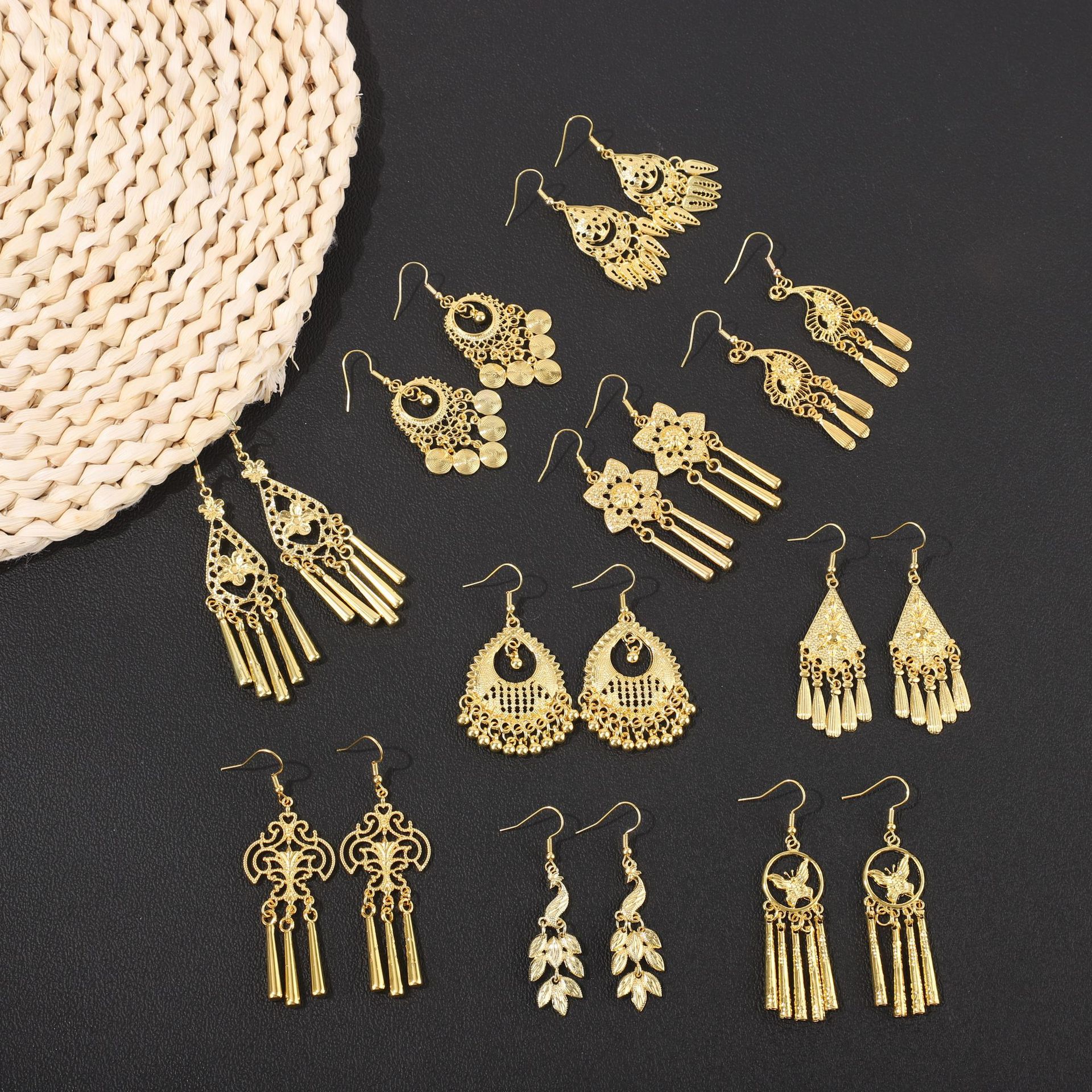 Golden Bell Tassel Earrings Bohemian Leaf Pendant National Scenic Earrings Peacock Earrings Wholesale