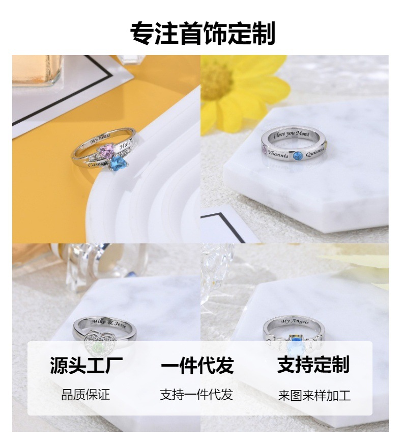 Custom lettering ring 925 sterling silver lettering inlay birthday stone ring women's European and American fashion cross-border jewelry jewelry