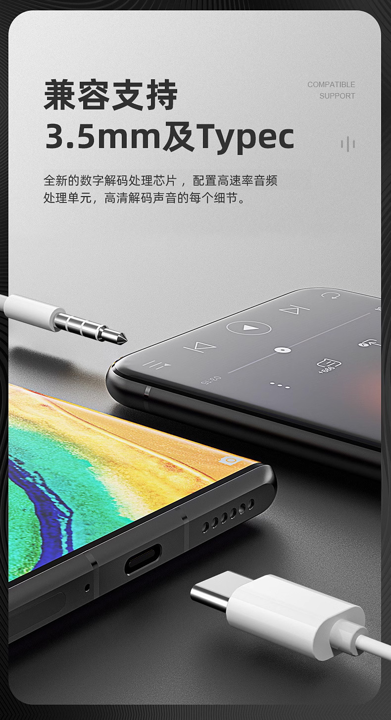 3.5MM mobile phone headphones: type-C wired mobile phone headphones