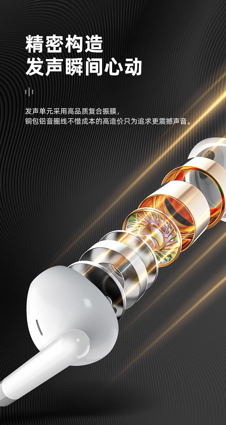 S51 headphones 3.5mm interface [copper ring crystal box]