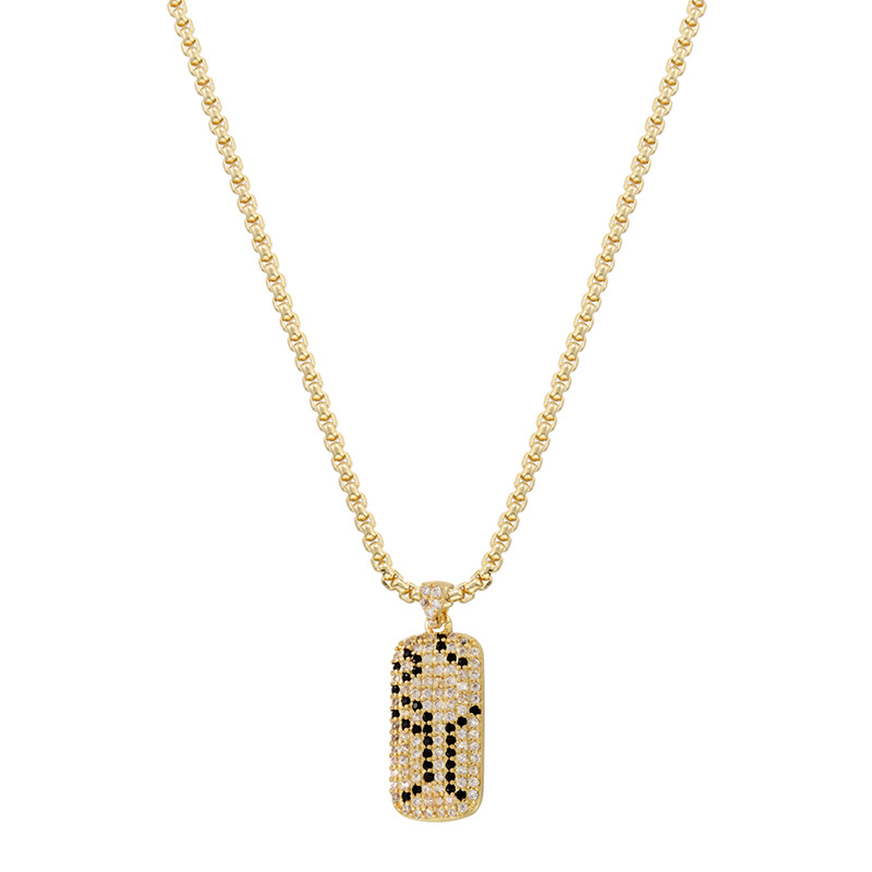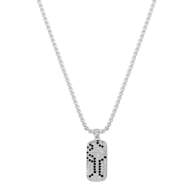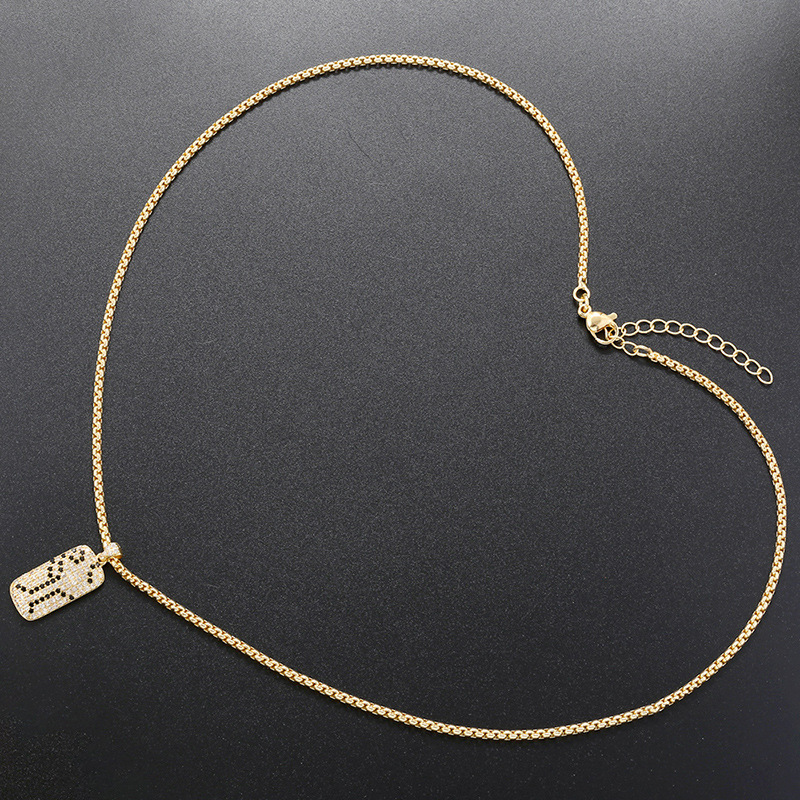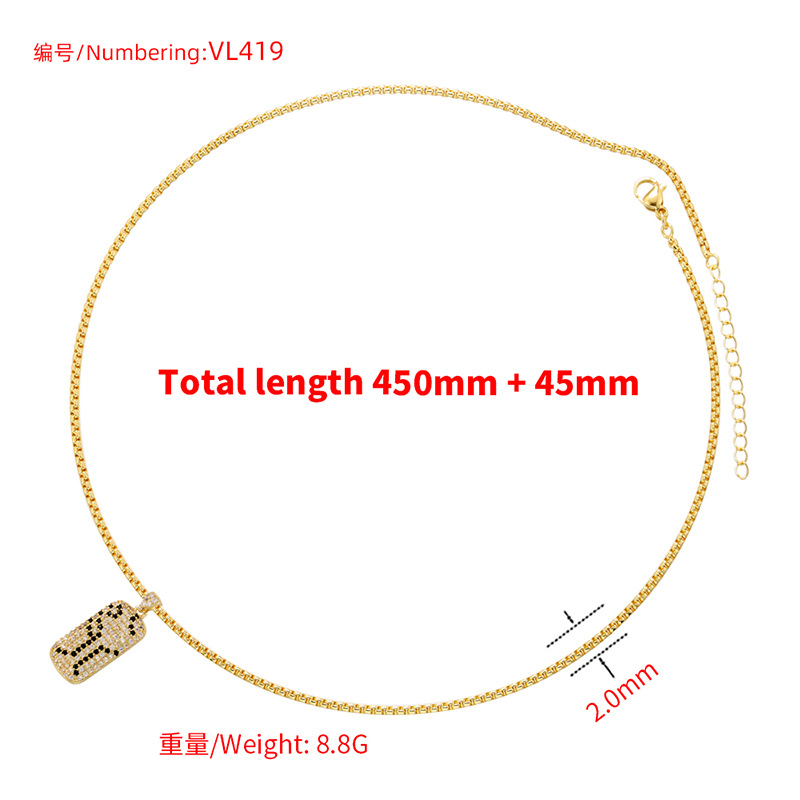 Personalized Street Copper Inlaid Zirconium Long Necklace Hip-Hop Rap Square Pendant Snake Pattern Leopard Print Clavicle Chain Vl419