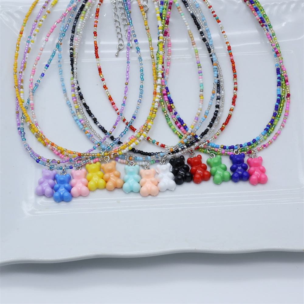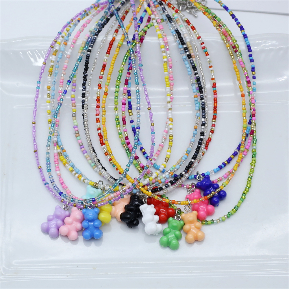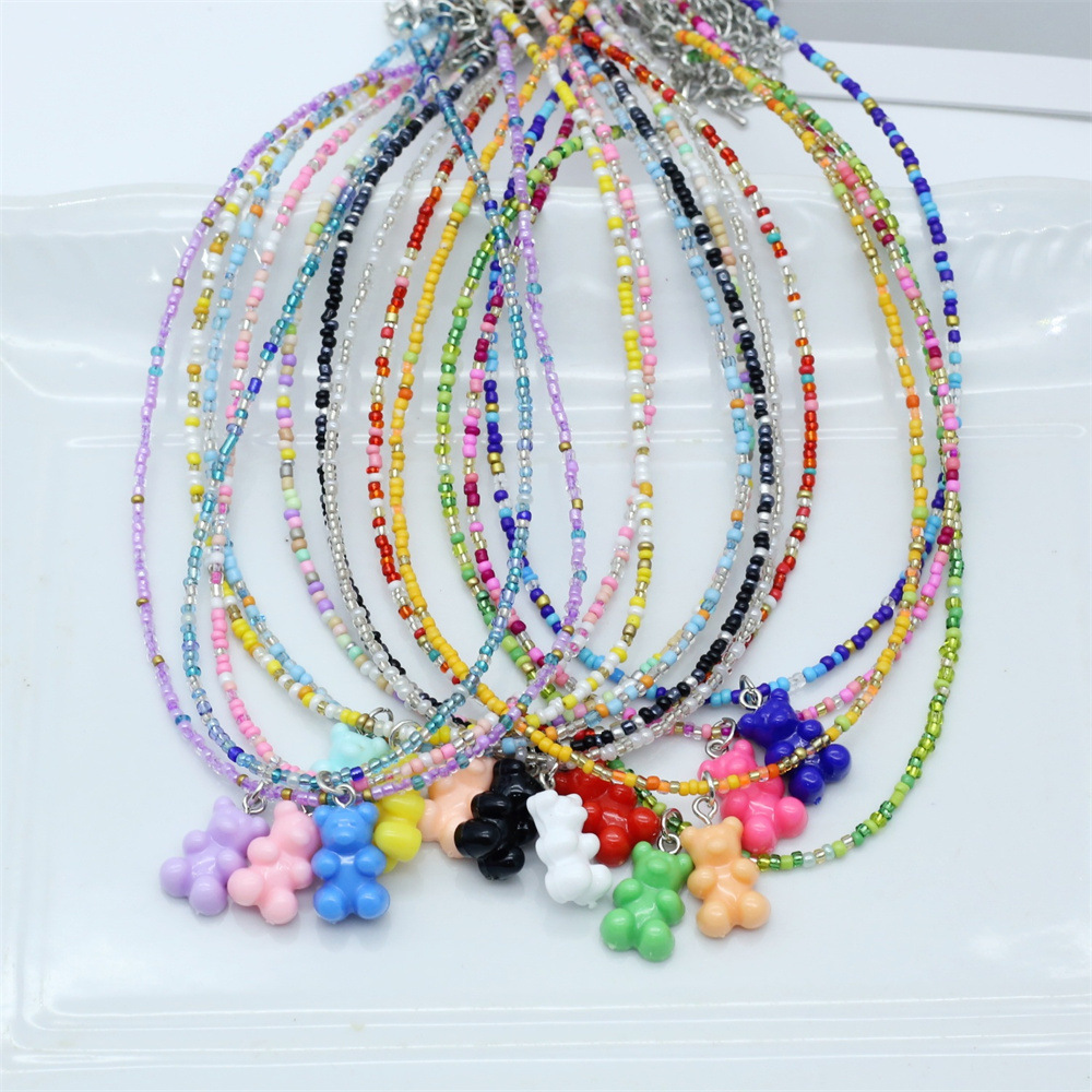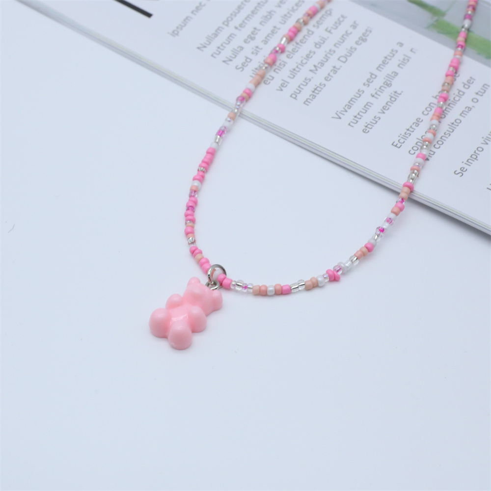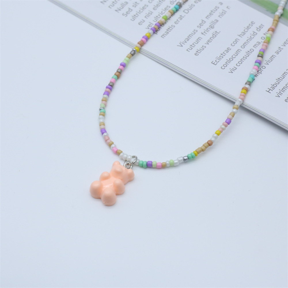 Dopamine Korean style ins cute bear rice beads necklace colorful beaded necklace bohemian pendant wholesale