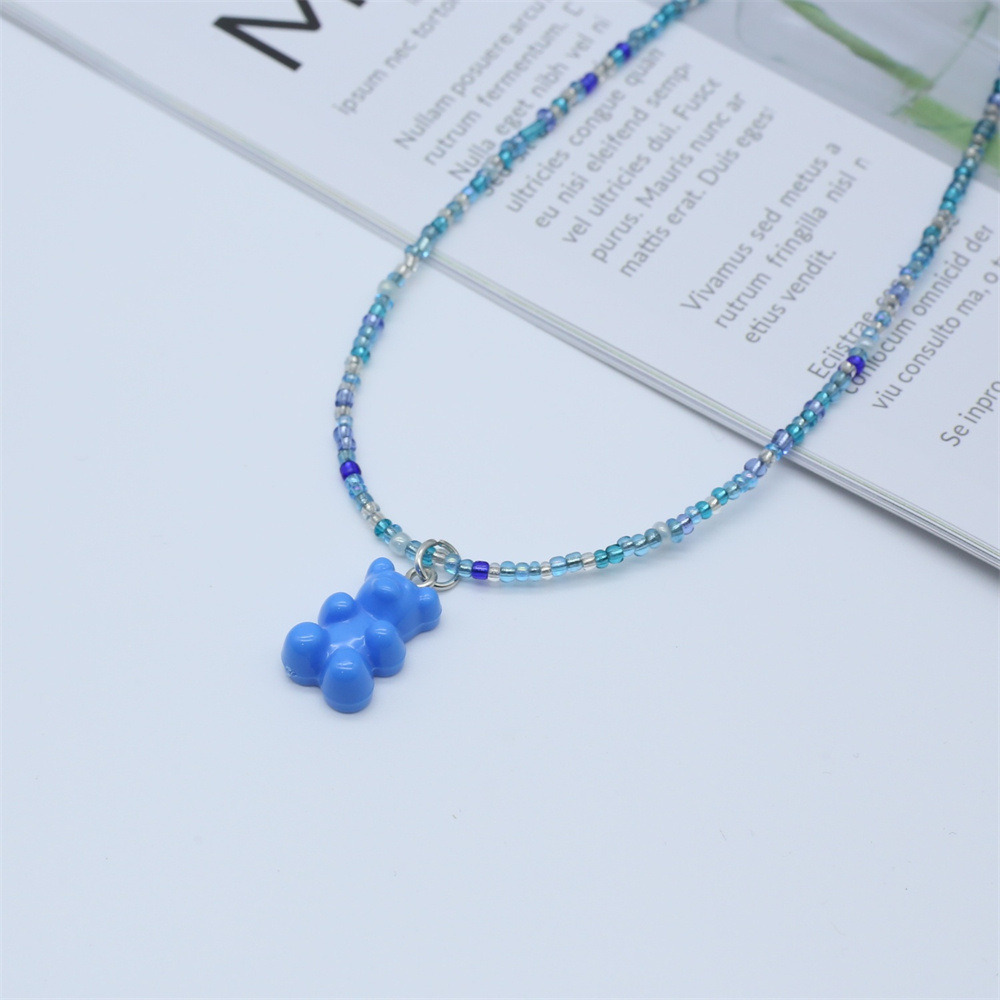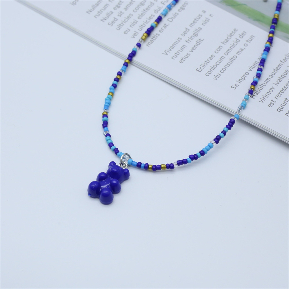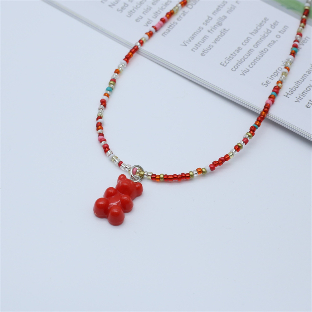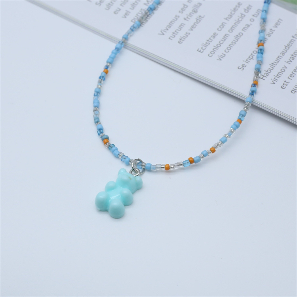 Dopamine Korean style ins cute bear rice beads necklace colorful beaded necklace bohemian pendant wholesale