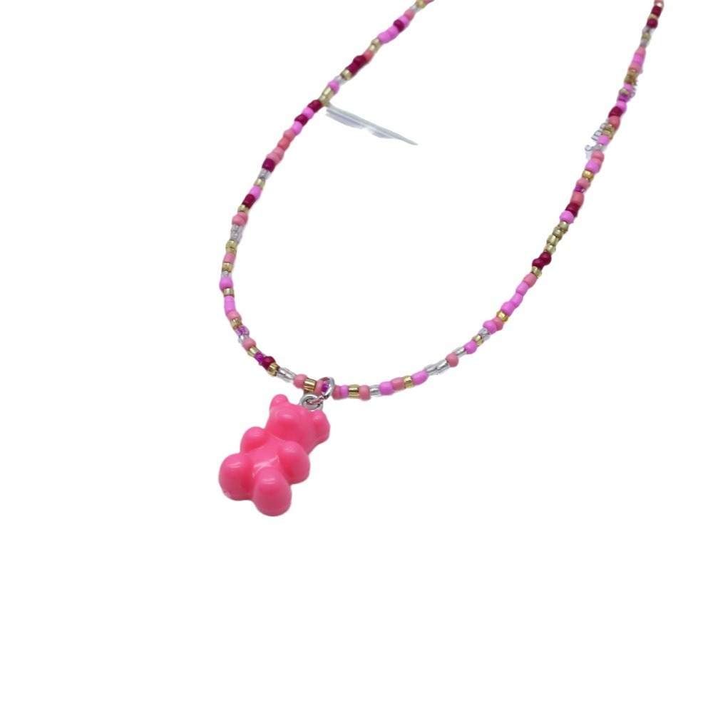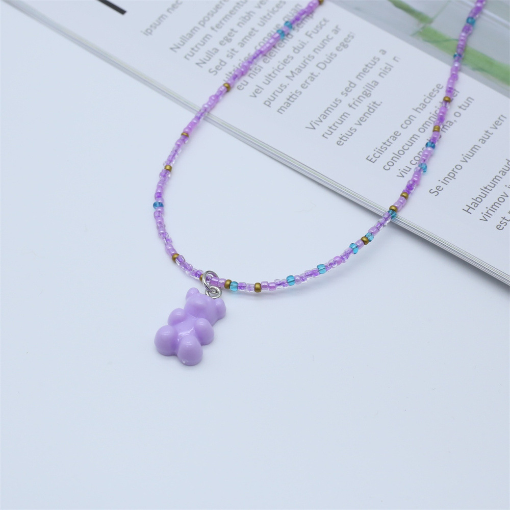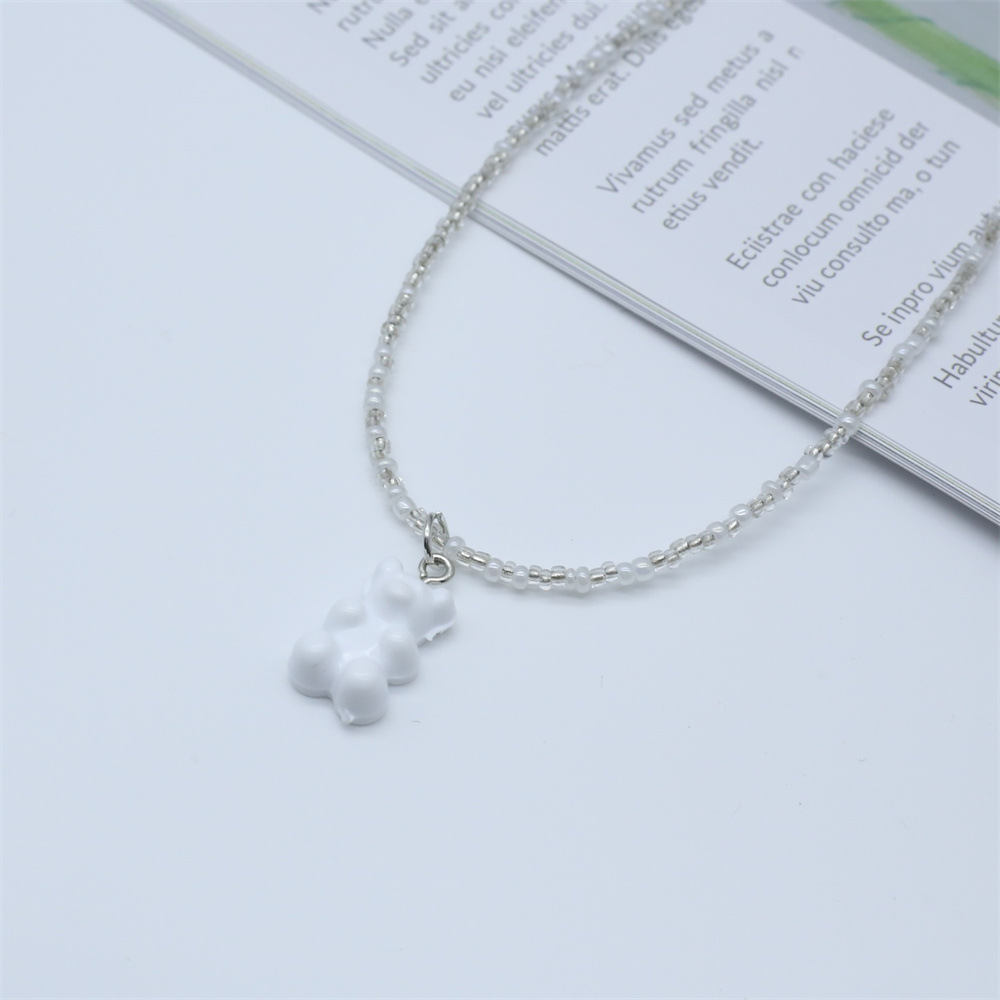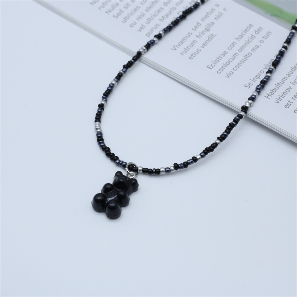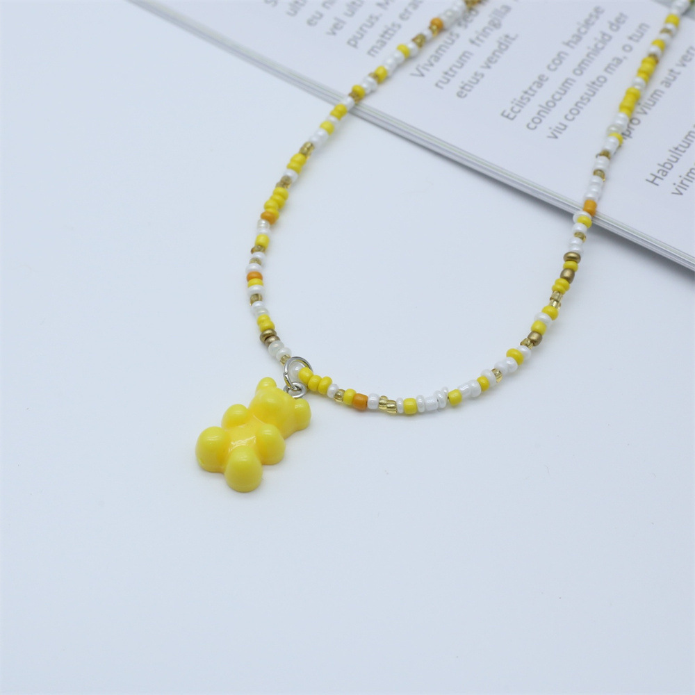 Dopamine Korean style ins cute bear rice beads necklace colorful beaded necklace bohemian pendant wholesale