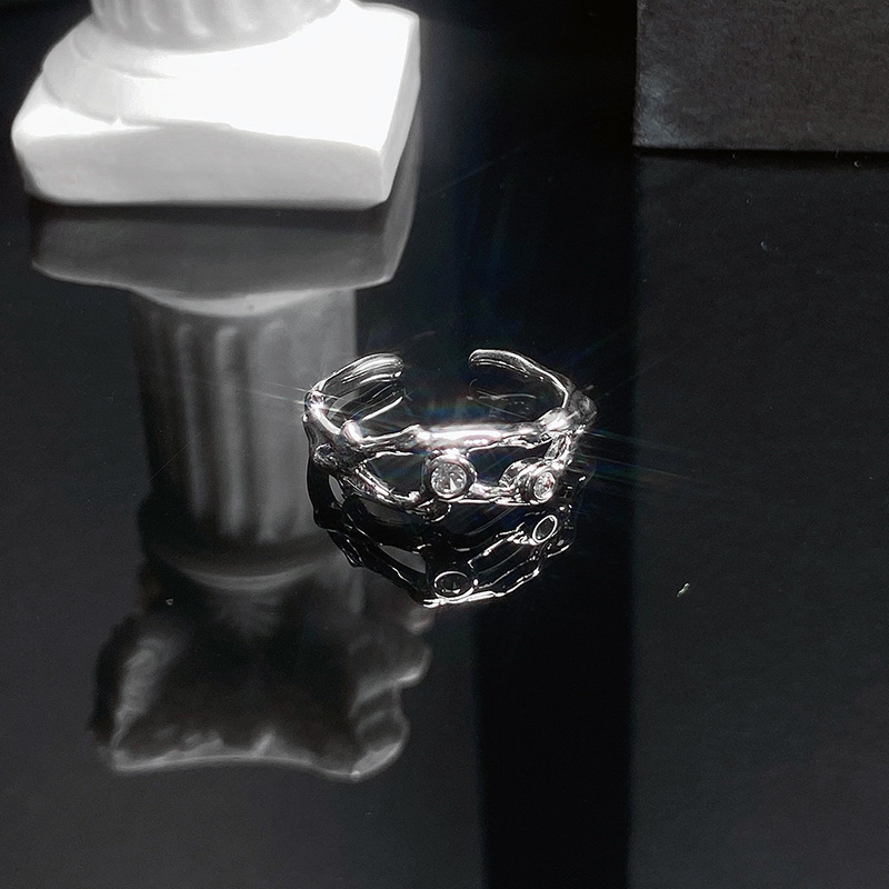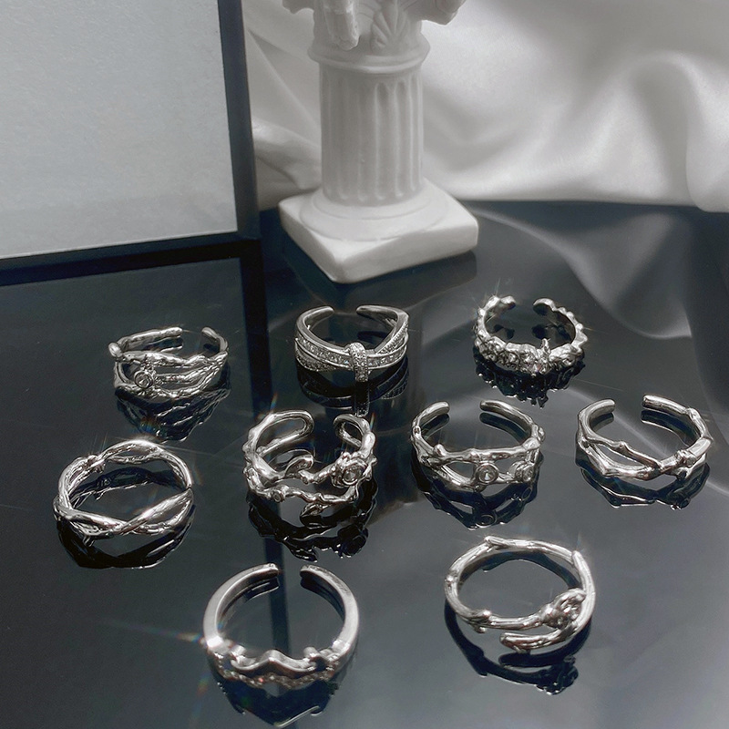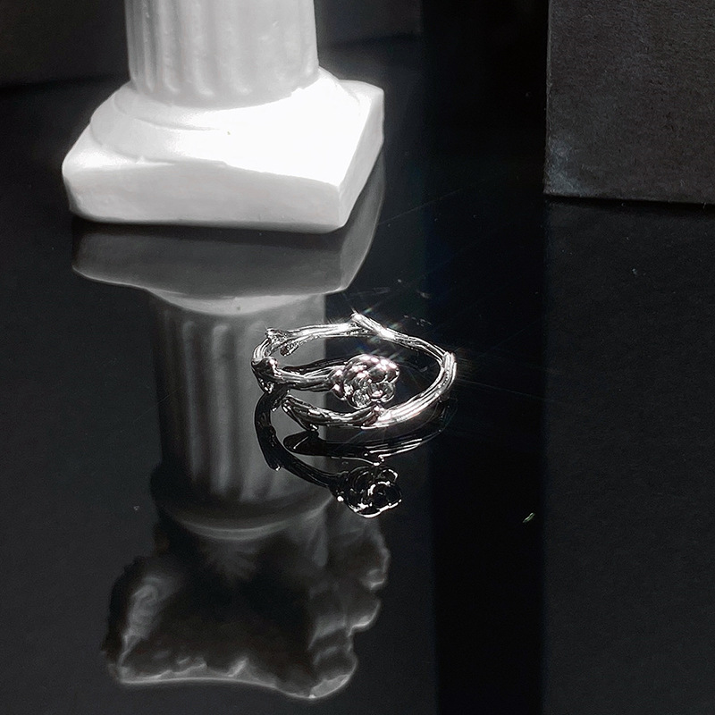 Korean style niche minimalist plain ring bamboo open ring ins style pleated rose design sense fashion all-Match ring