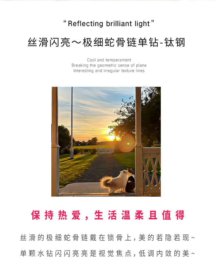 Item No.: Ultra Fine snake bone chain single diamond [silver-gold-rose gold]-titanium steel